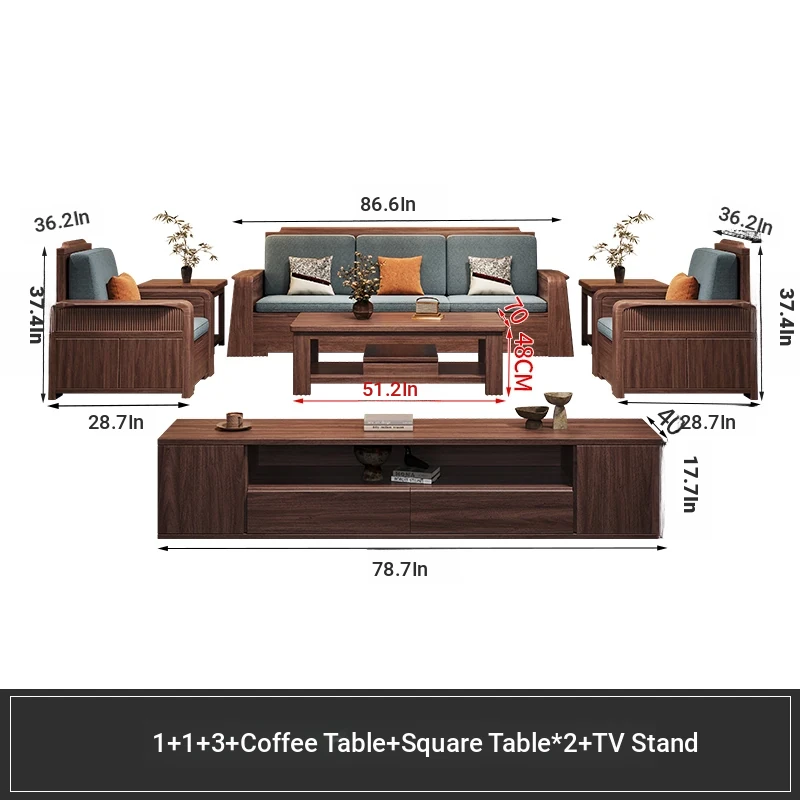 1+1+3 + coffee table + square * 2 + TV cabinet