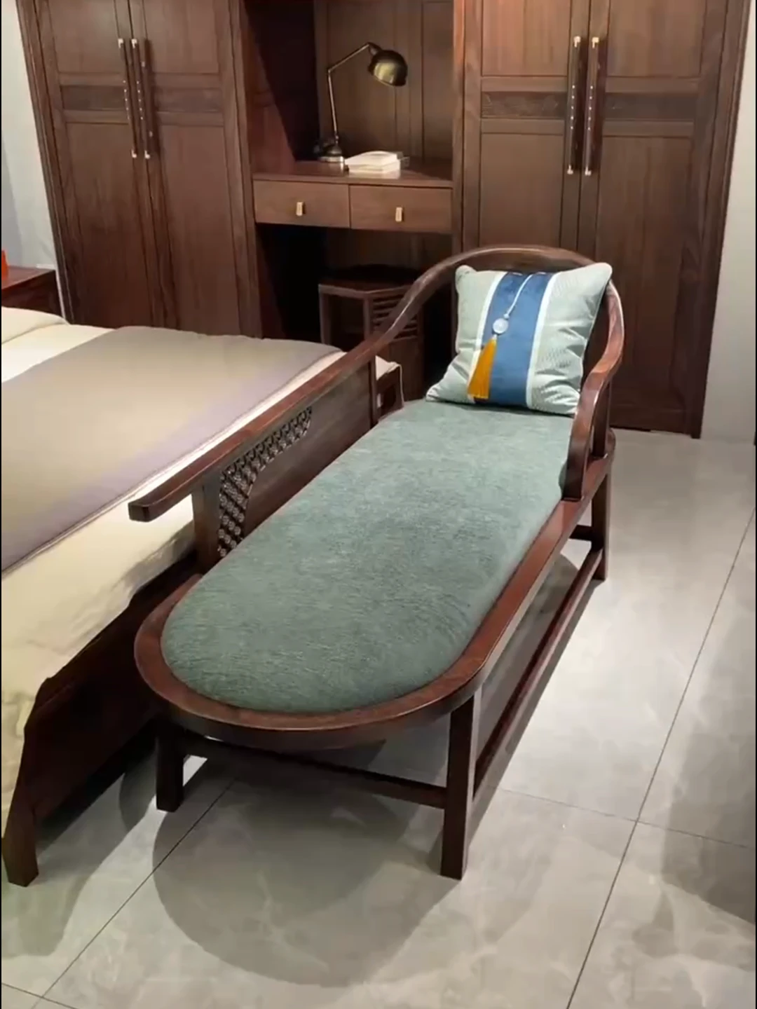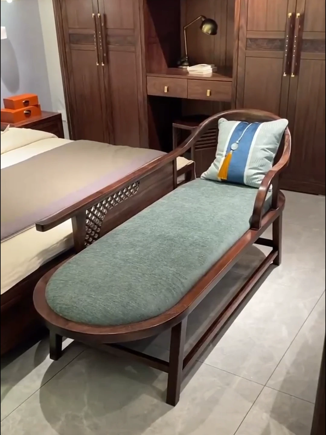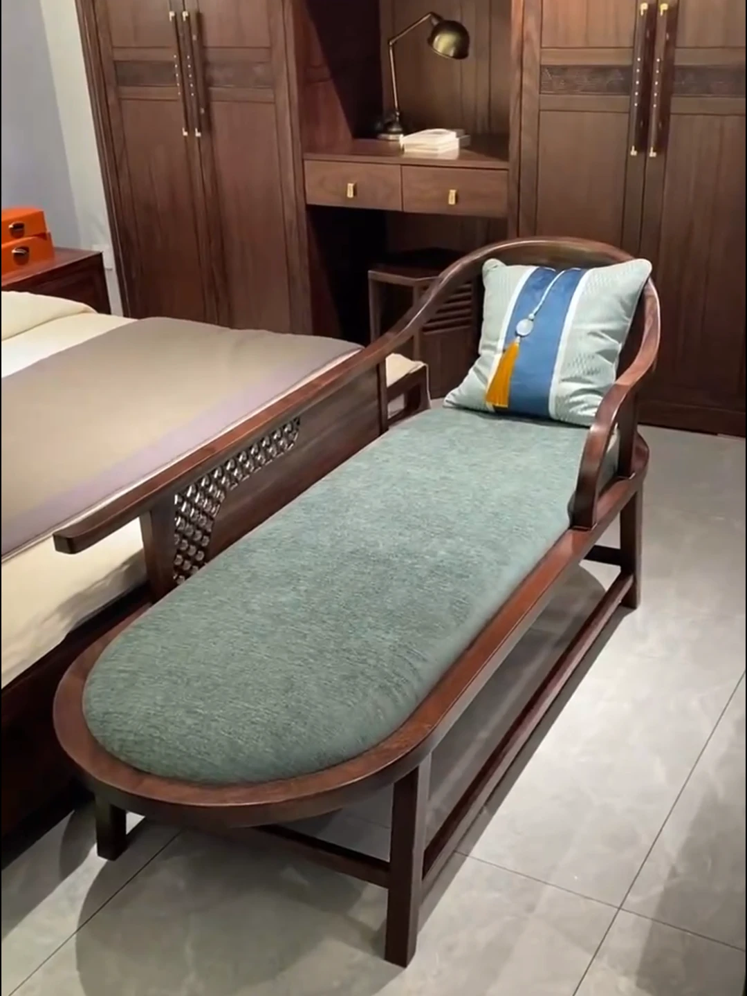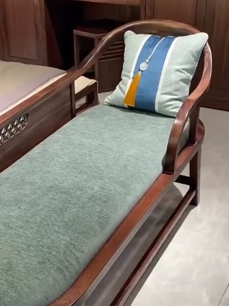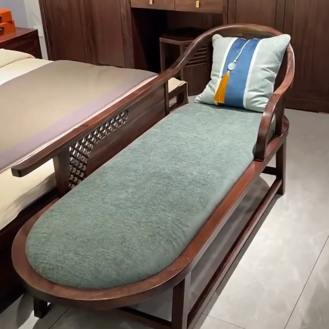 新中式ウルキン木製貴妃椅子 - 高級感溢れる実木製、美しいデザインの寝椅子。寝室にぴったりの禅の雰囲気を演出し、リラックスしたひとときを提供します。