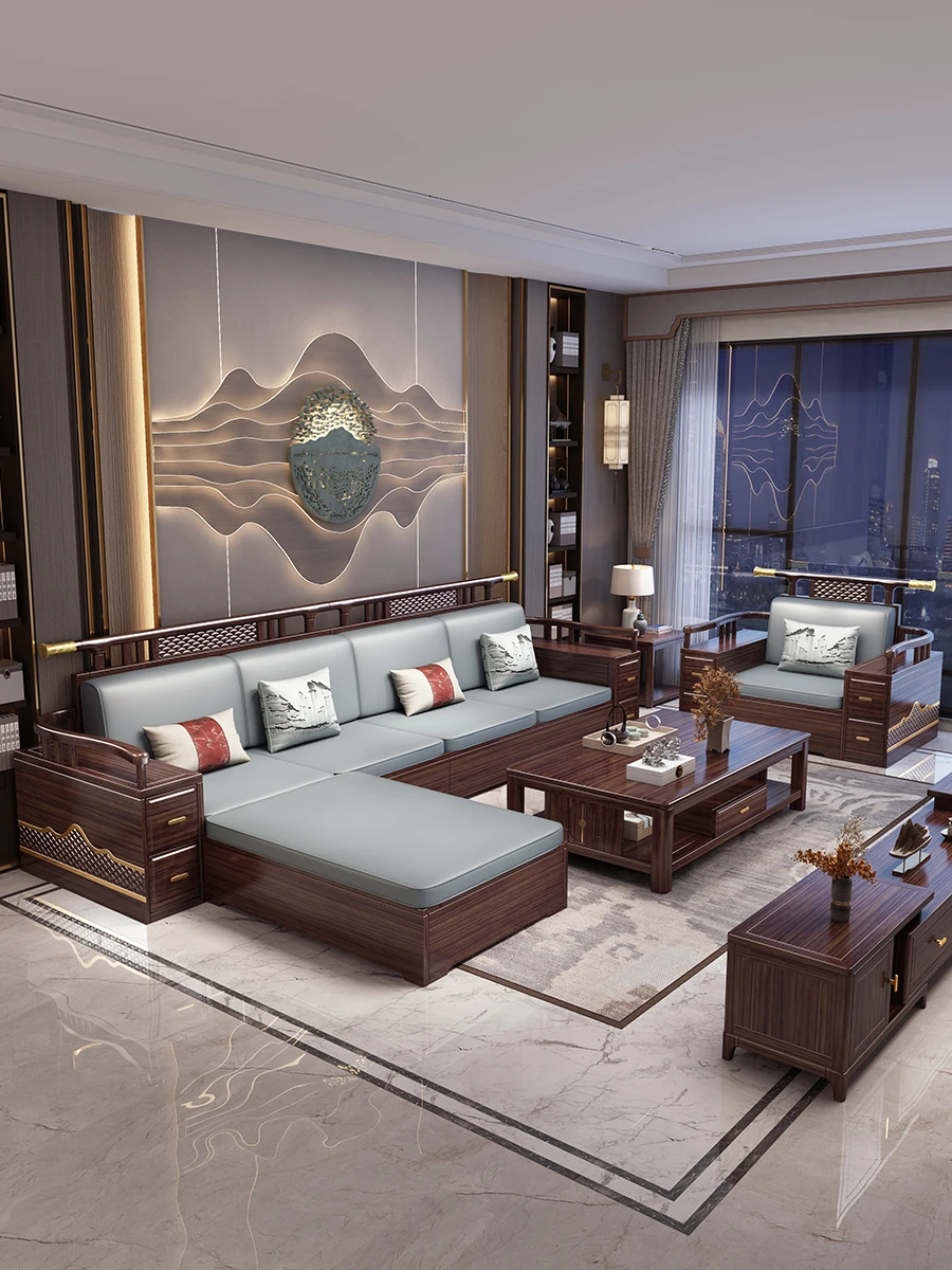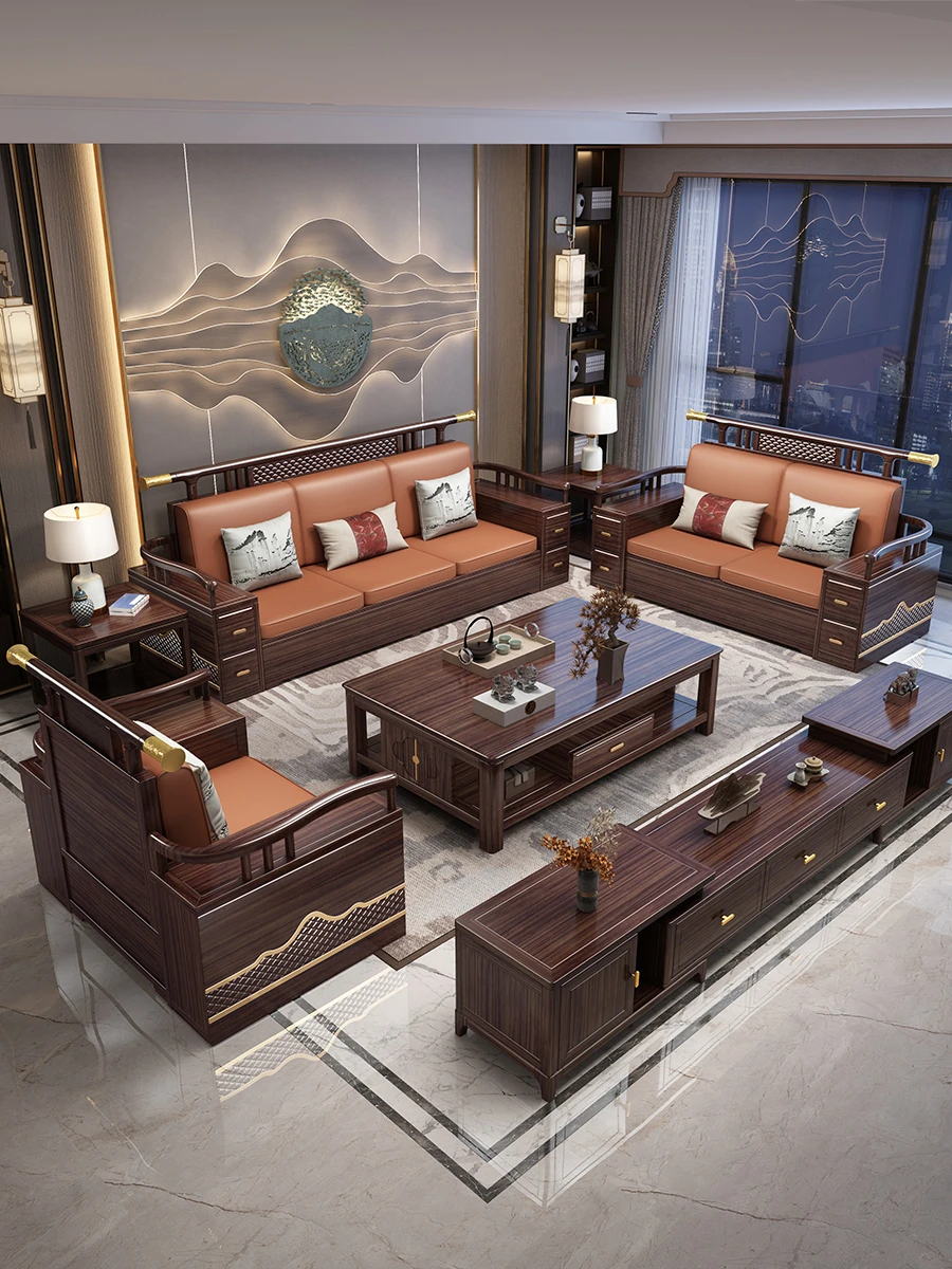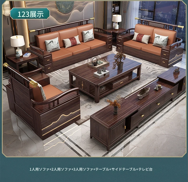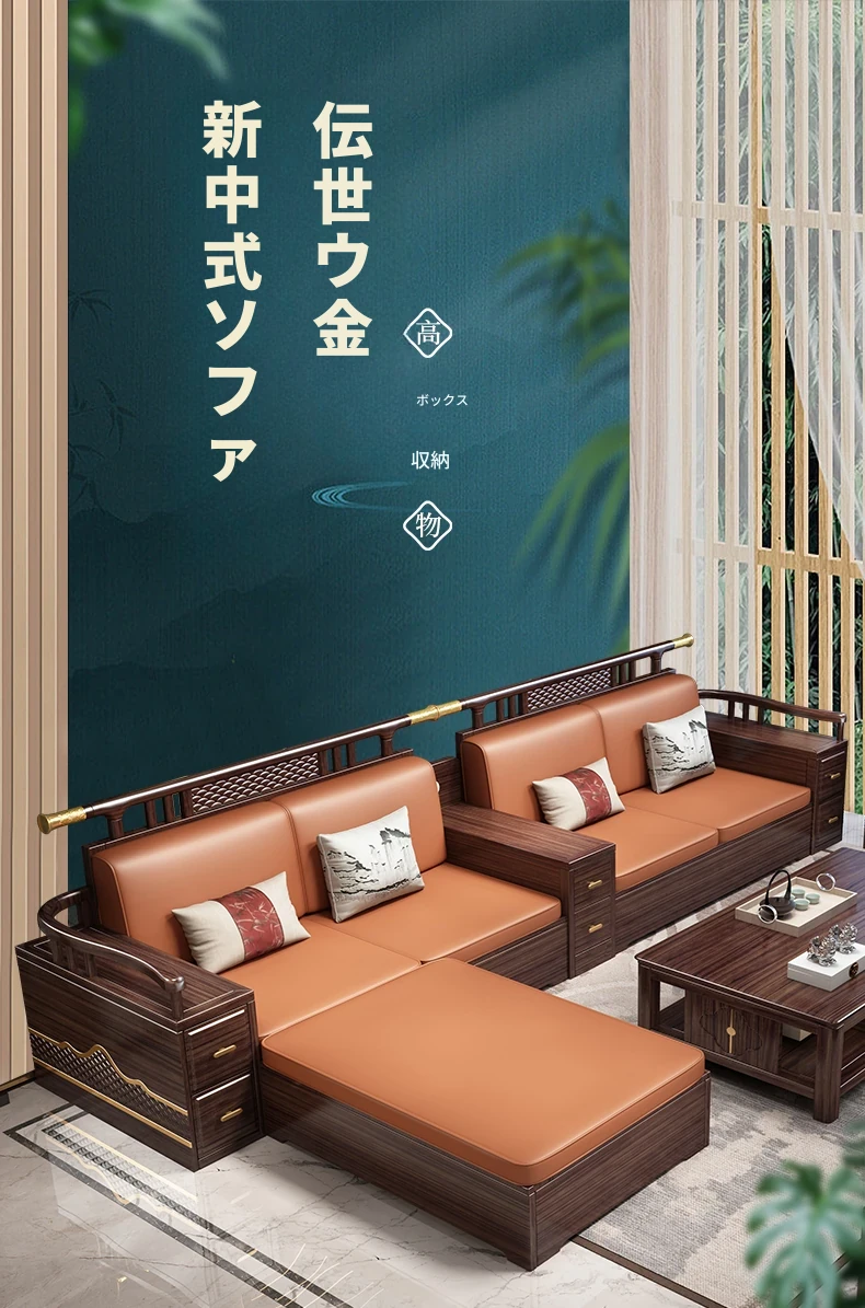 新中式ウッドブラックウッド全実木ソファー角型コンビネーション、軽奢華でシンプルな中国風現代家庭用リビング家具。優雅なデザインで、くつろぎの空間を演出します!