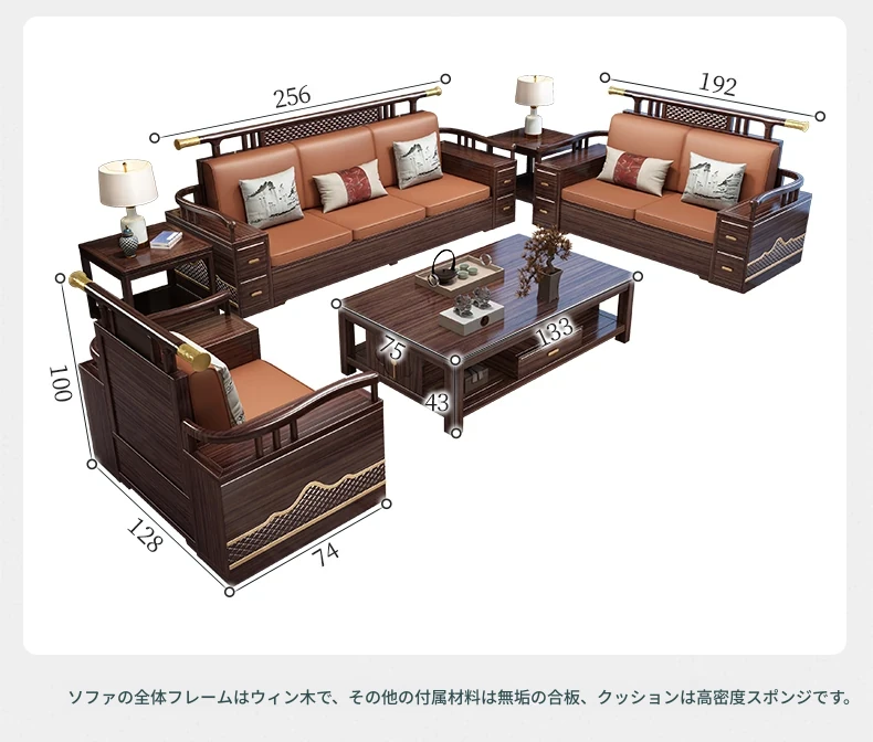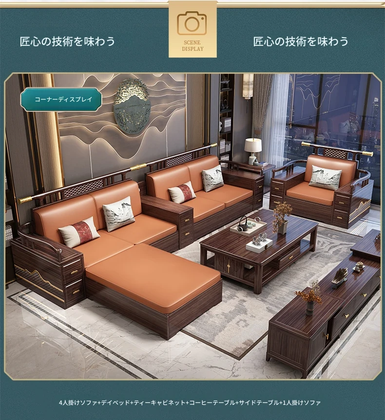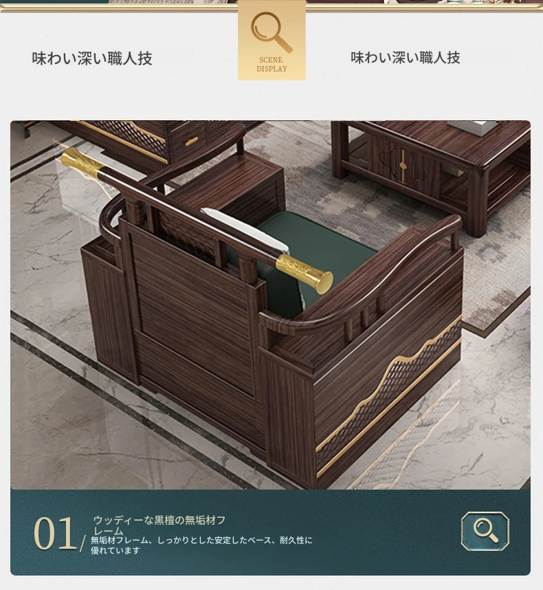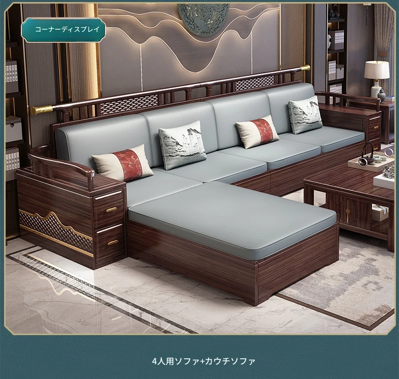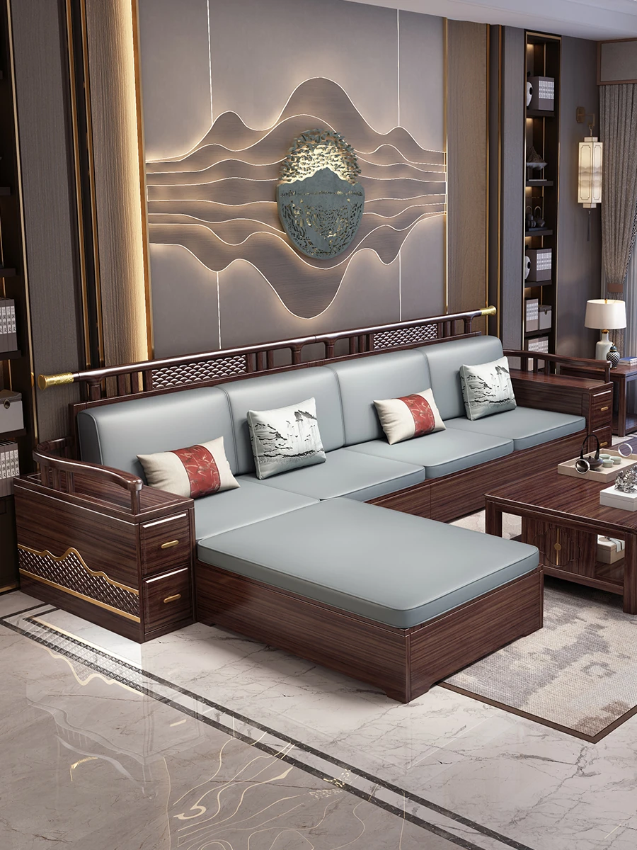 新中式ウッドブラックウッド全実木ソファー角型コンビネーション、軽奢華でシンプルな中国風現代家庭用リビング家具。優雅なデザインで、くつろぎの空間を演出します!