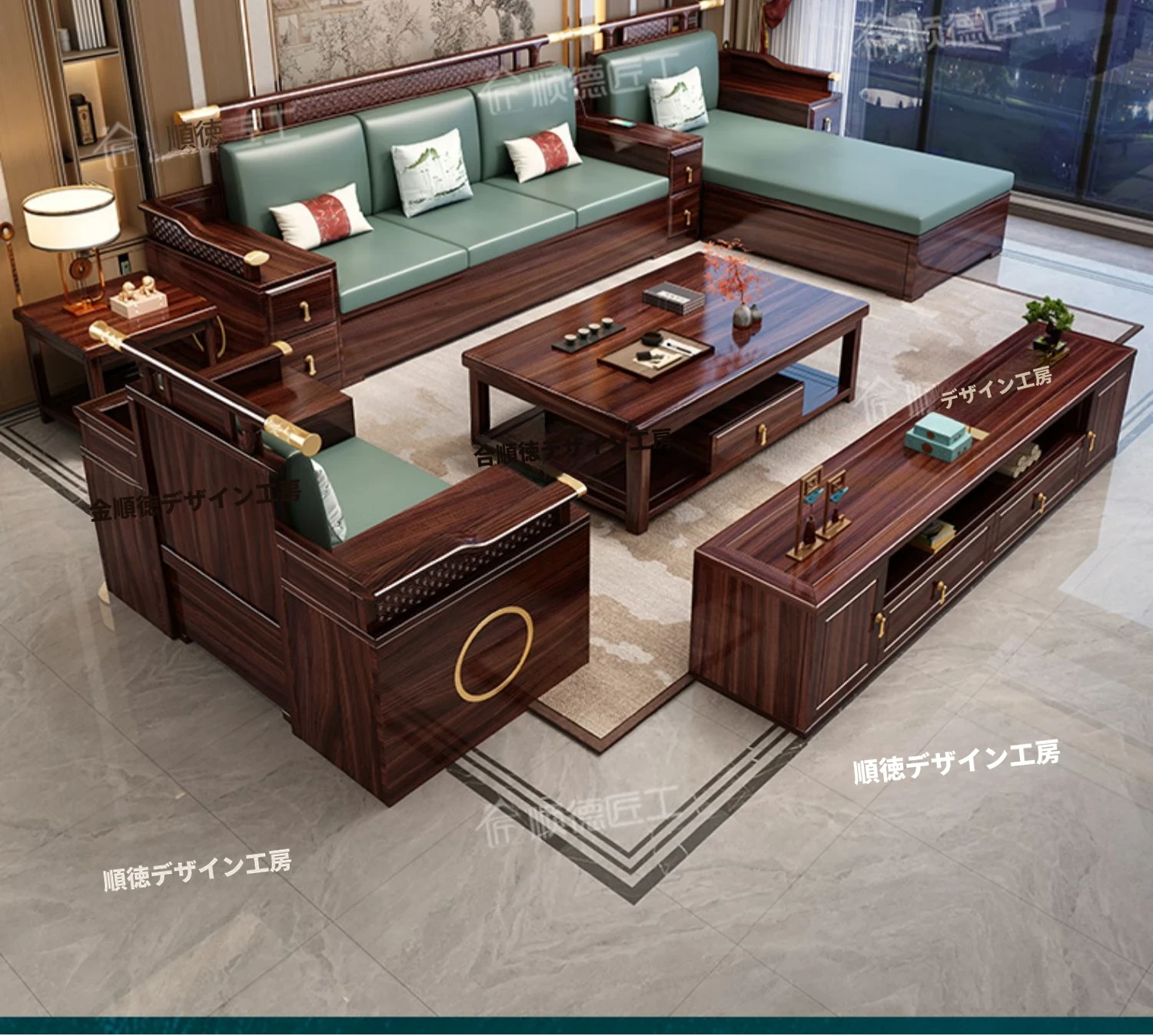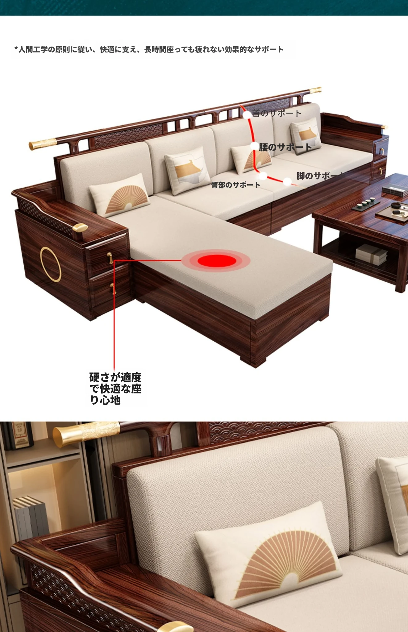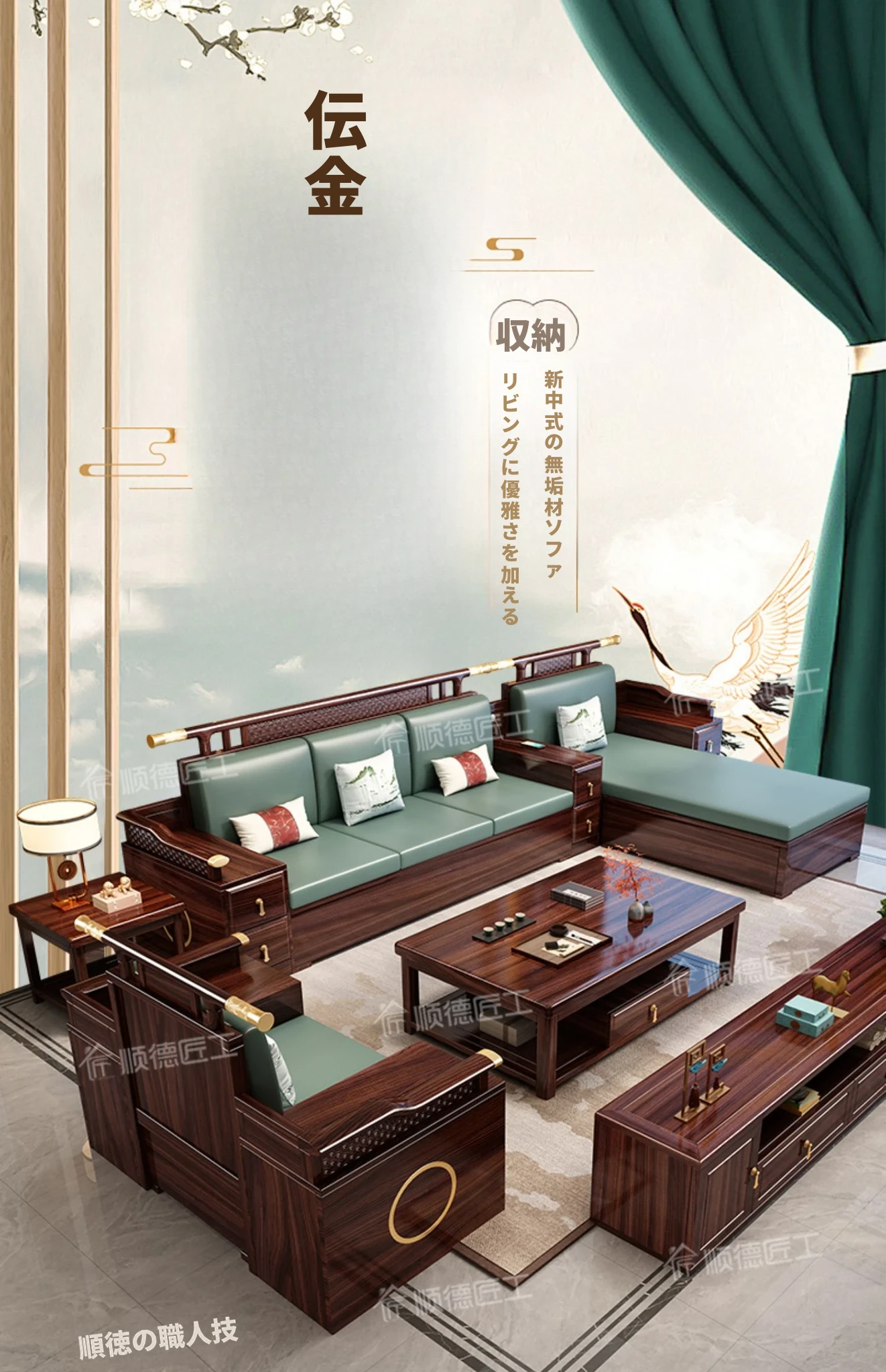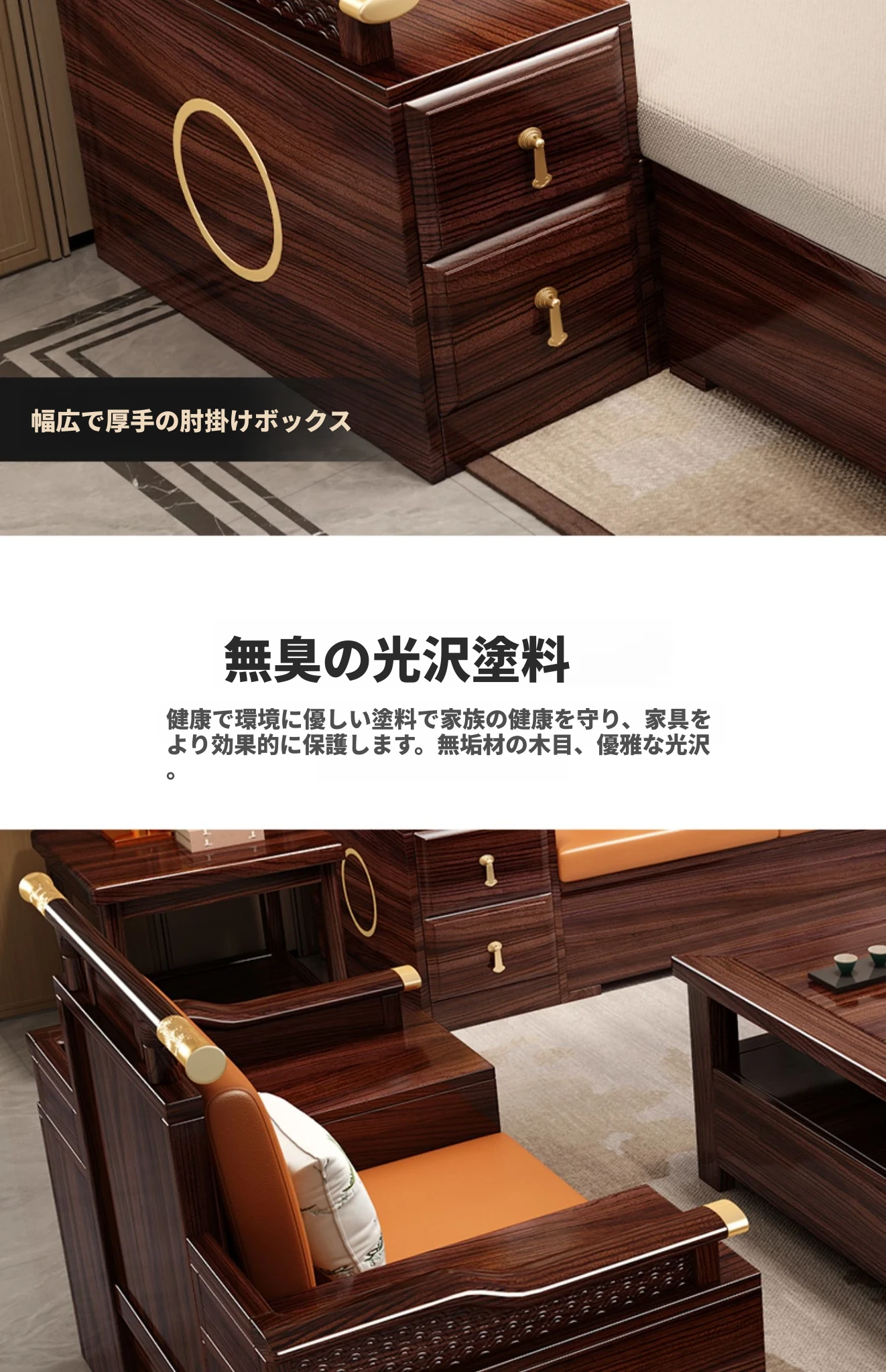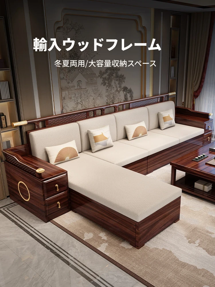 新中式ウッドウッドソファセット|軽やかな贅沢感のある冬夏兼用コーナー&フェイスタイプ|禅の心を感じるリビング収納家具