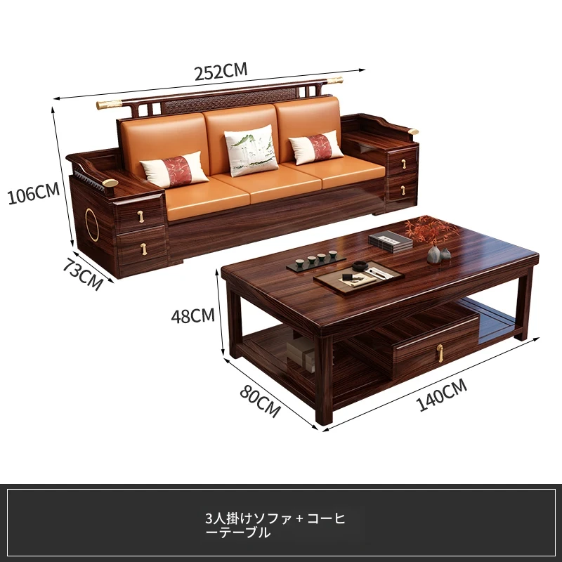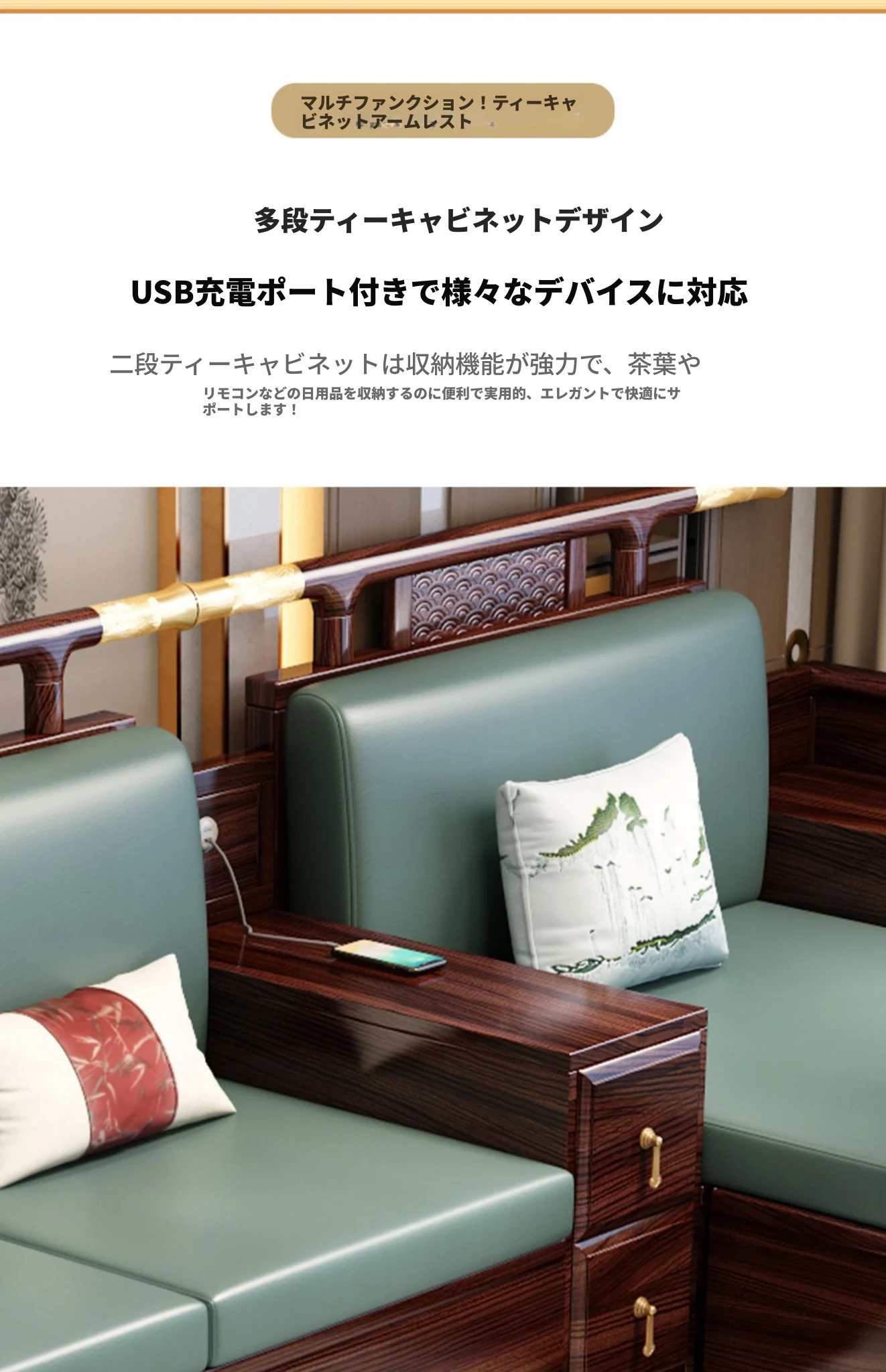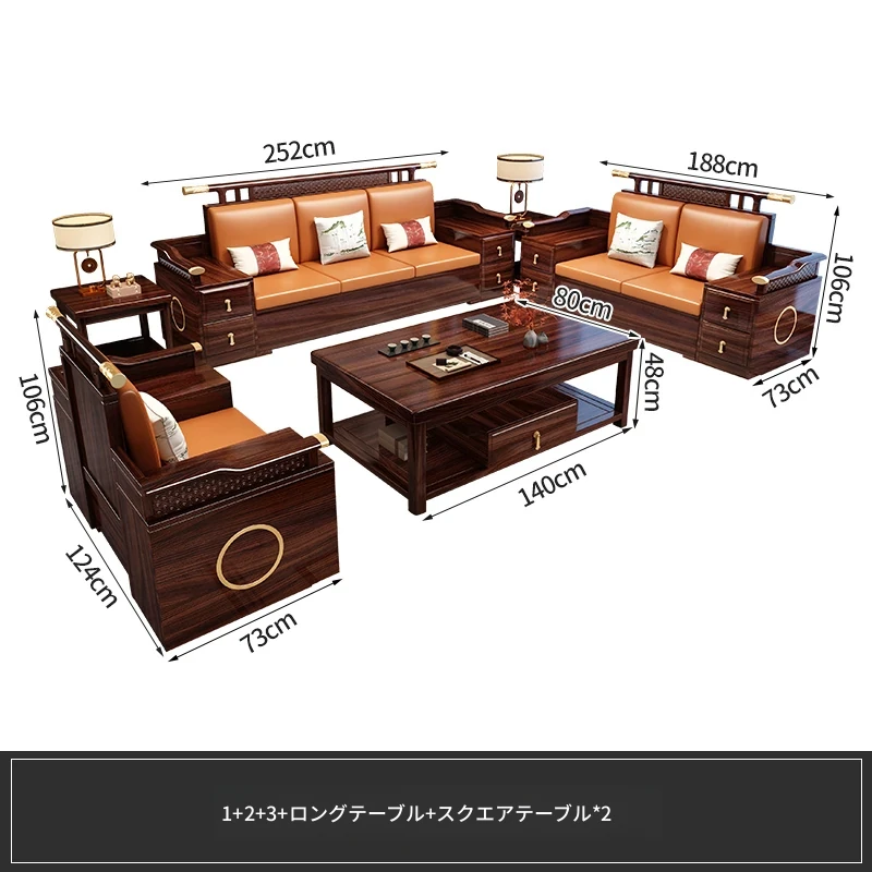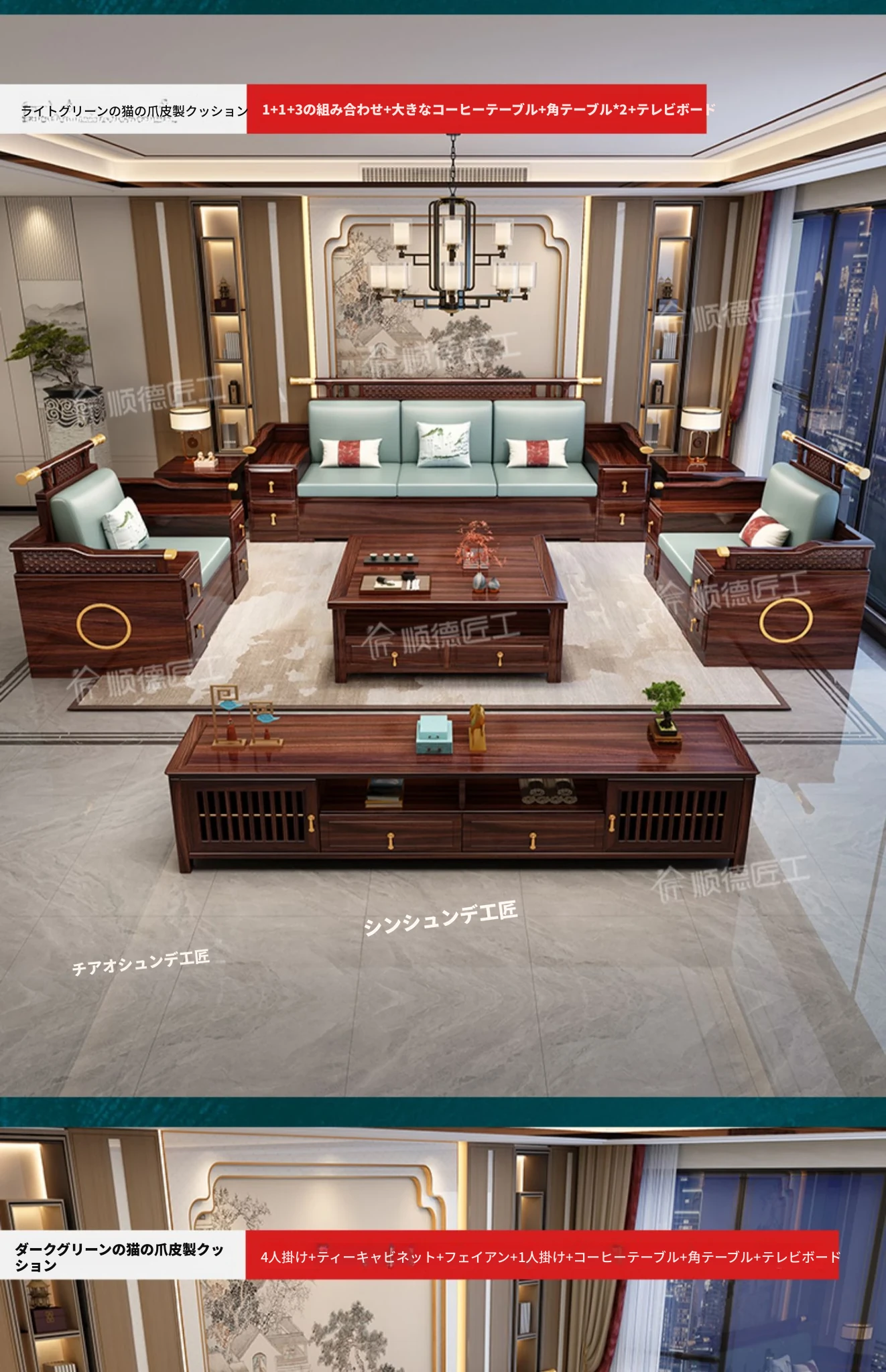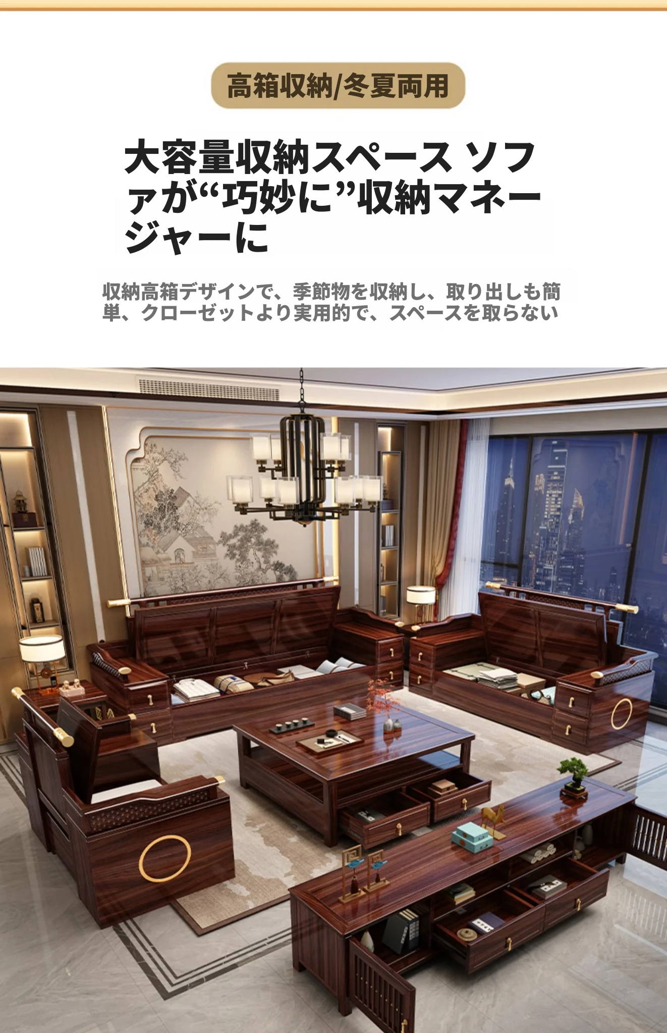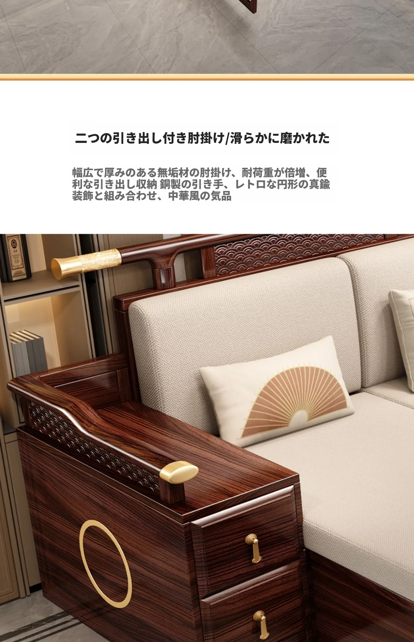 新中式ウッドウッドソファセット|軽やかな贅沢感のある冬夏兼用コーナー&フェイスタイプ|禅の心を感じるリビング収納家具