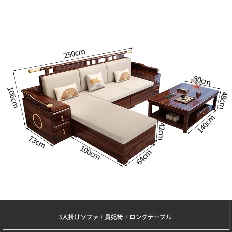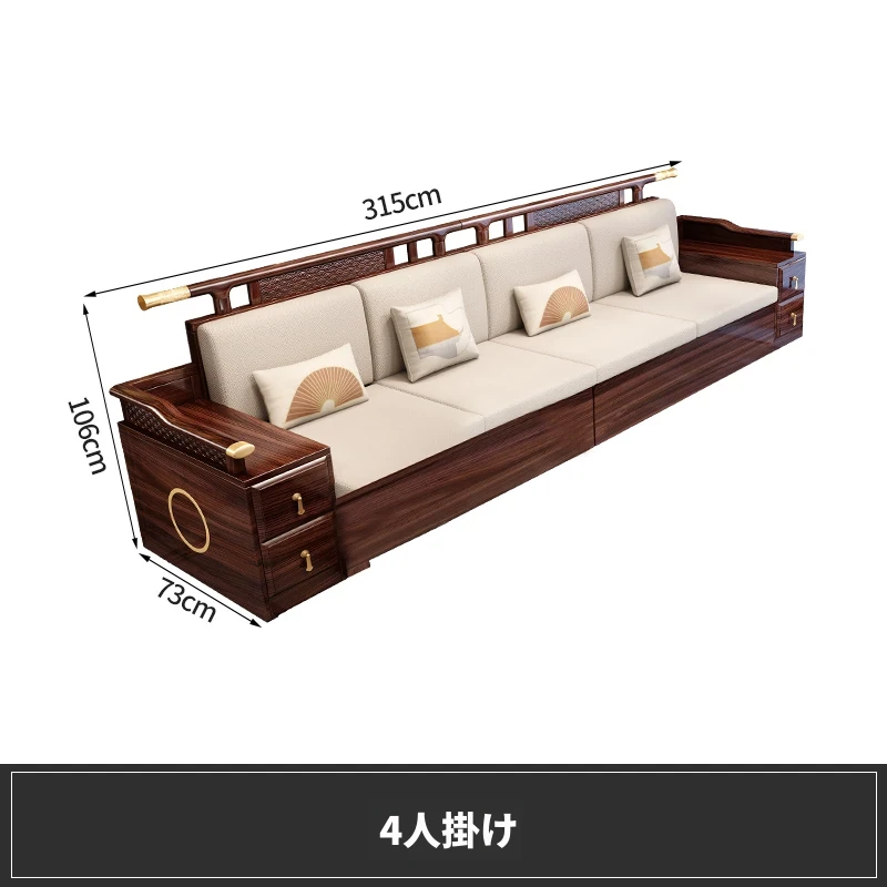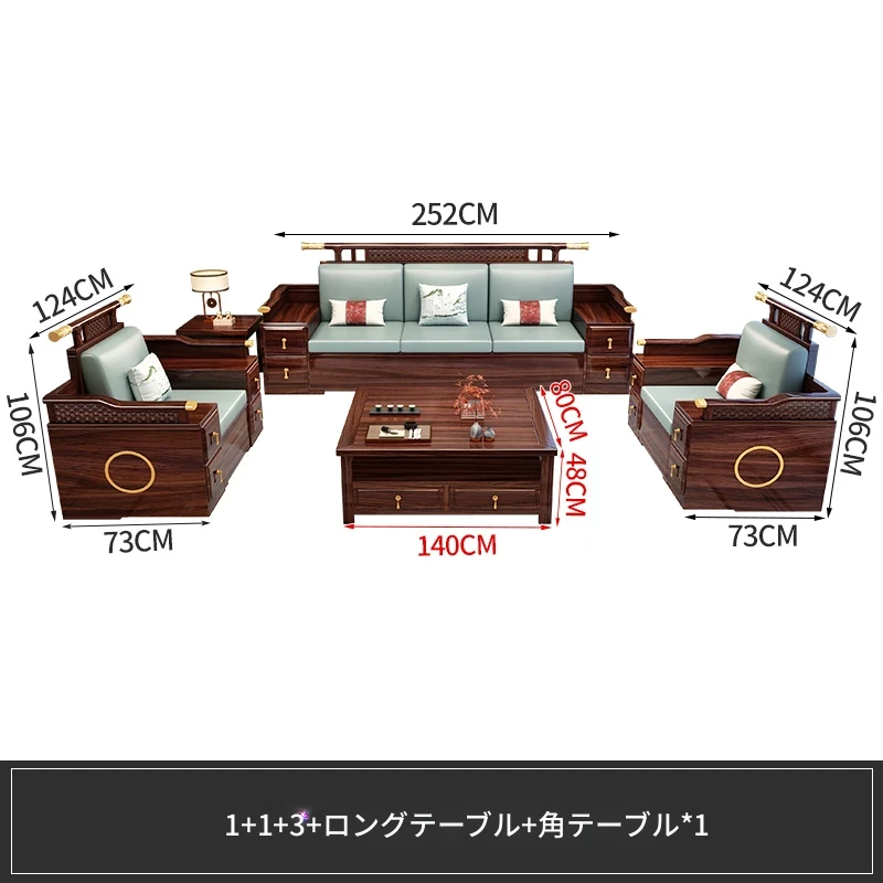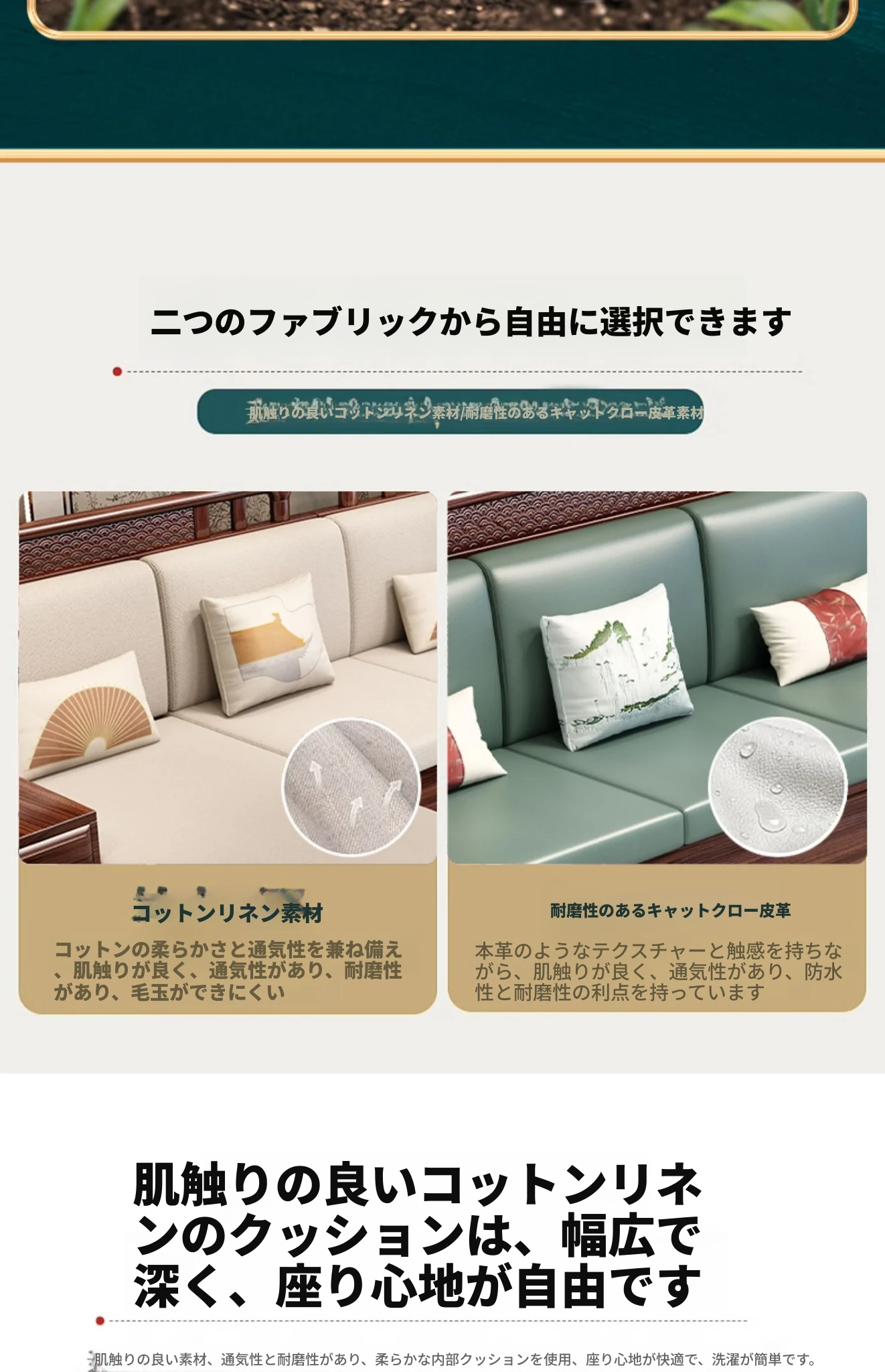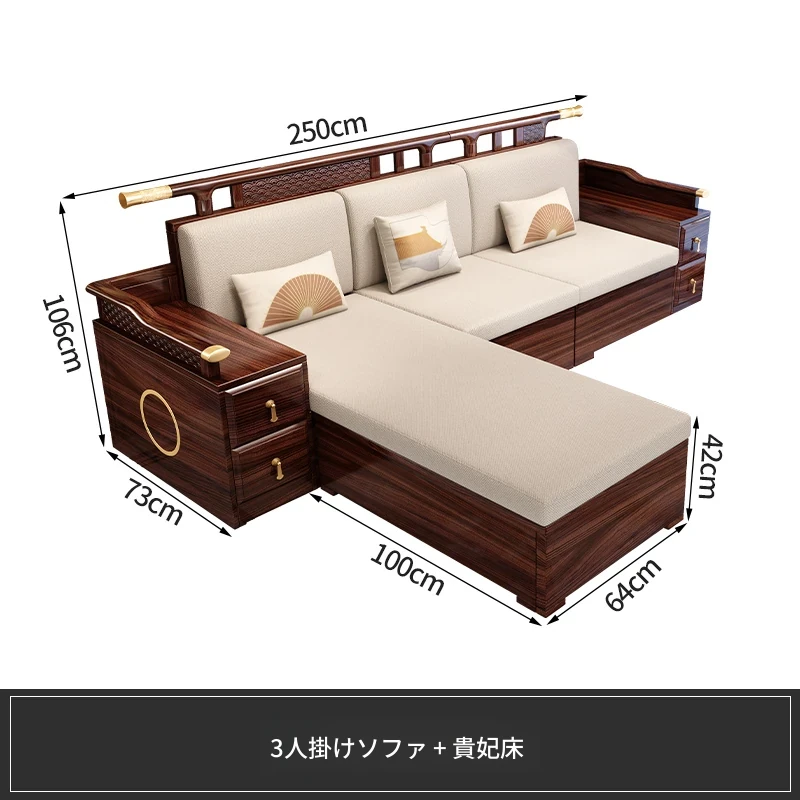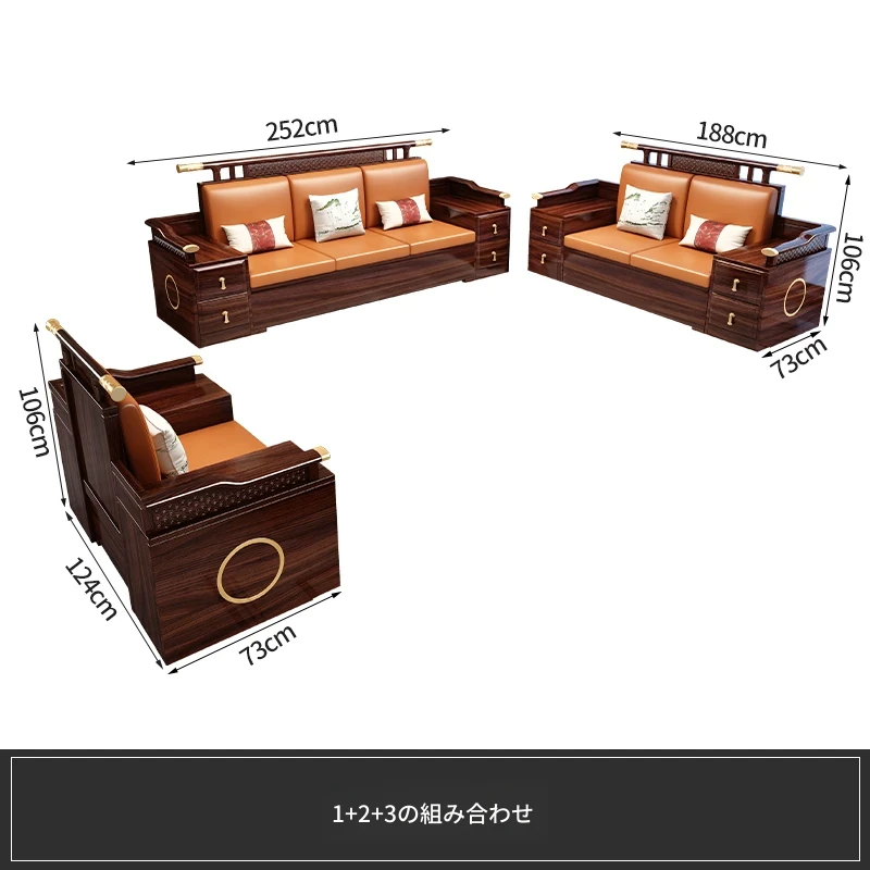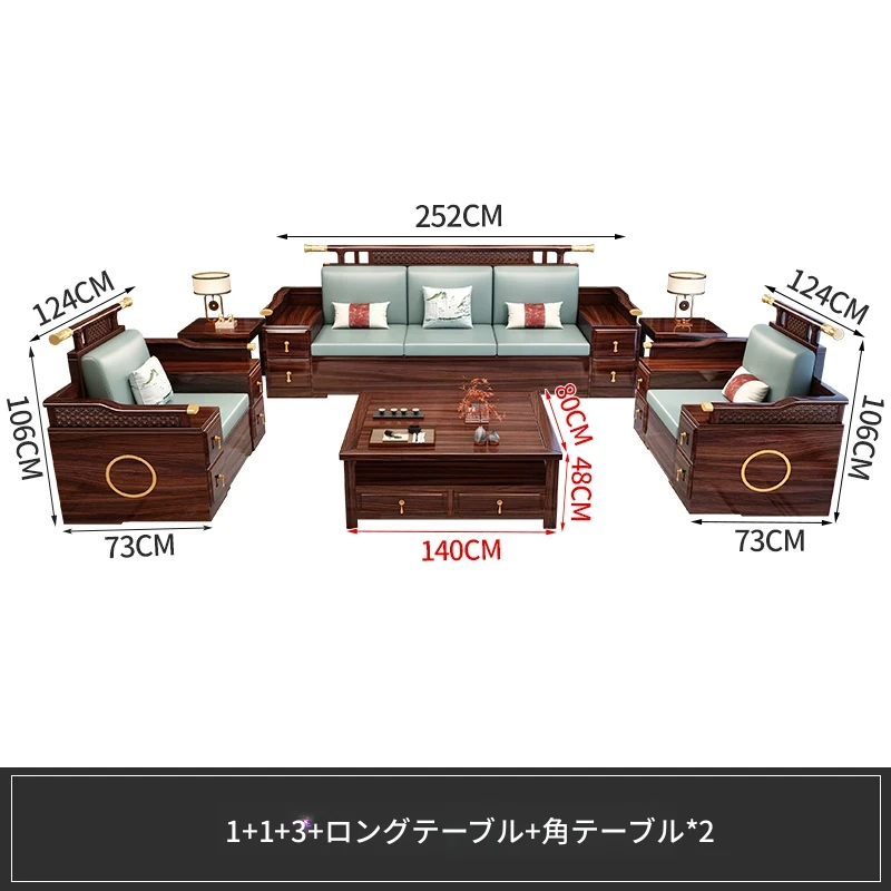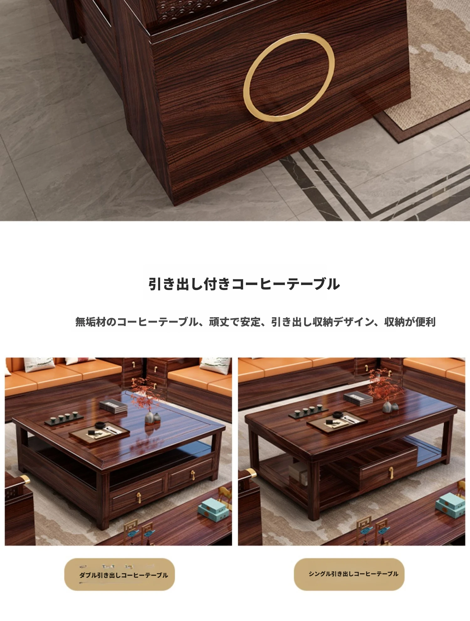新中式ウッドウッドソファセット|軽やかな贅沢感のある冬夏兼用コーナー&フェイスタイプ|禅の心を感じるリビング収納家具