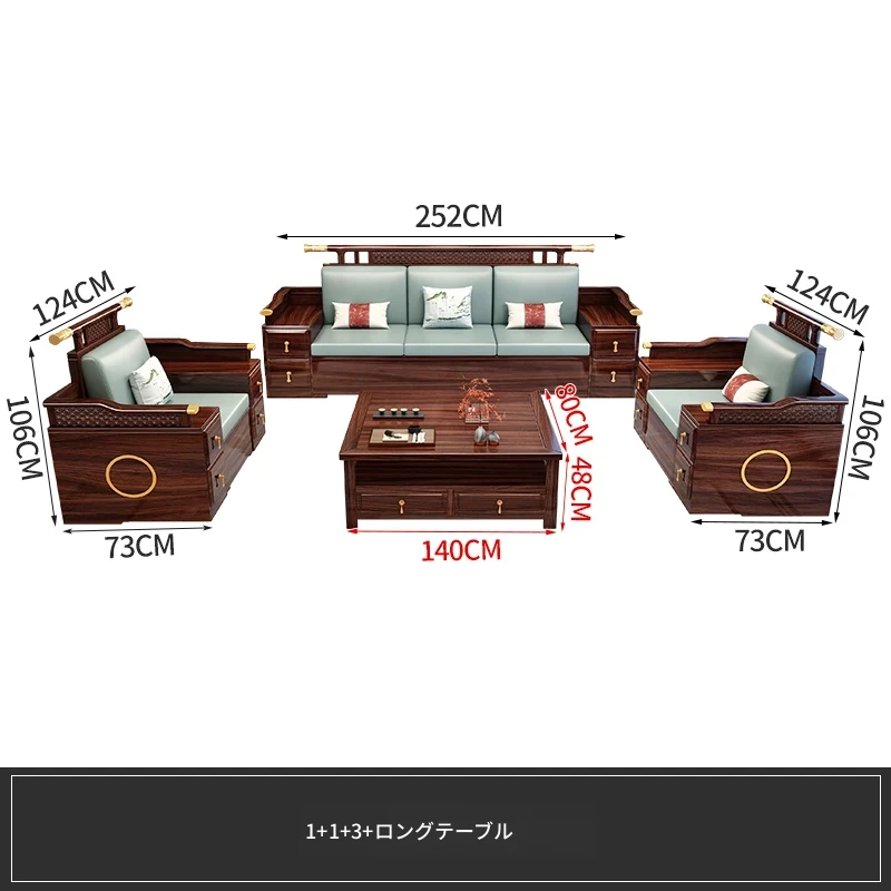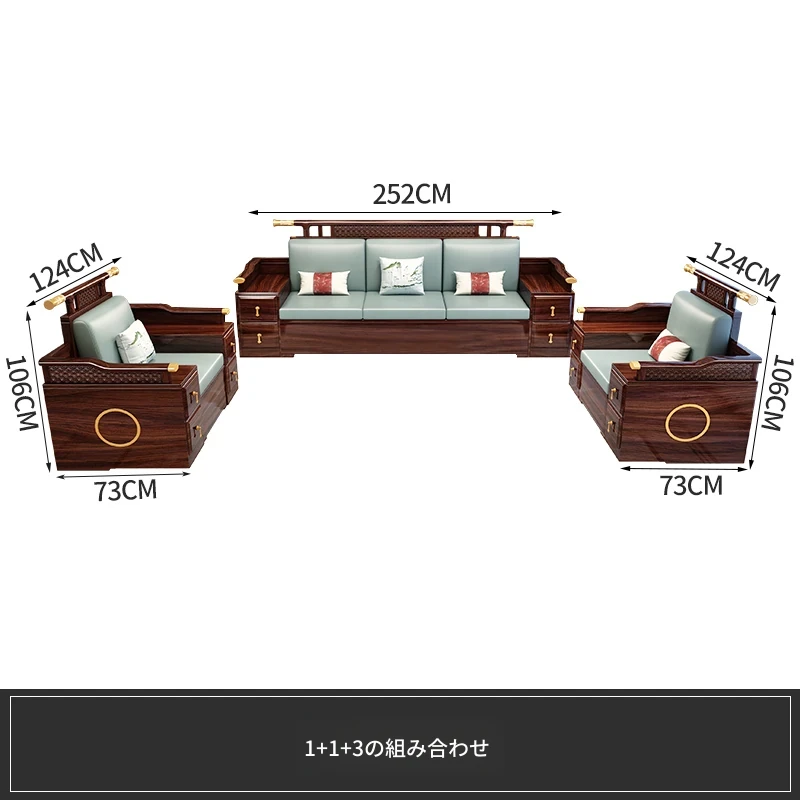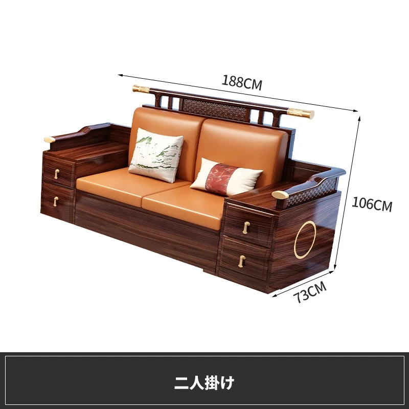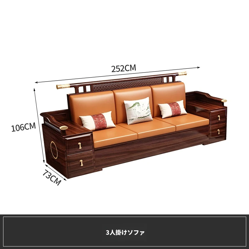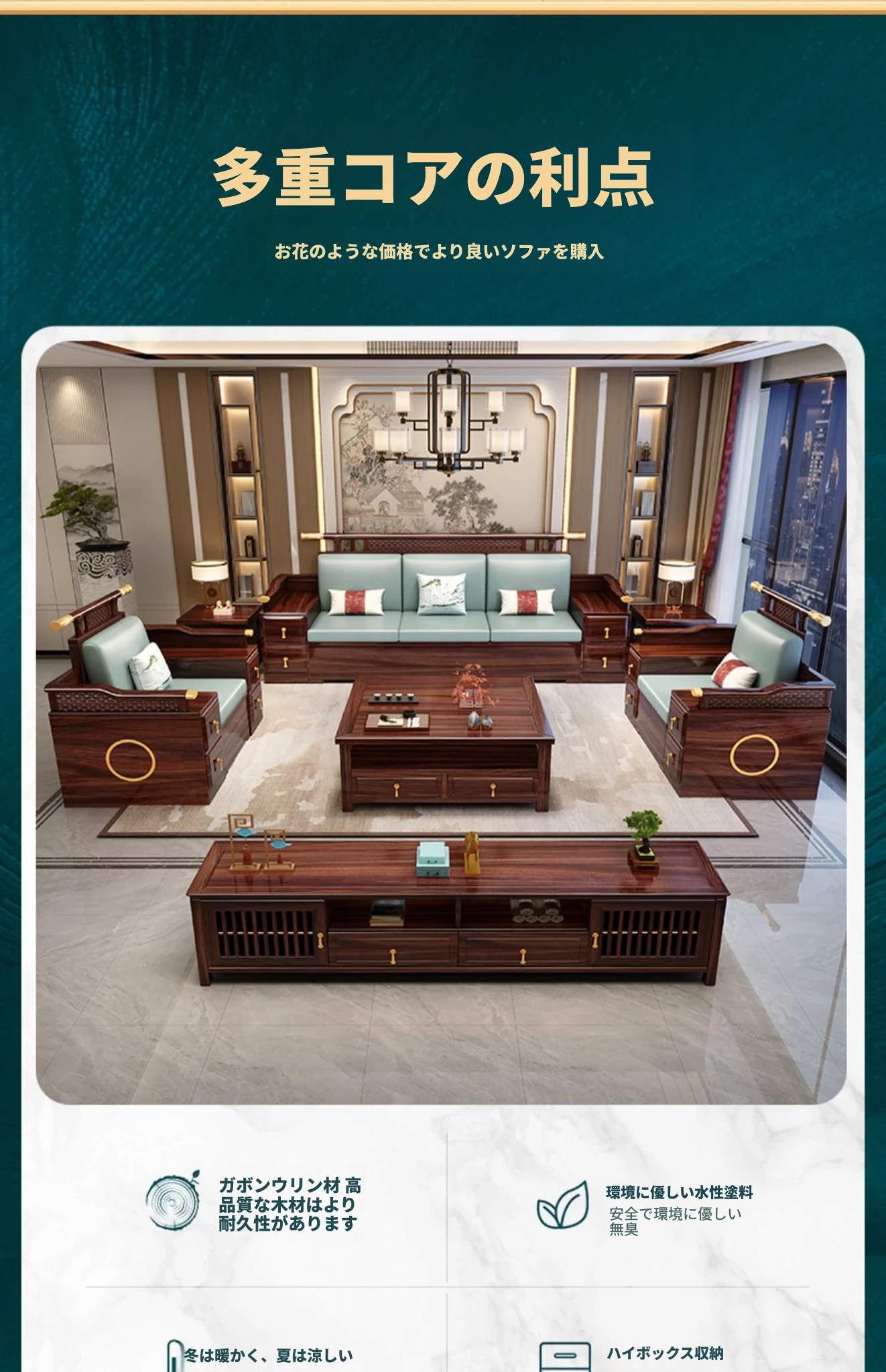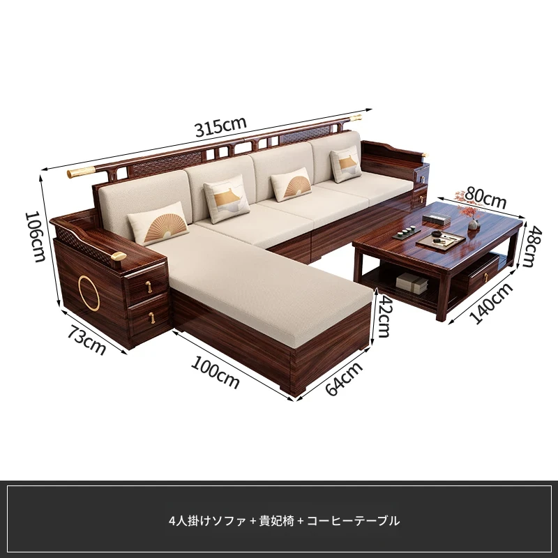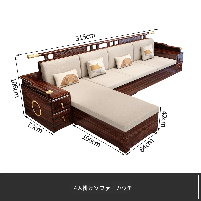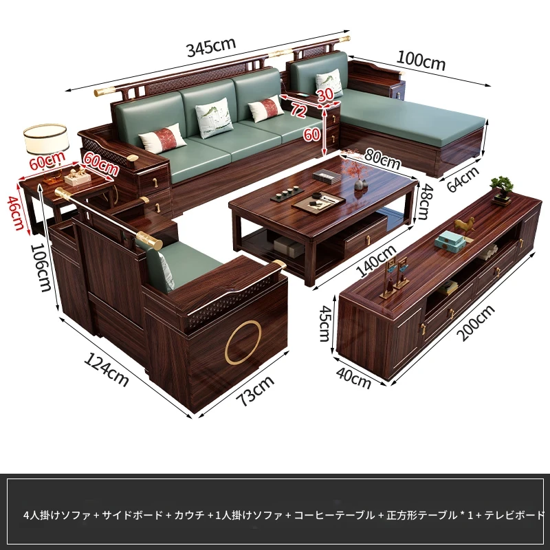 新中式ウッドウッドソファセット|軽やかな贅沢感のある冬夏兼用コーナー&フェイスタイプ|禅の心を感じるリビング収納家具