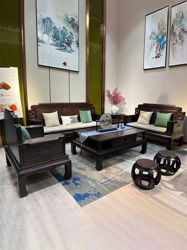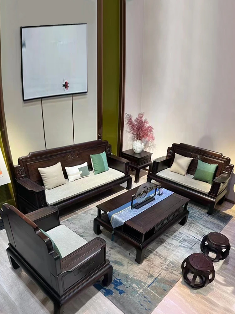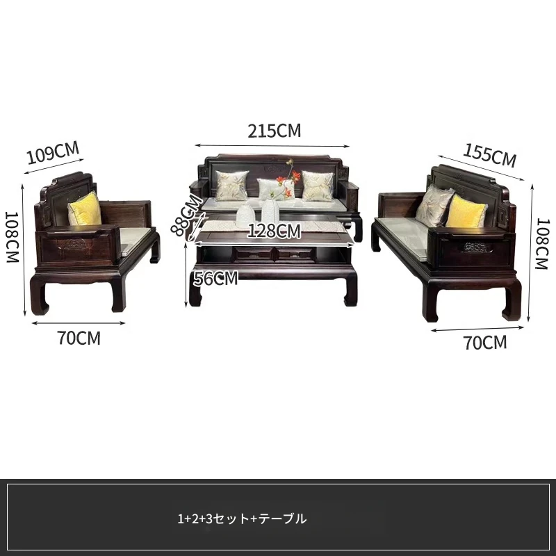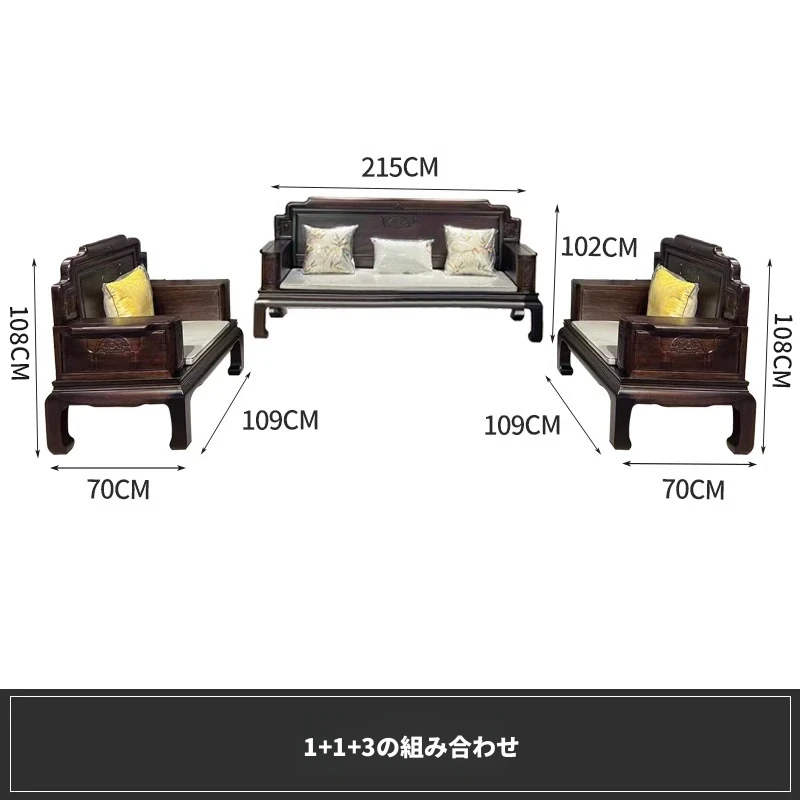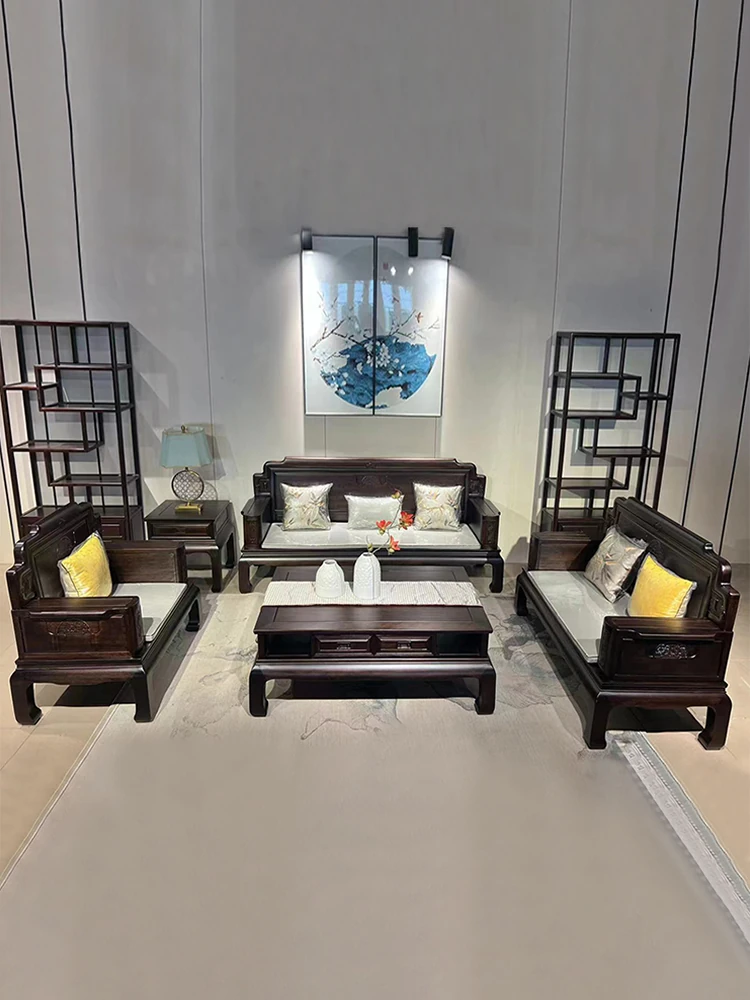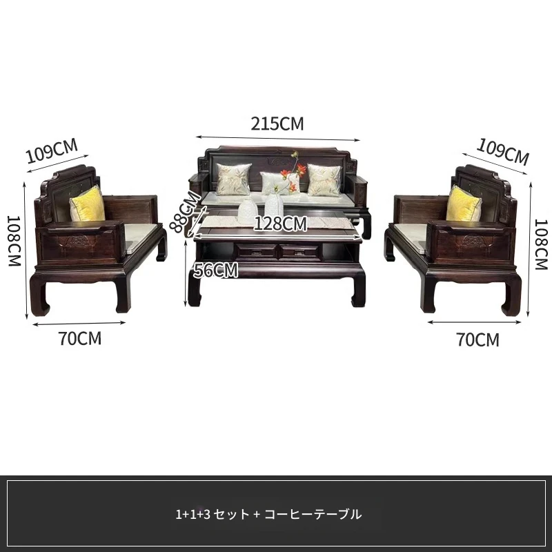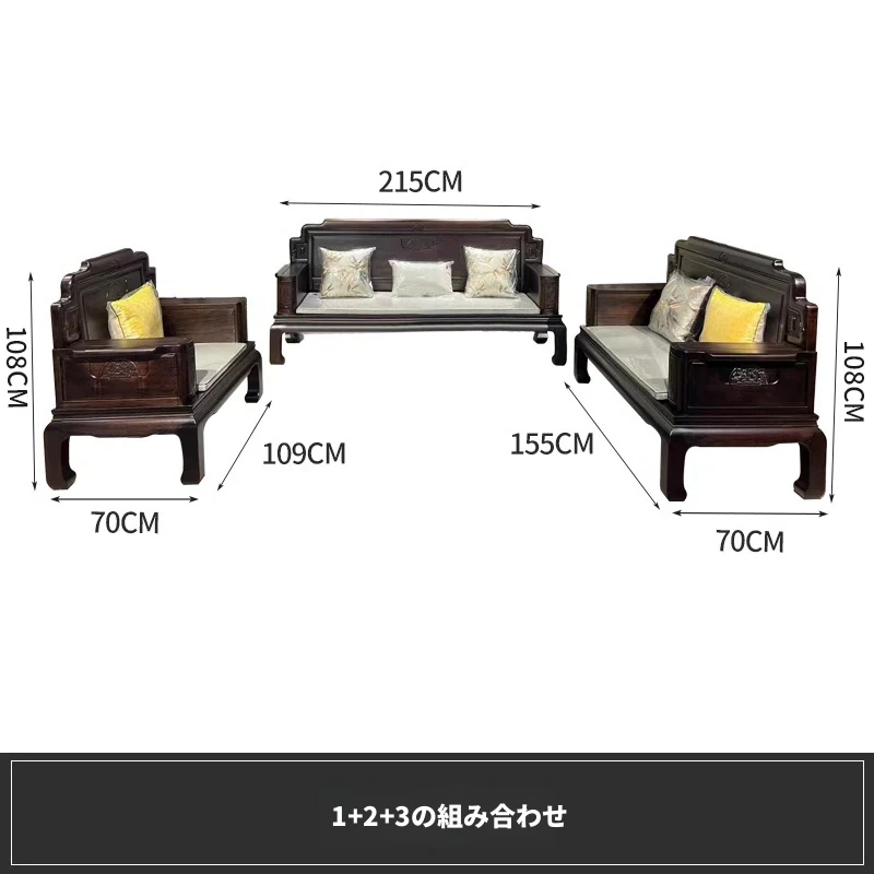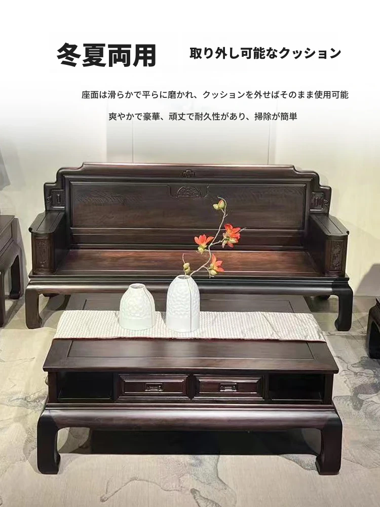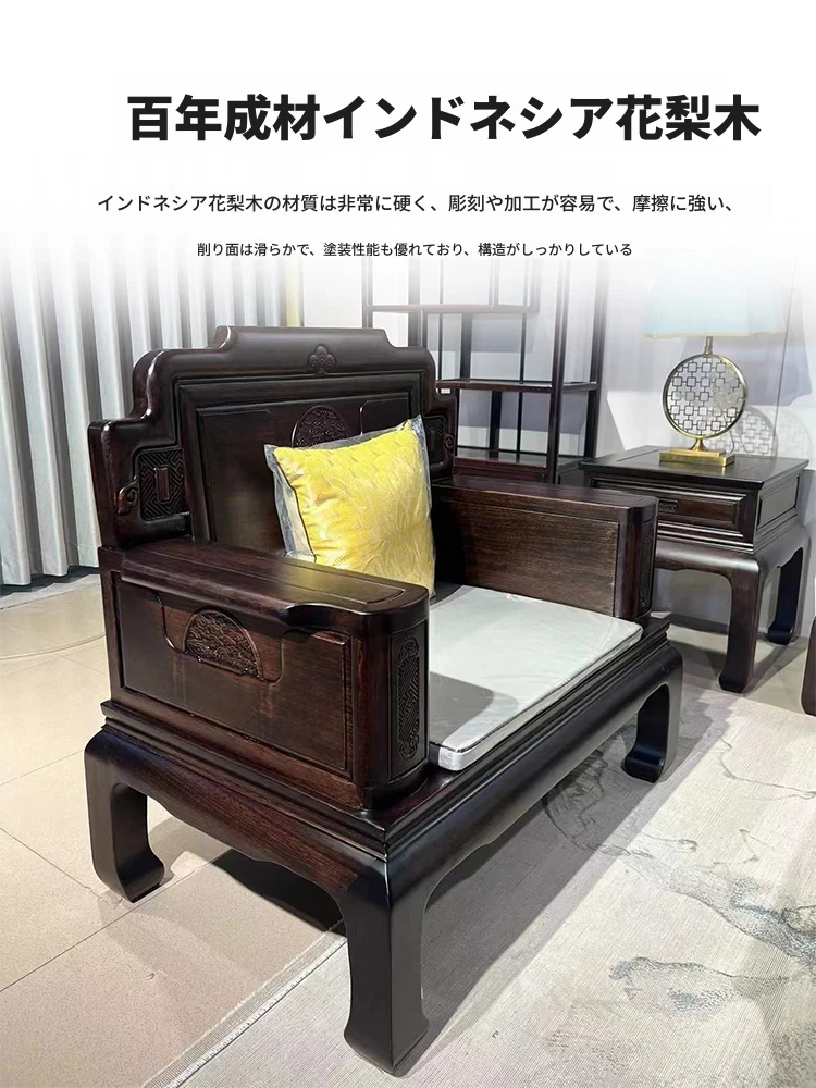新中式花梨木製ソファセット123 - 冬夏両用、古典的な彫刻が施された高級紅木リビング家具で、優雅な空間を演出します!