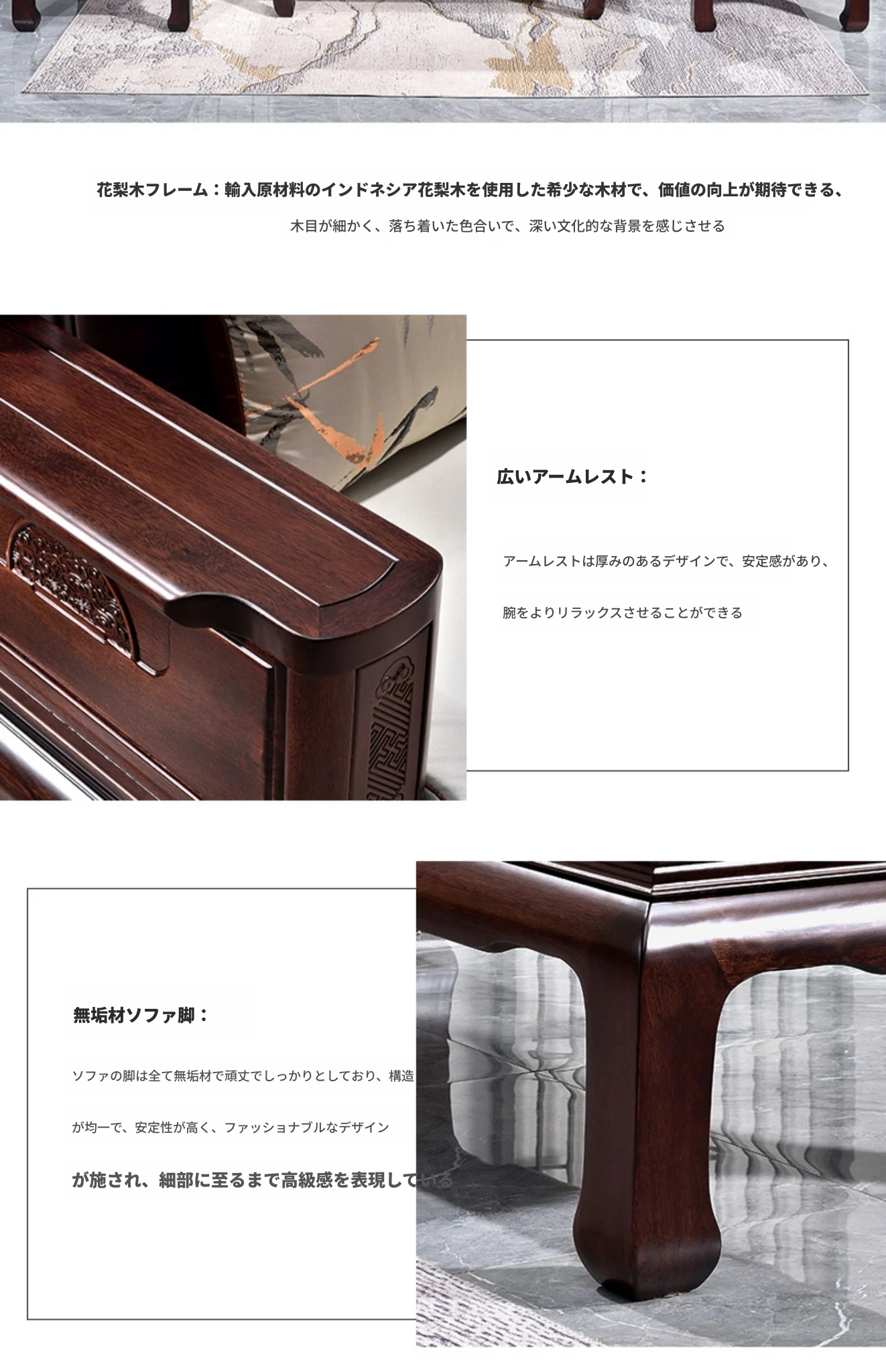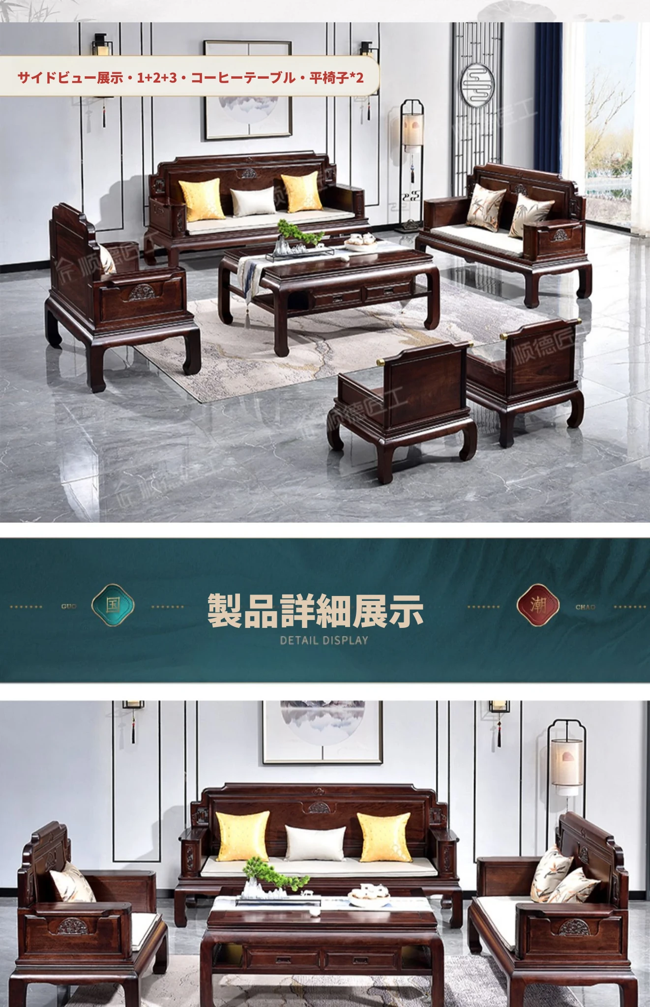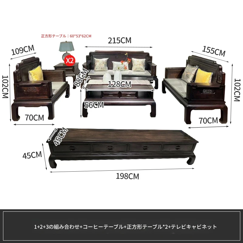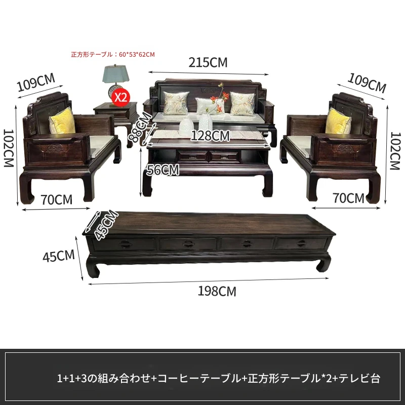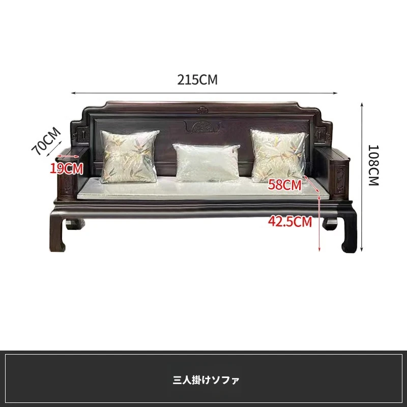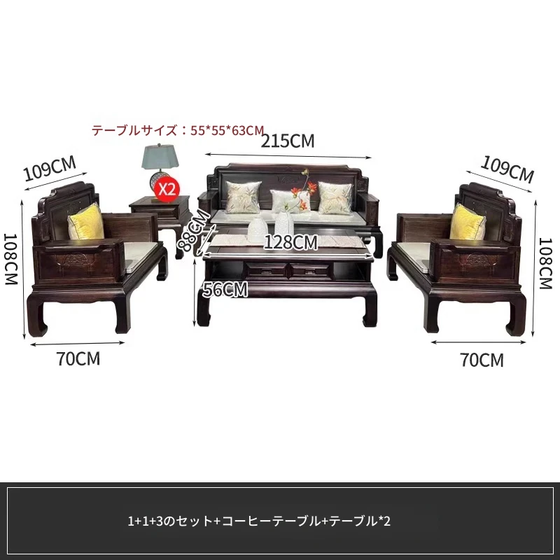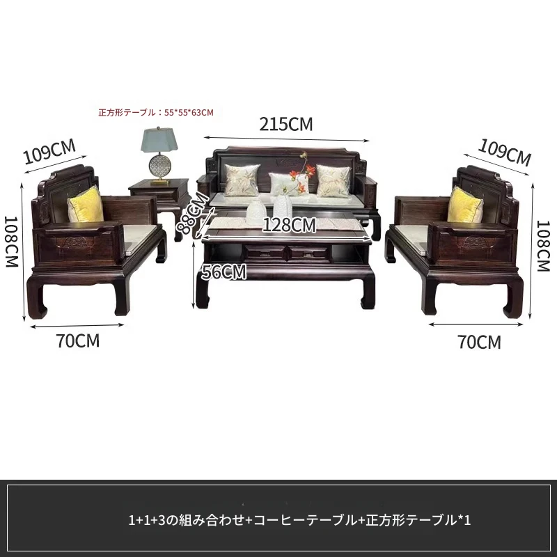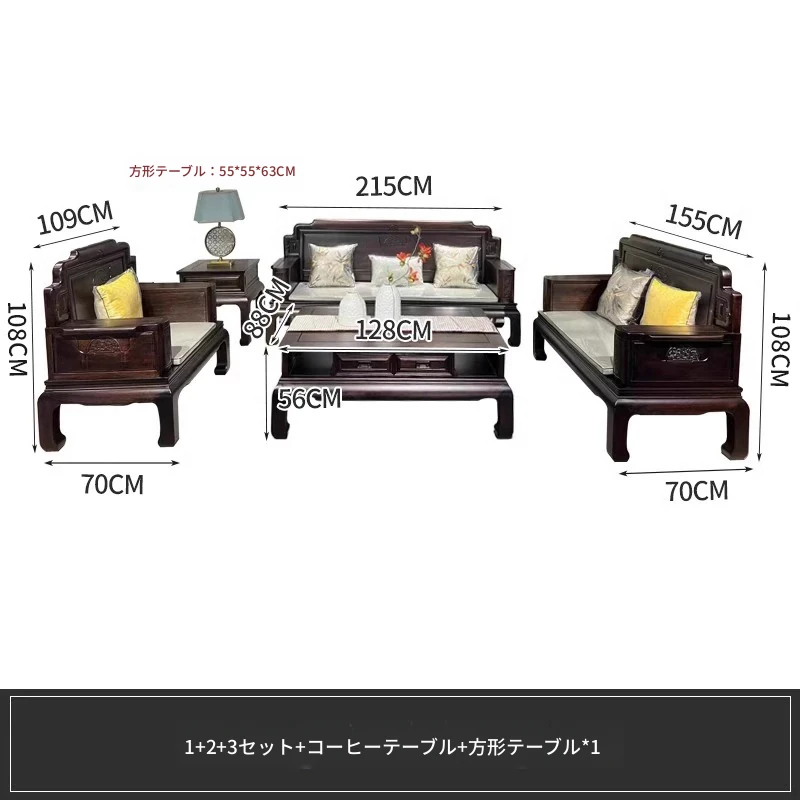 新中式花梨木製ソファセット123 - 冬夏両用、古典的な彫刻が施された高級紅木リビング家具で、優雅な空間を演出します!