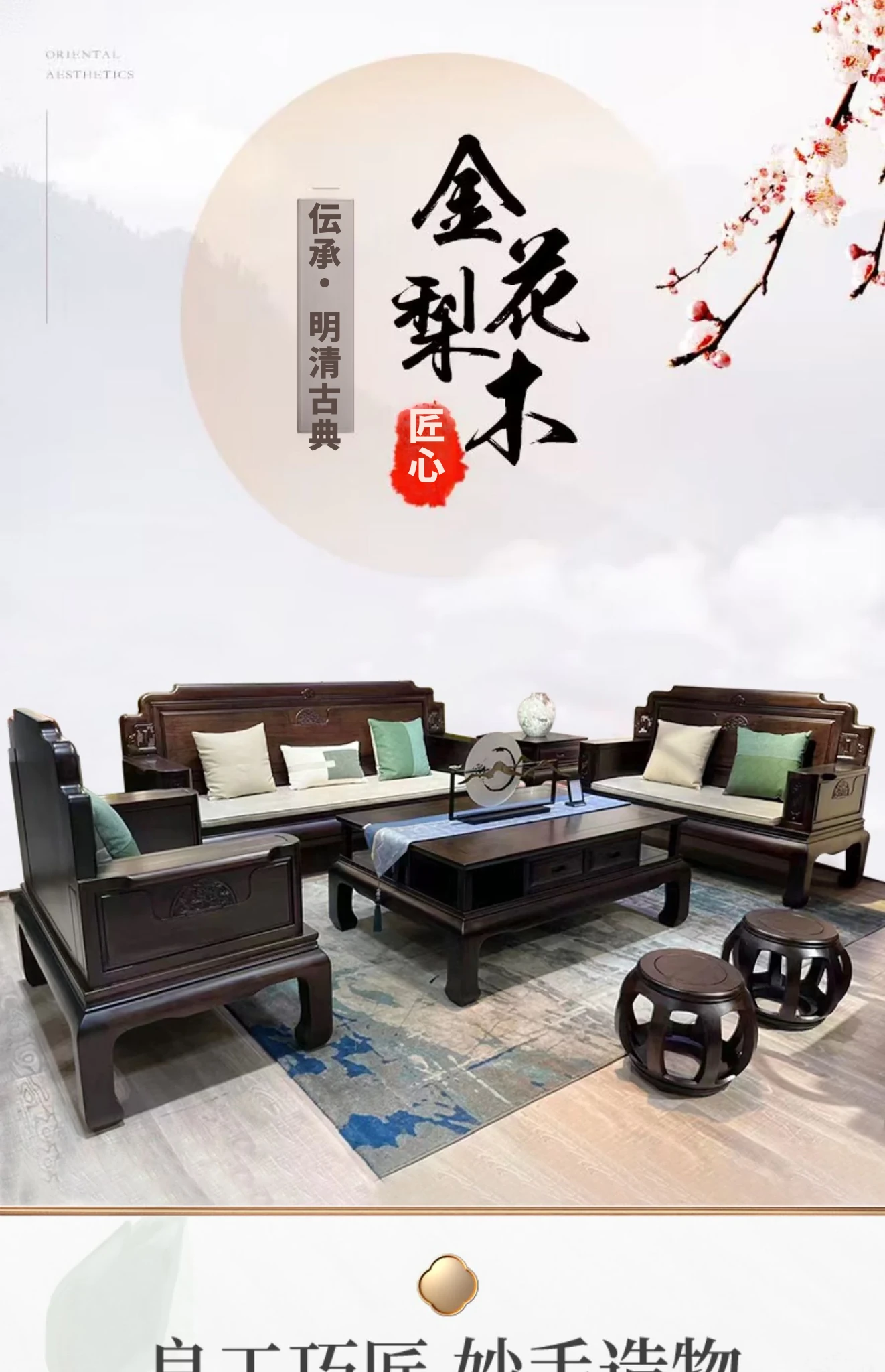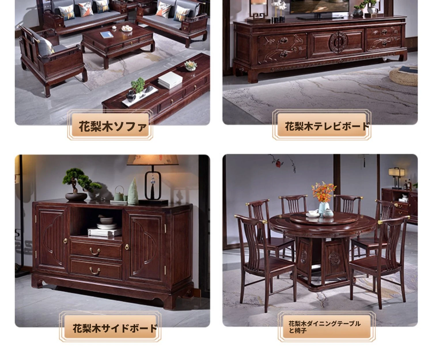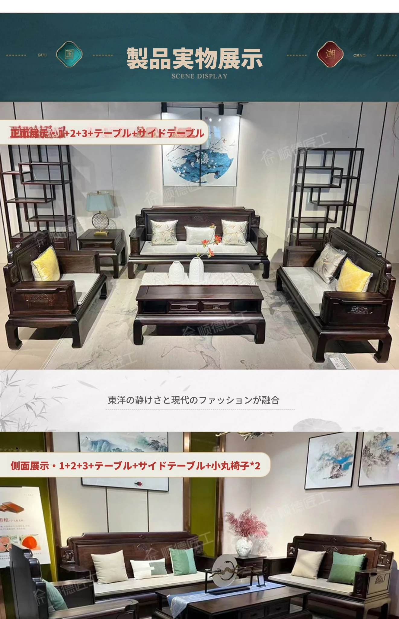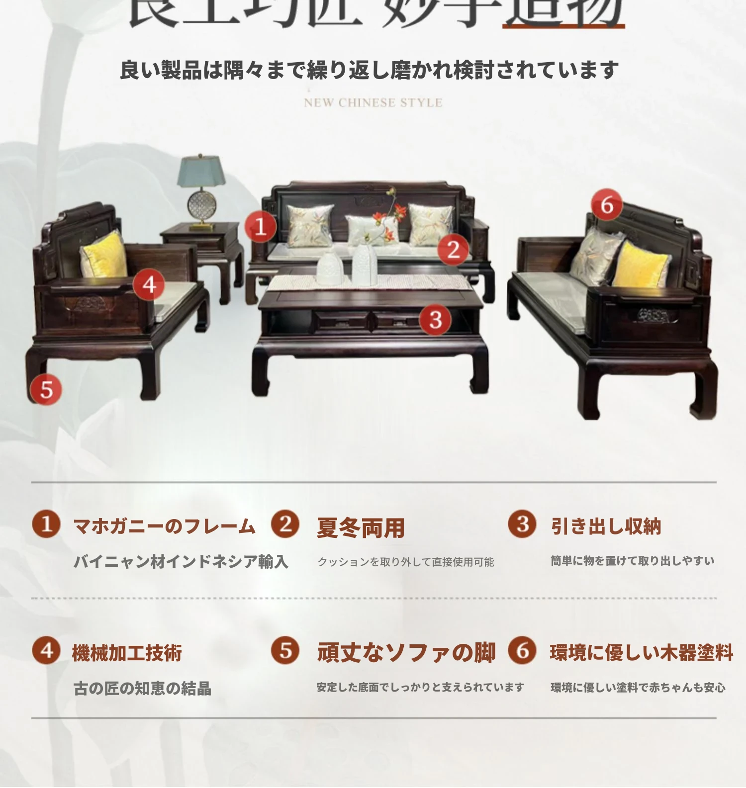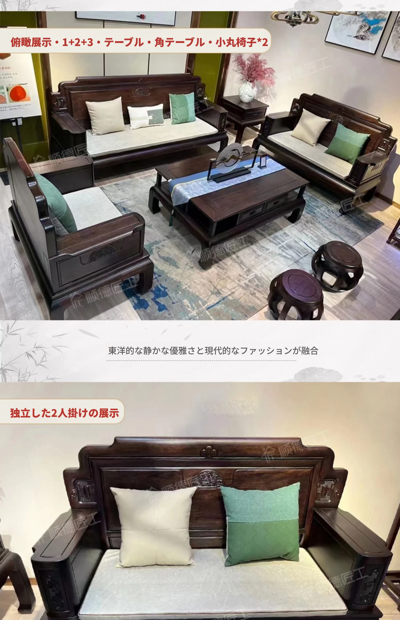 新中式花梨木製ソファセット123 - 冬夏両用、古典的な彫刻が施された高級紅木リビング家具で、優雅な空間を演出します!