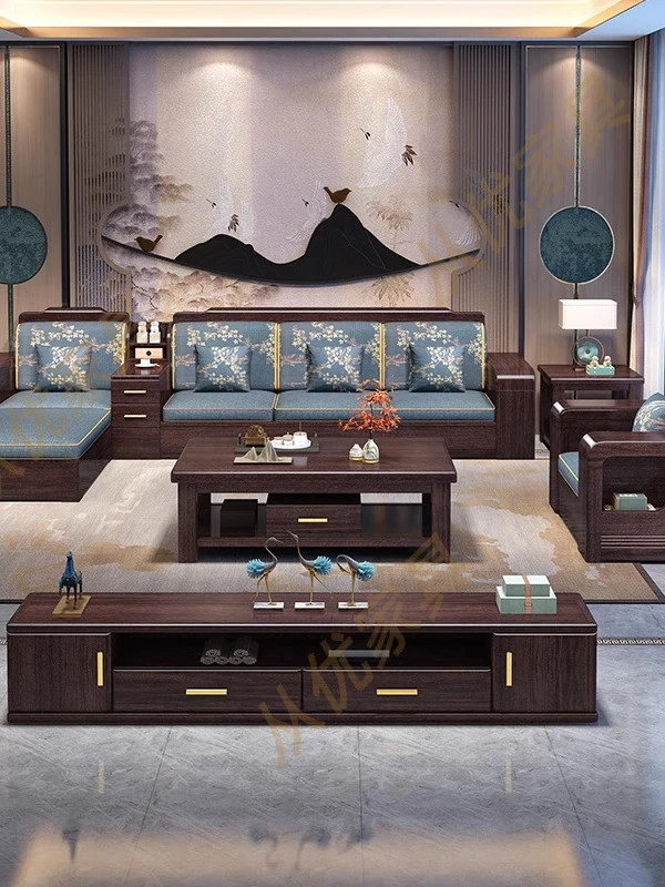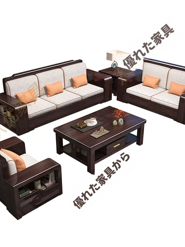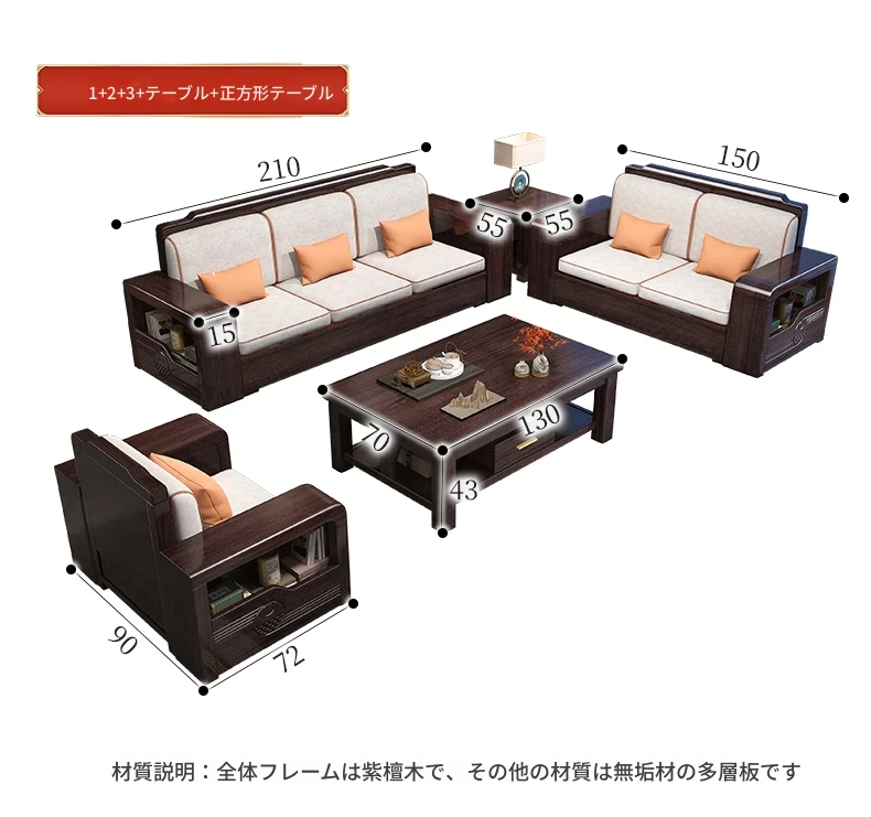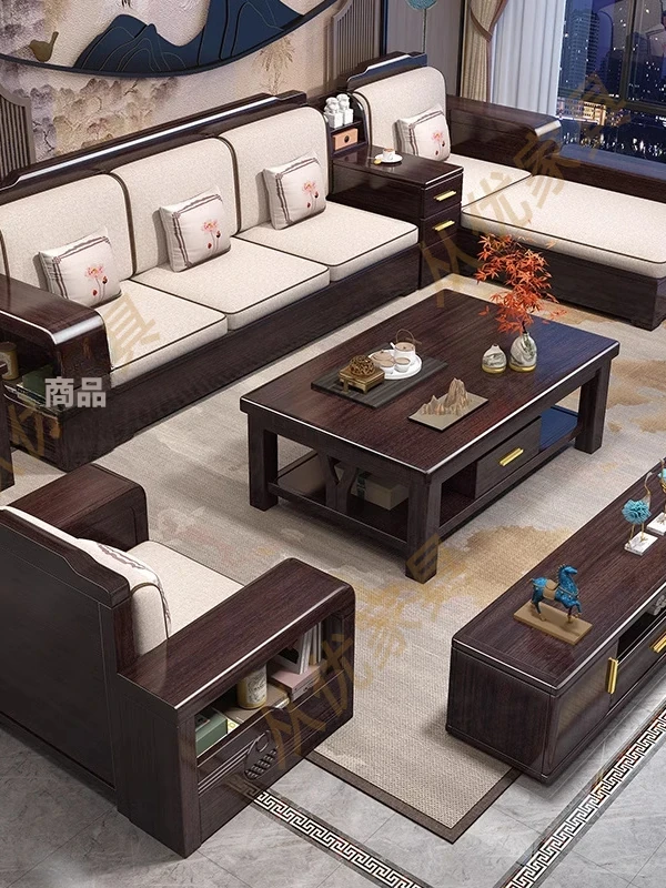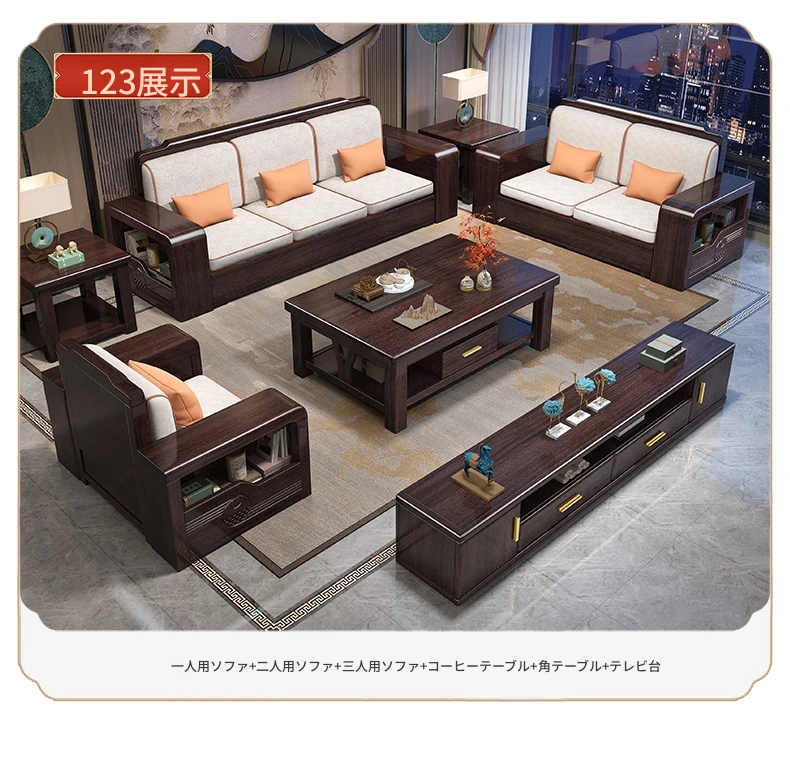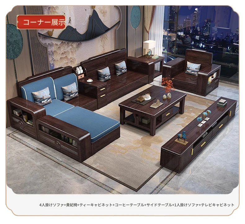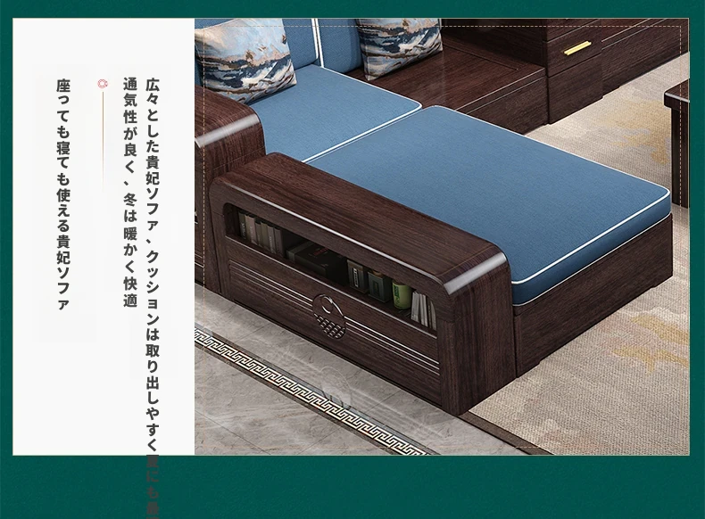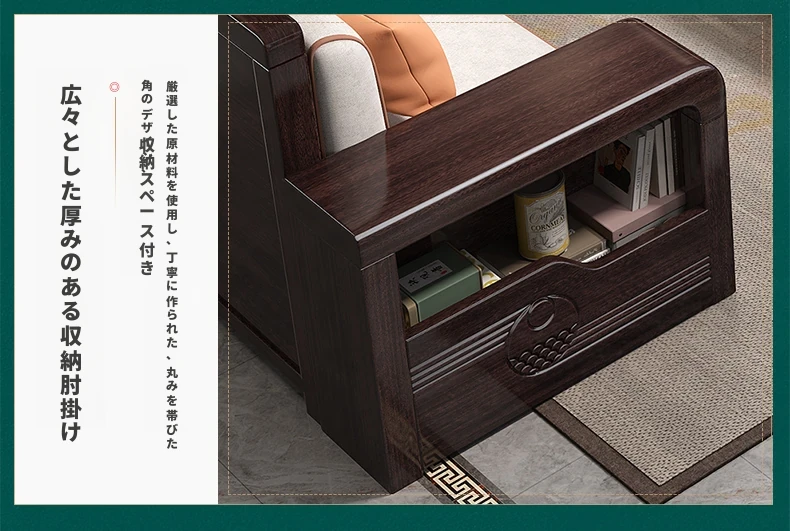 新中式紫金檀の無垢材使用!シンプルでモダンなデザインの収納付きリビングソファ。大小の部屋に最適なコーナー木製家具で、エレガントな空間を演出します!