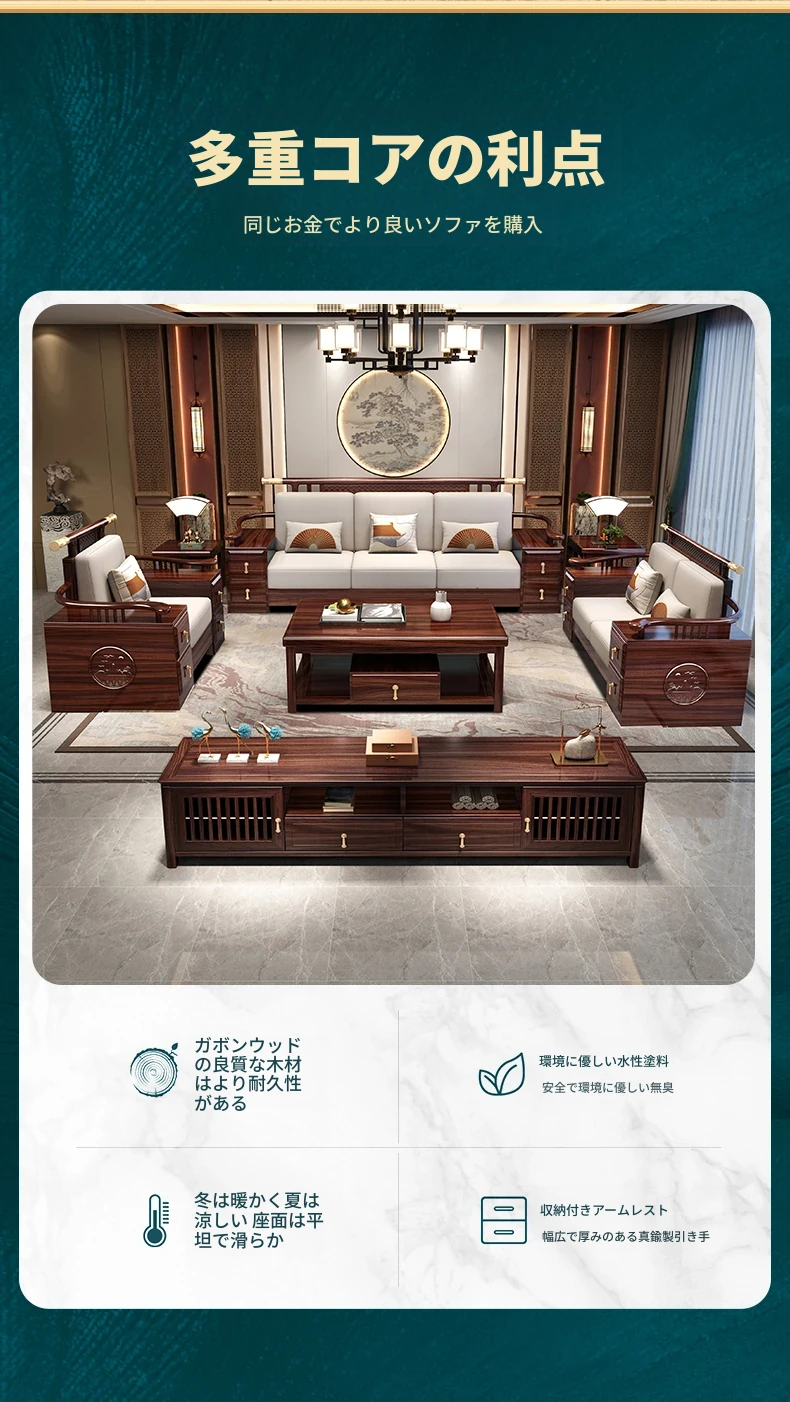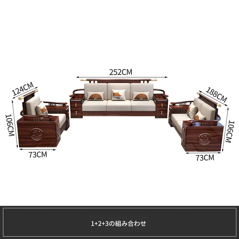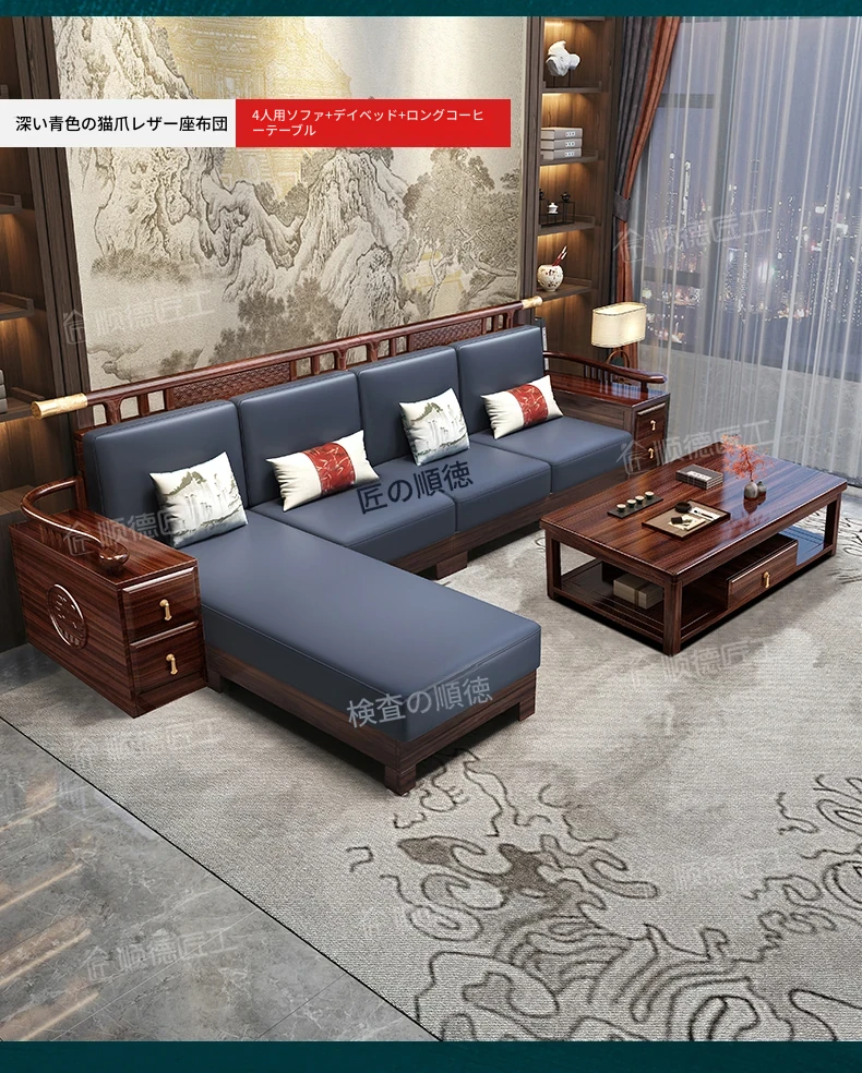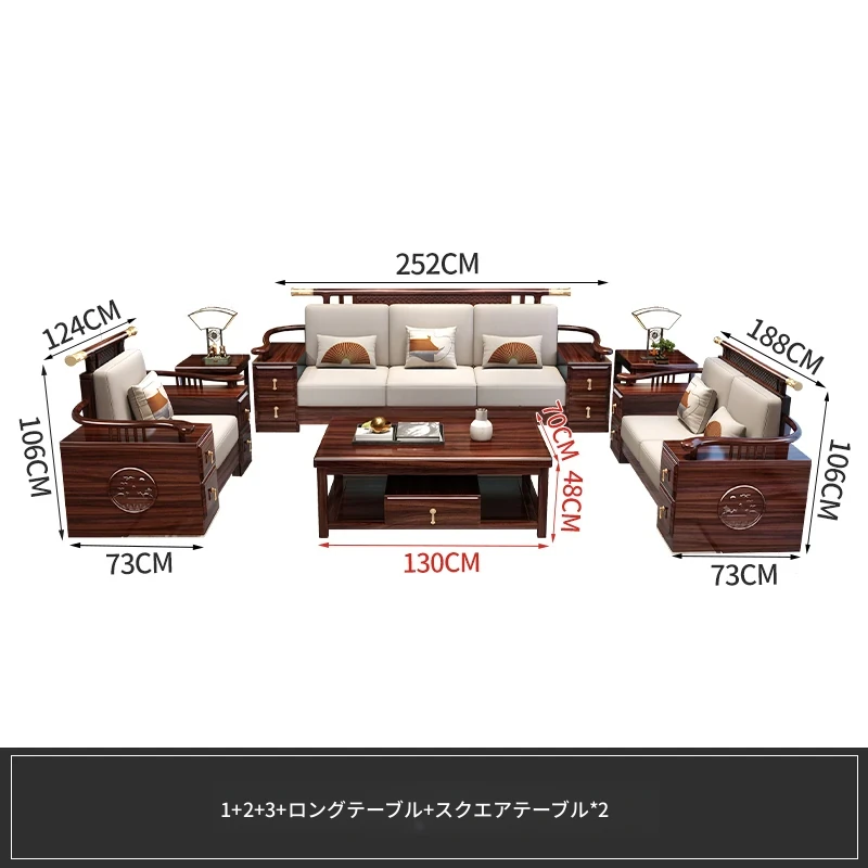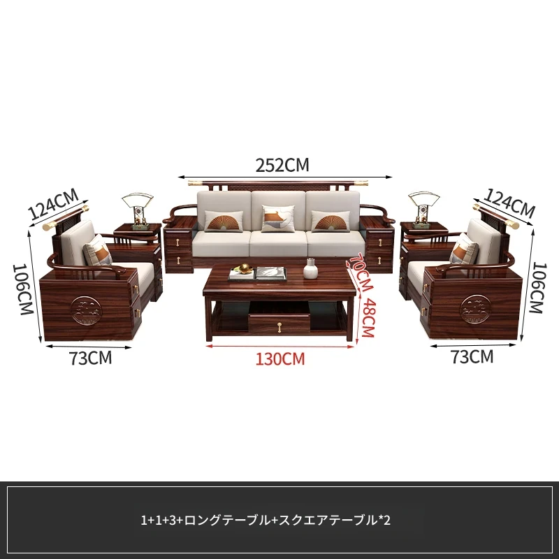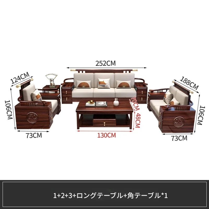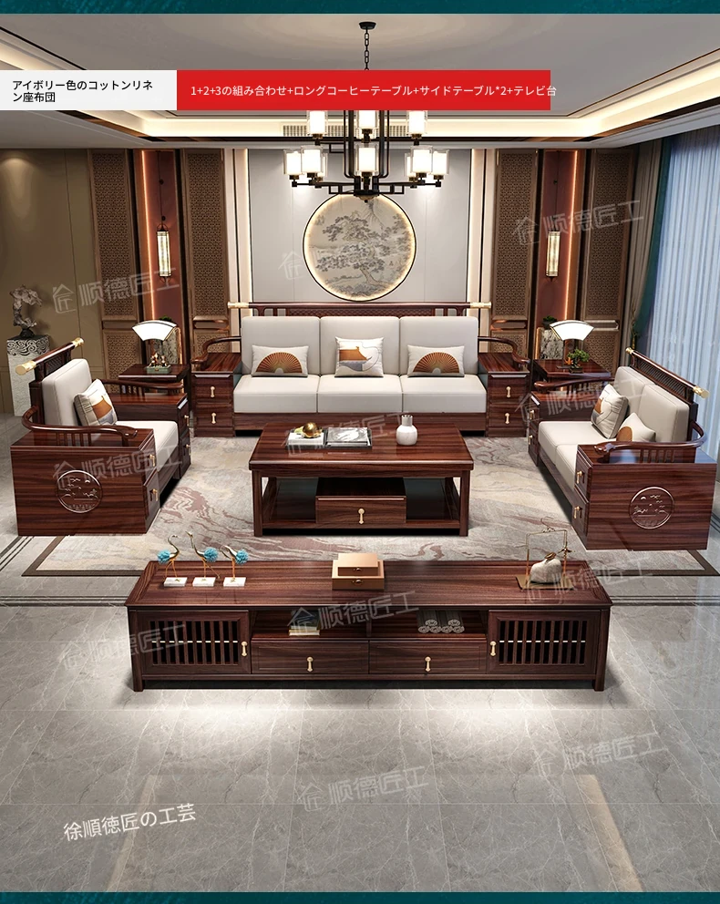新中式ウッドウッドソファセット123!高級感あふれるコーナーヘッドボードデザインで、リビングルームのサイズに関わらず完璧にフィット。上質なウッディーな家具で、心地よい空間を演出します。