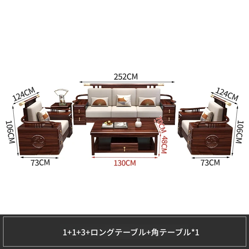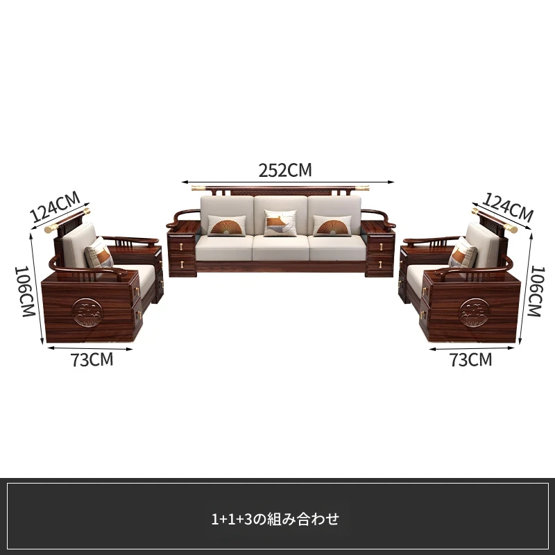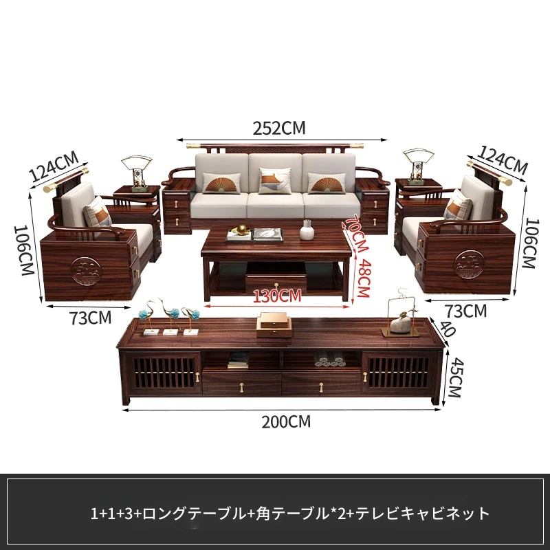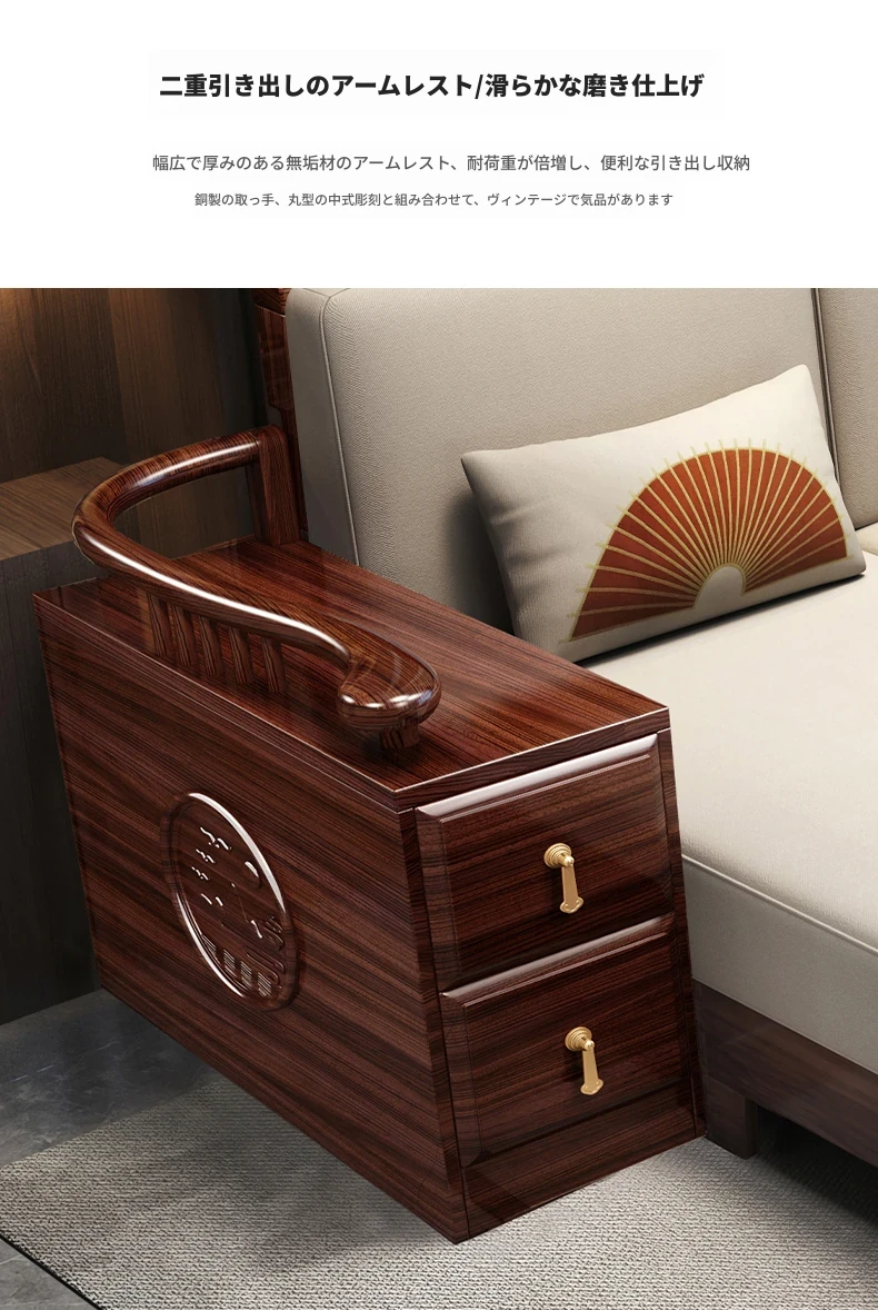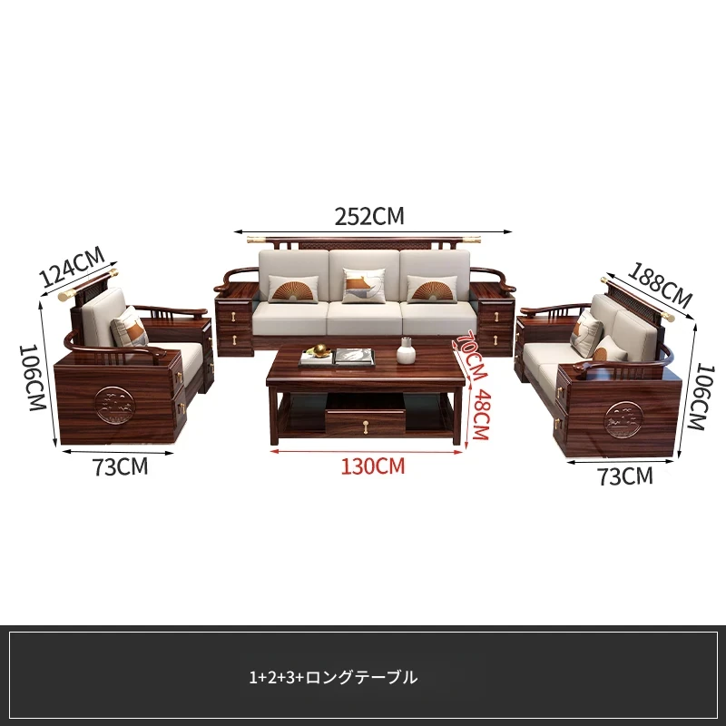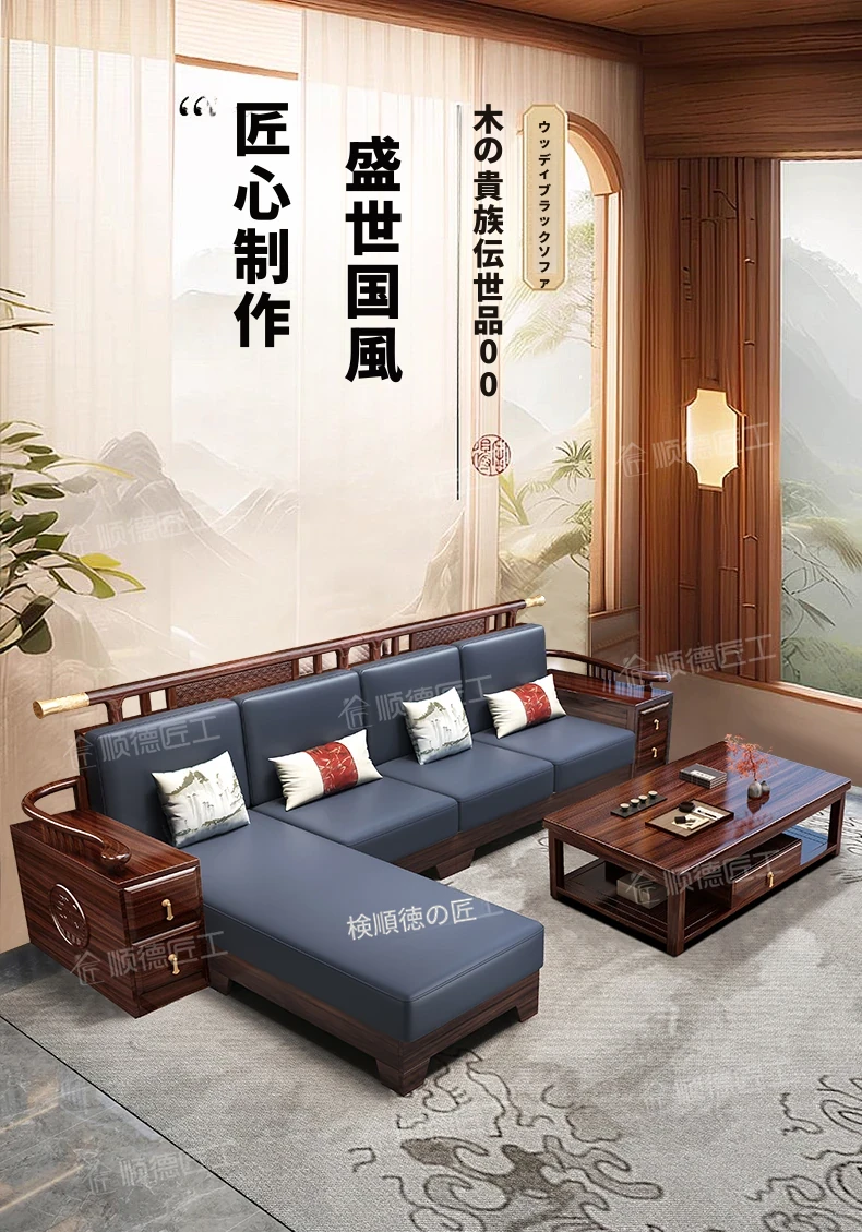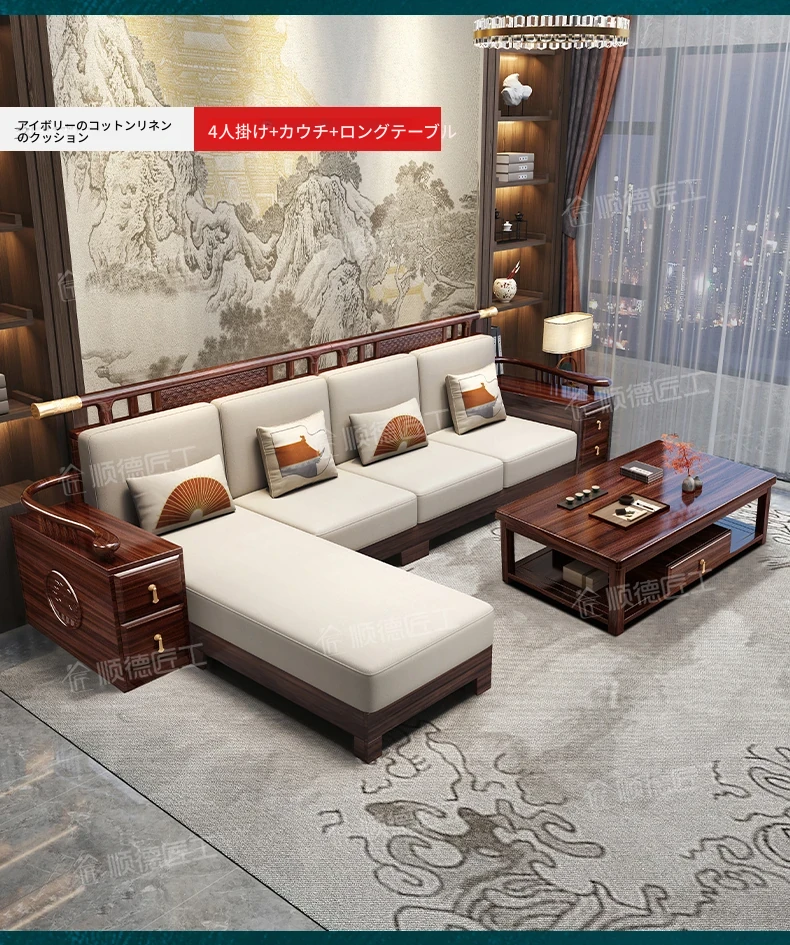 新中式ウッドウッドソファセット123!高級感あふれるコーナーヘッドボードデザインで、リビングルームのサイズに関わらず完璧にフィット。上質なウッディーな家具で、心地よい空間を演出します。