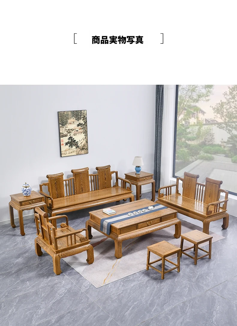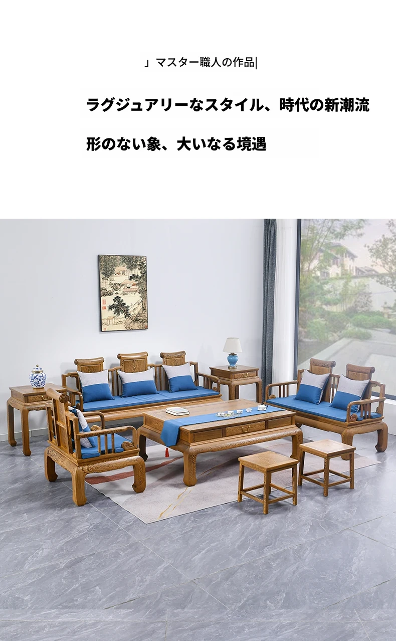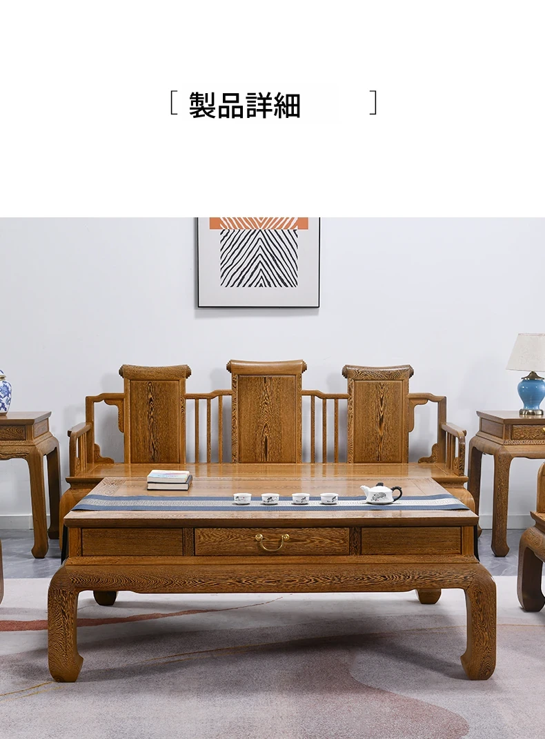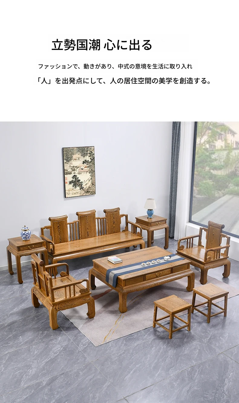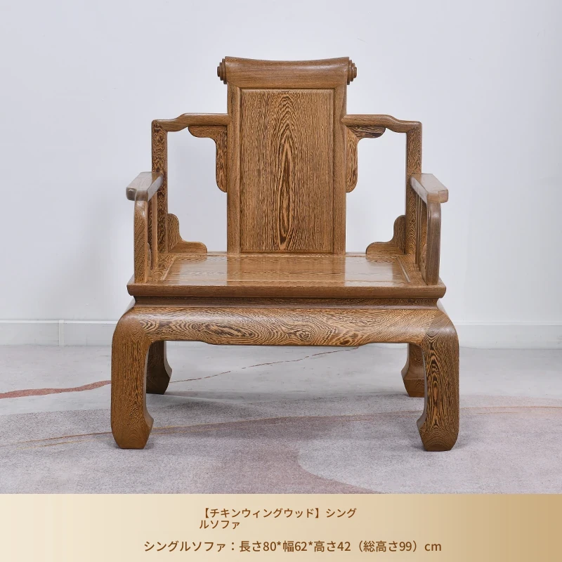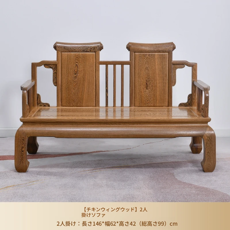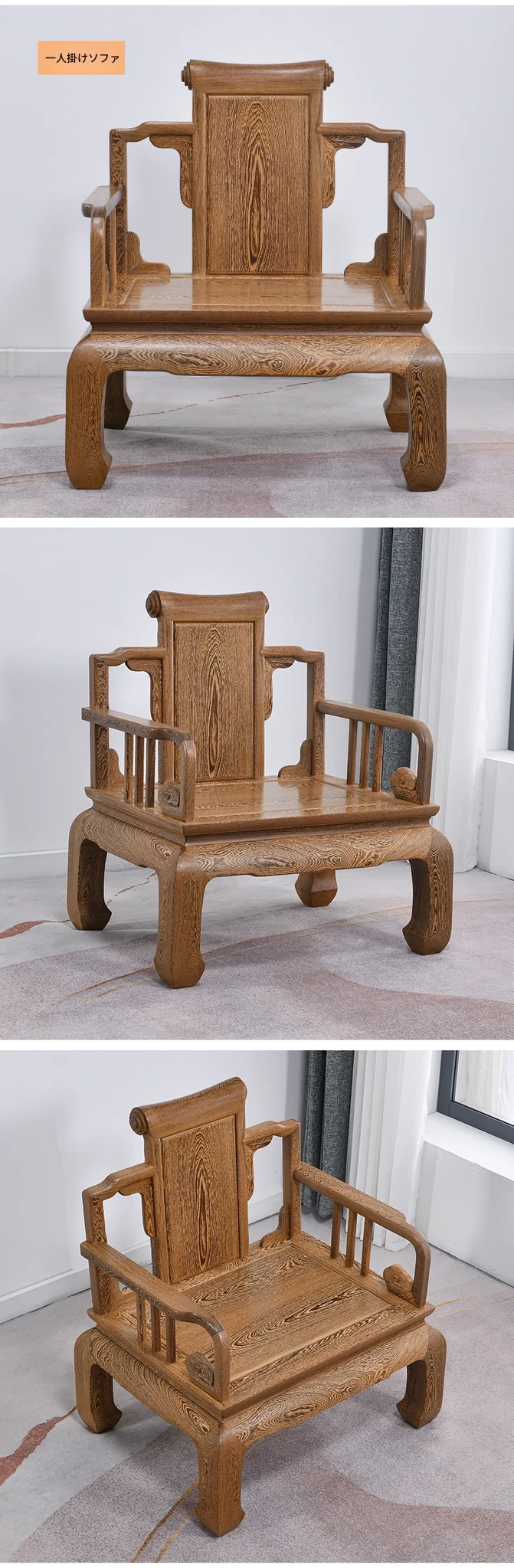 高級紅木家具!実木製のリビングルーム用ソファチェアセット、チキンウィングウッド製の新中式古風巻物デザイン、三人掛けフルセット!心地よい寛ぎ空間を演出します。