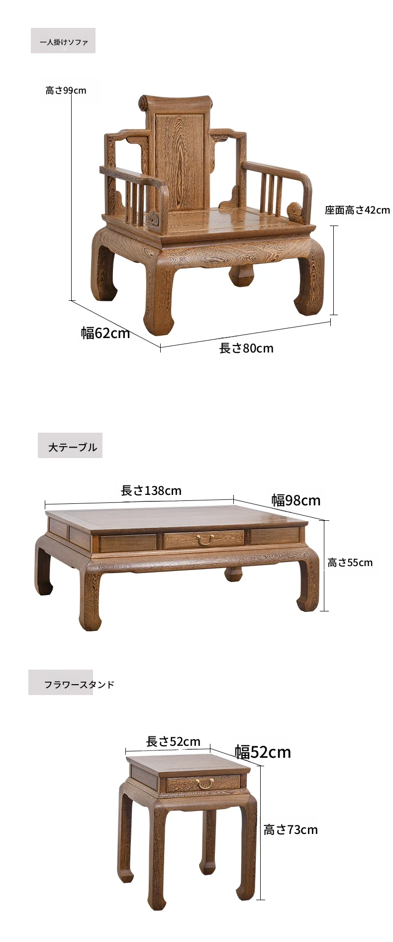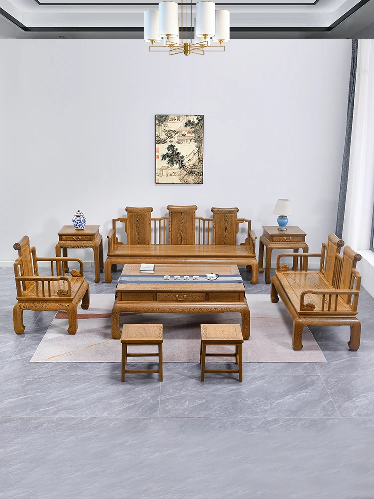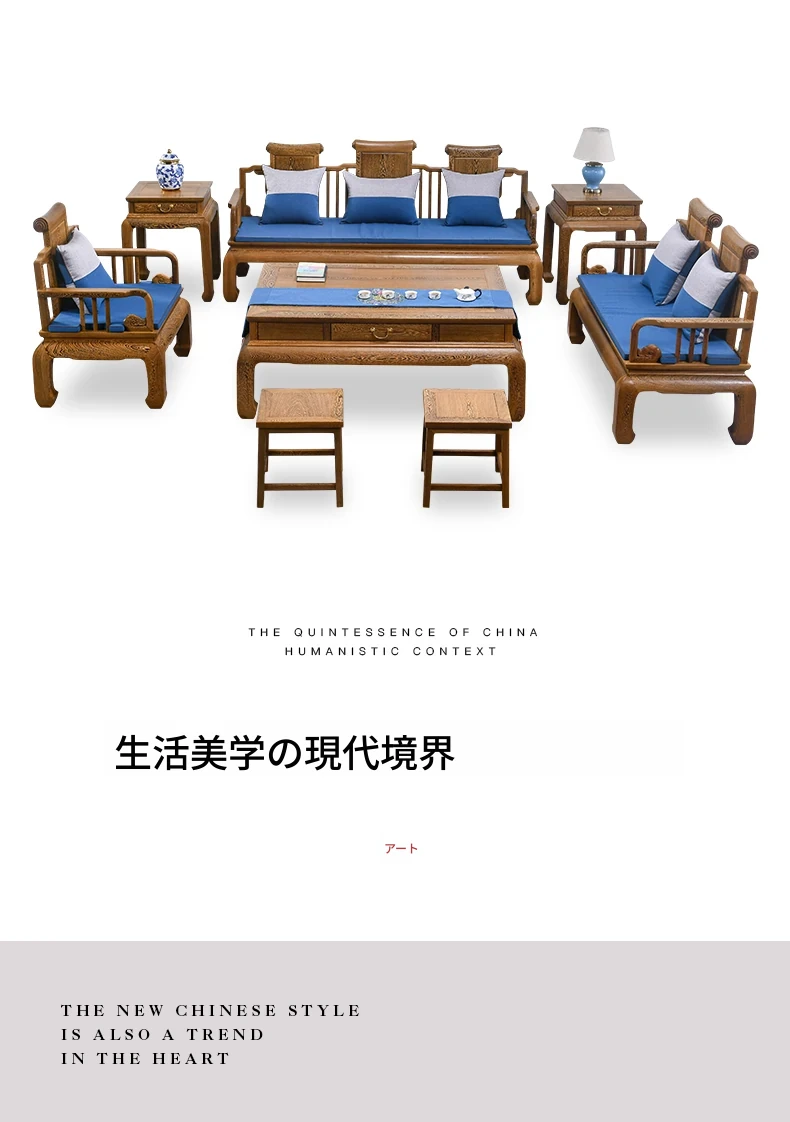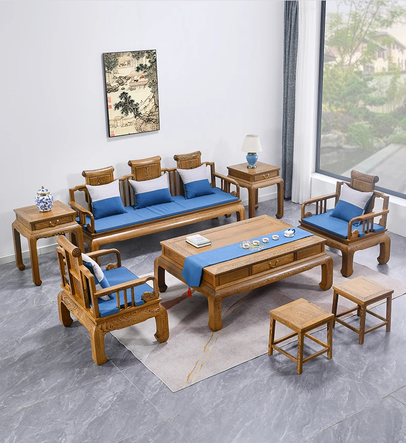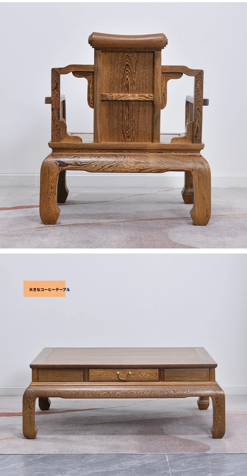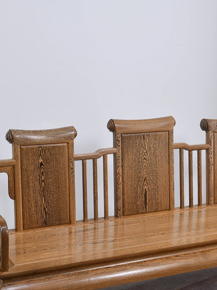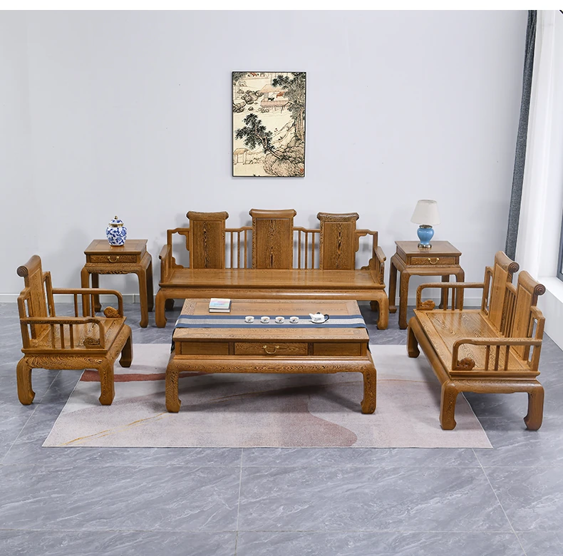 高級紅木家具!実木製のリビングルーム用ソファチェアセット、チキンウィングウッド製の新中式古風巻物デザイン、三人掛けフルセット!心地よい寛ぎ空間を演出します。