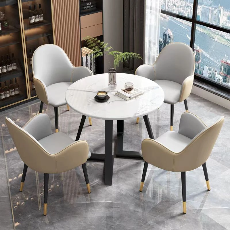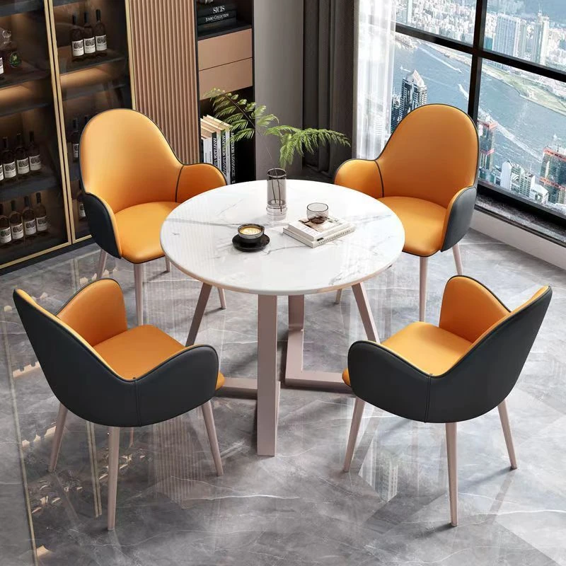 モダンでシンプルな猫爪デザインのラウンドテーブル&チェアセット!リラックスした雰囲気で、バルコニーや会議室に最適な軽やかなラグジュアリー感を演出します。おしゃれな接客スタイルを実現!