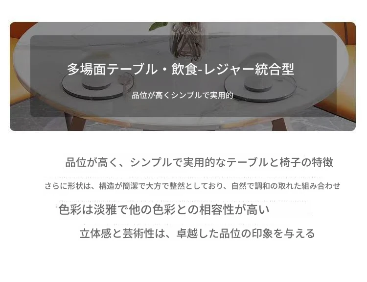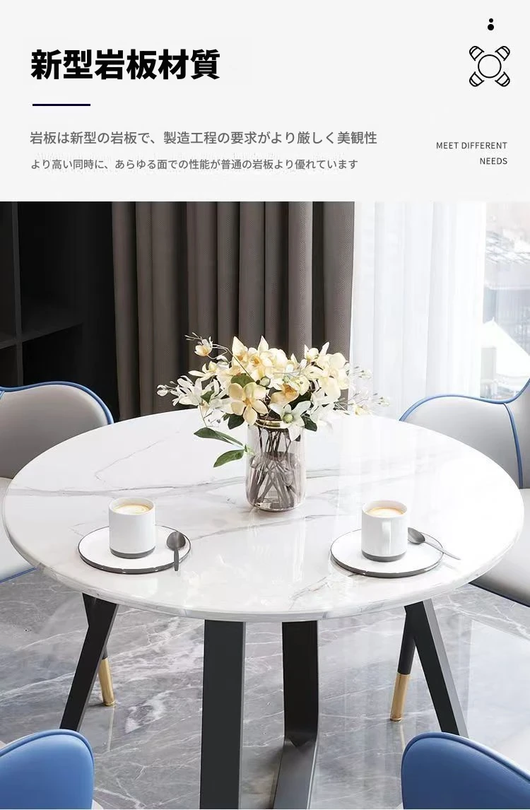 【70岩板】一卓四椅/黒色と浅灰の組み合わせ/黒金Vテーブル脚