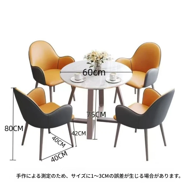 【60岩板】一卓四椅/オレンジと浅灰の組み合わせ/黒金Vテーブル脚