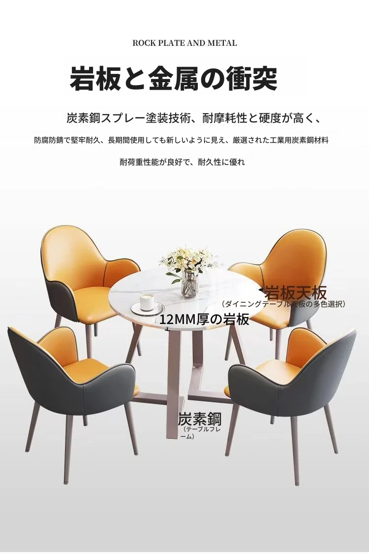 【70岩板】一卓四椅/オレンジと浅灰の組み合わせ/黒金Vテーブル脚