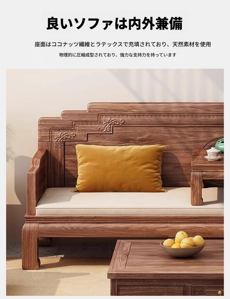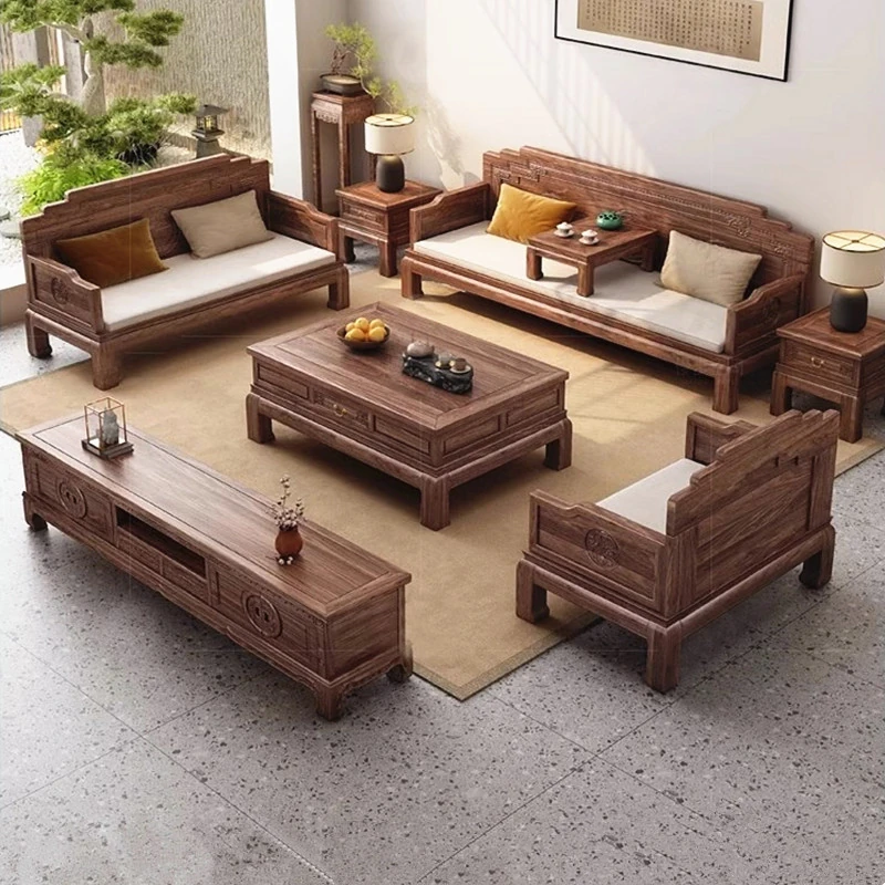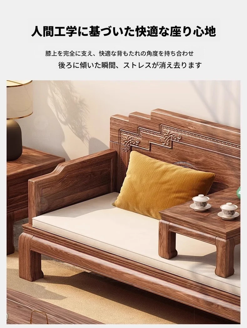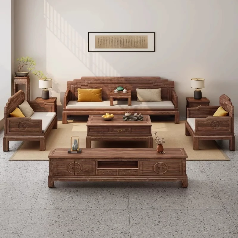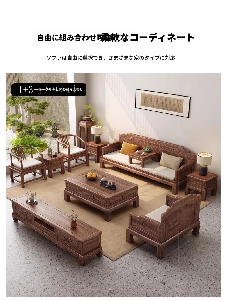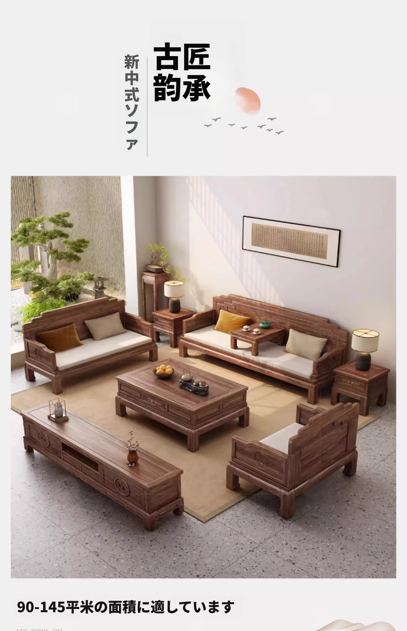 新中式ウォールナット無垢材ソファセット - 宋氏美学と禅の精神が融合した、大小どんなリビングにもぴったりのクラシック家具。心安らぐ空間を演出します。