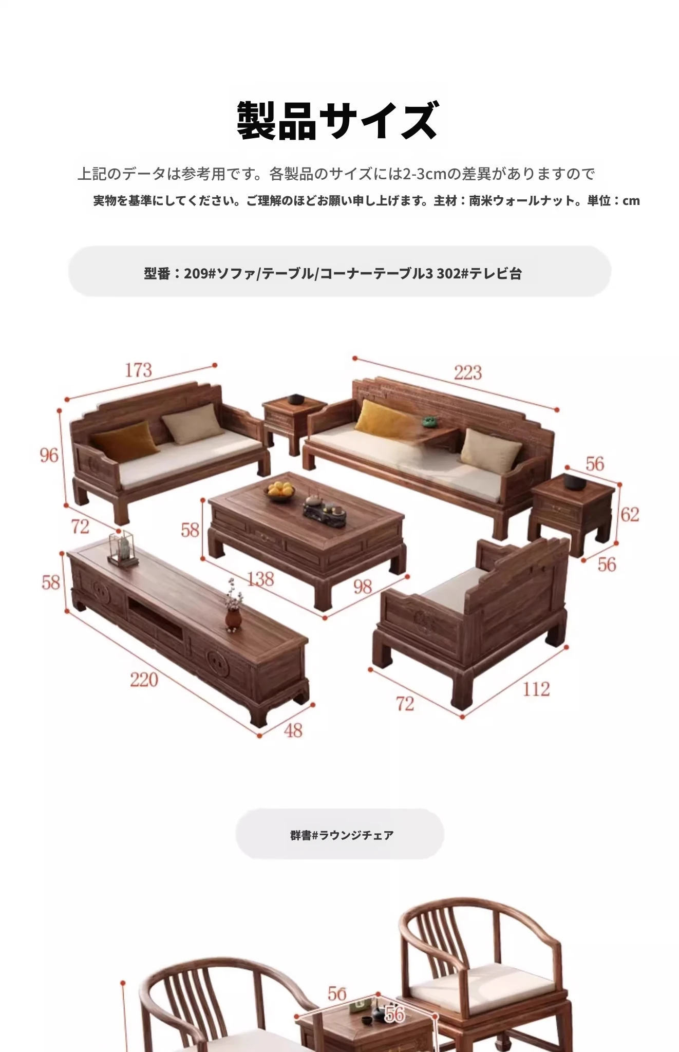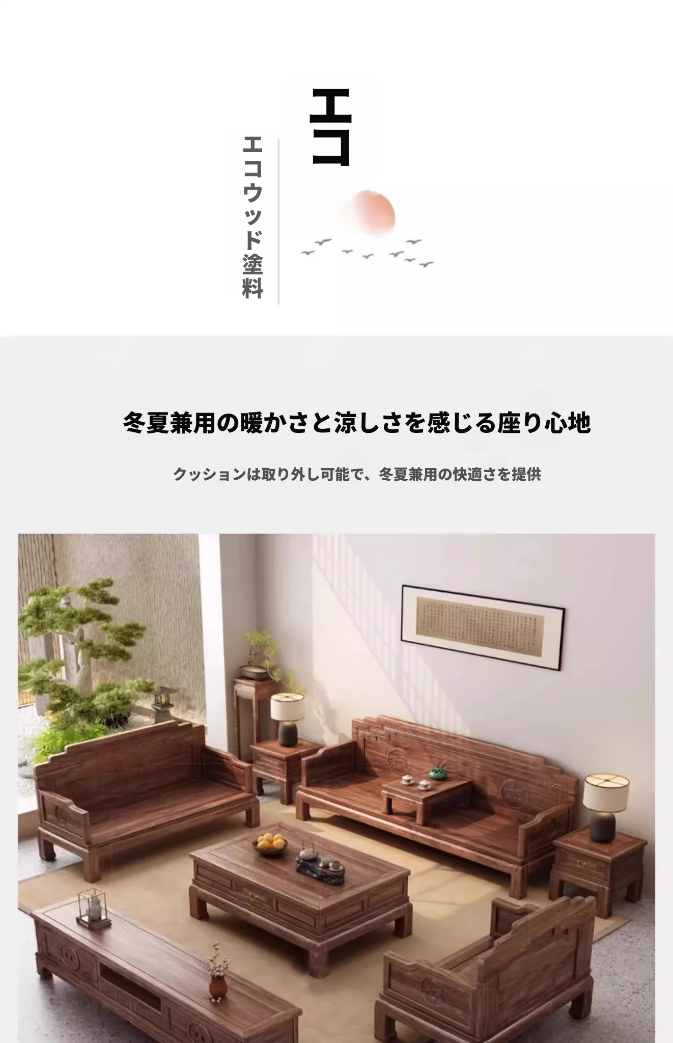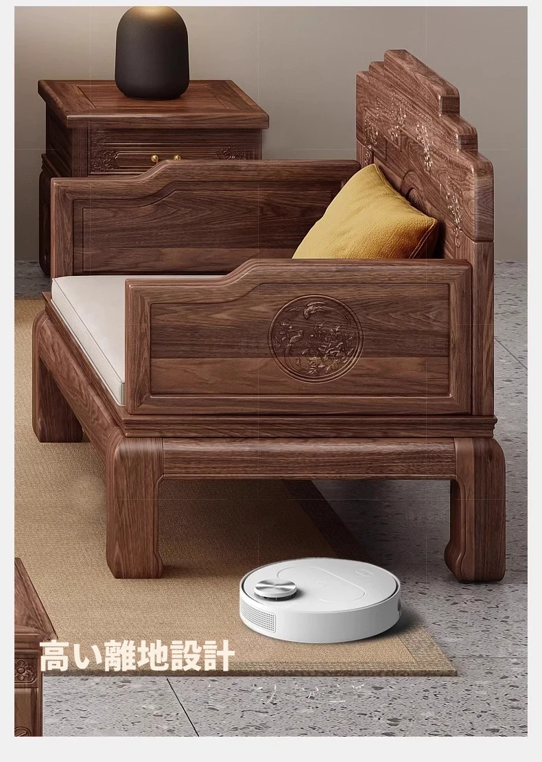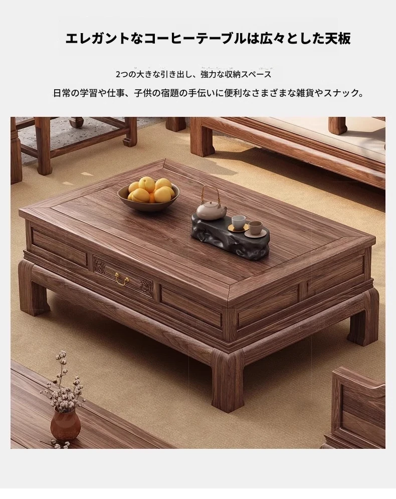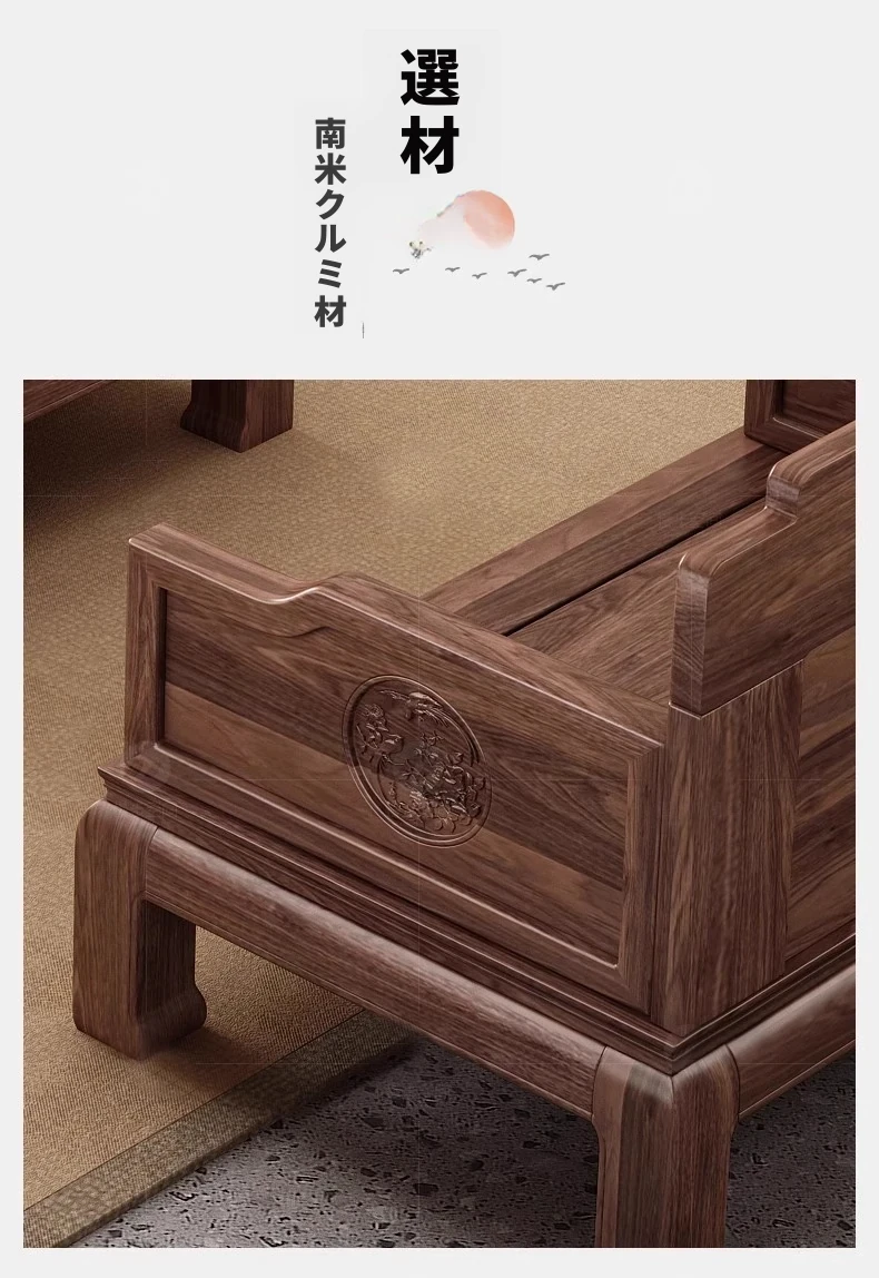 新中式ウォールナット無垢材ソファセット - 宋氏美学と禅の精神が融合した、大小どんなリビングにもぴったりのクラシック家具。心安らぐ空間を演出します。