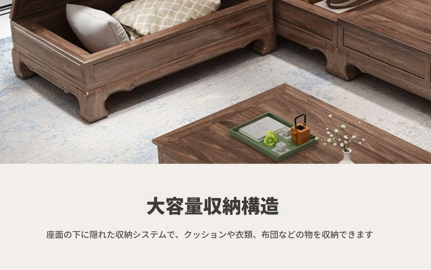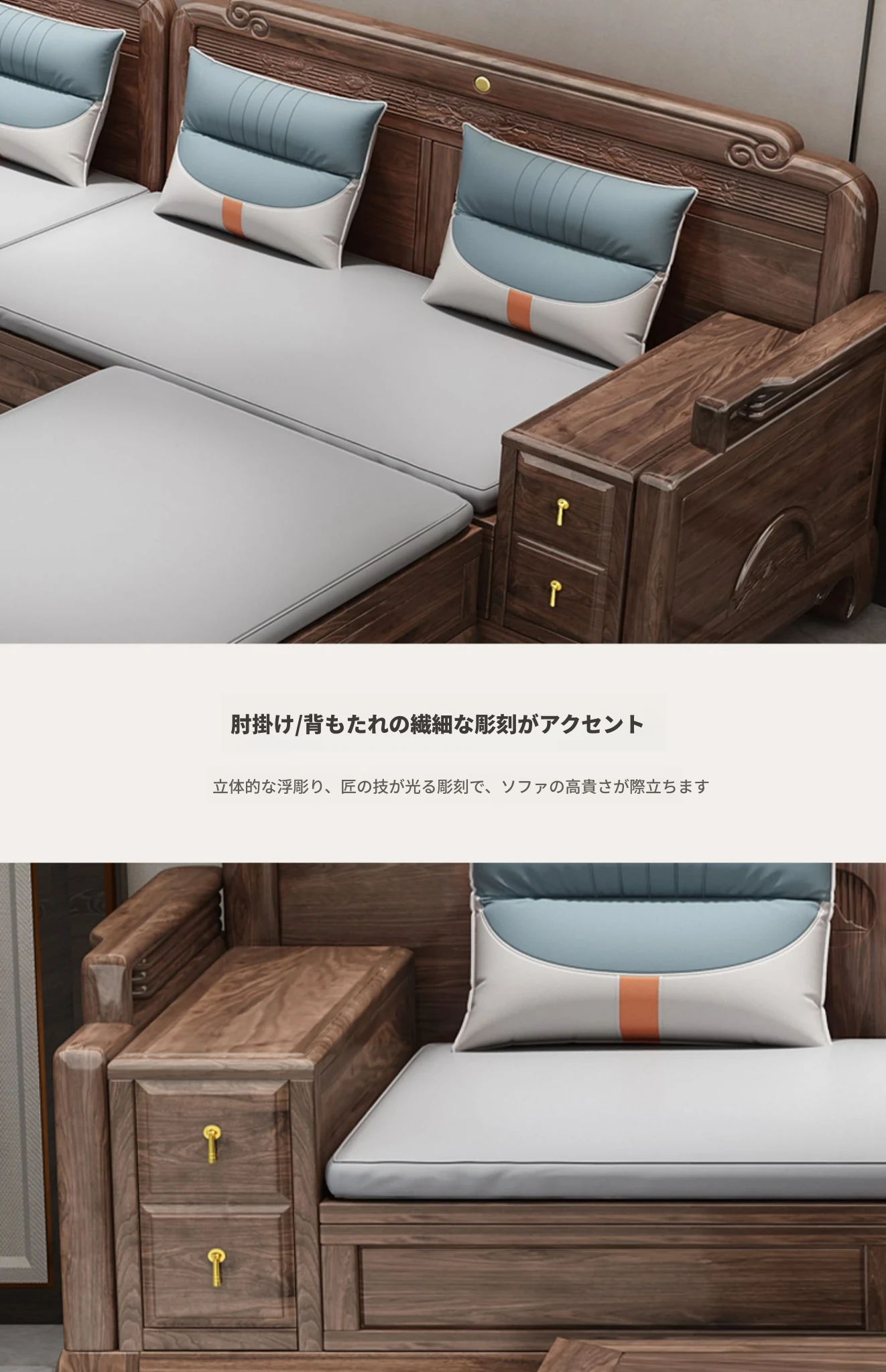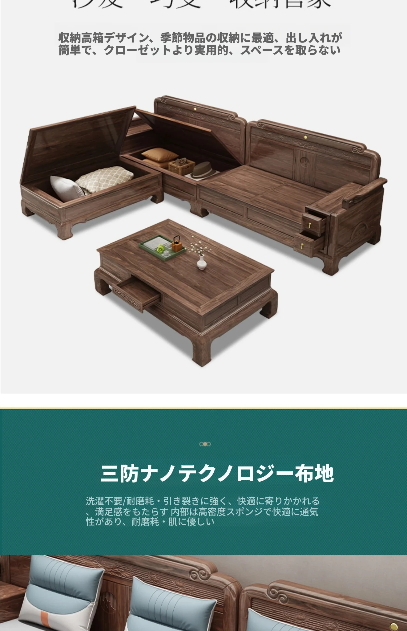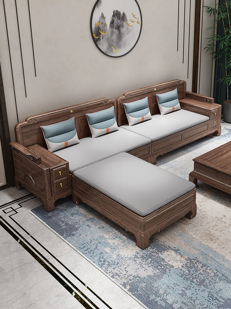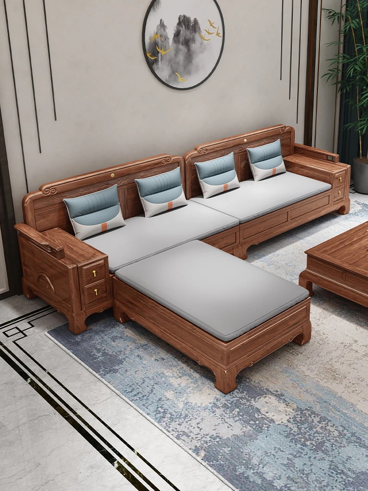 新中式全実木製ソファー ジンファー梨の木彫刻 冬夏兼用コーナー貴妃ソファー 収納付き紅木リビング家具で、優雅な空間を演出!おしゃれで機能的なデザインが魅力。