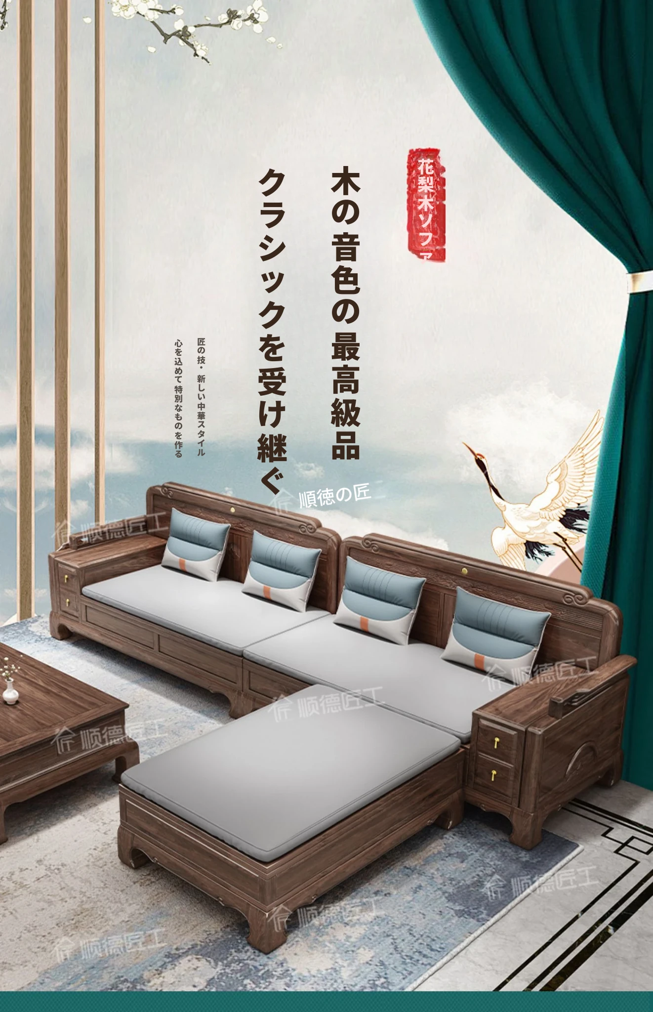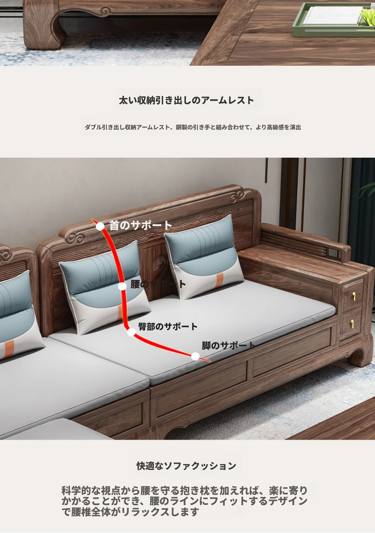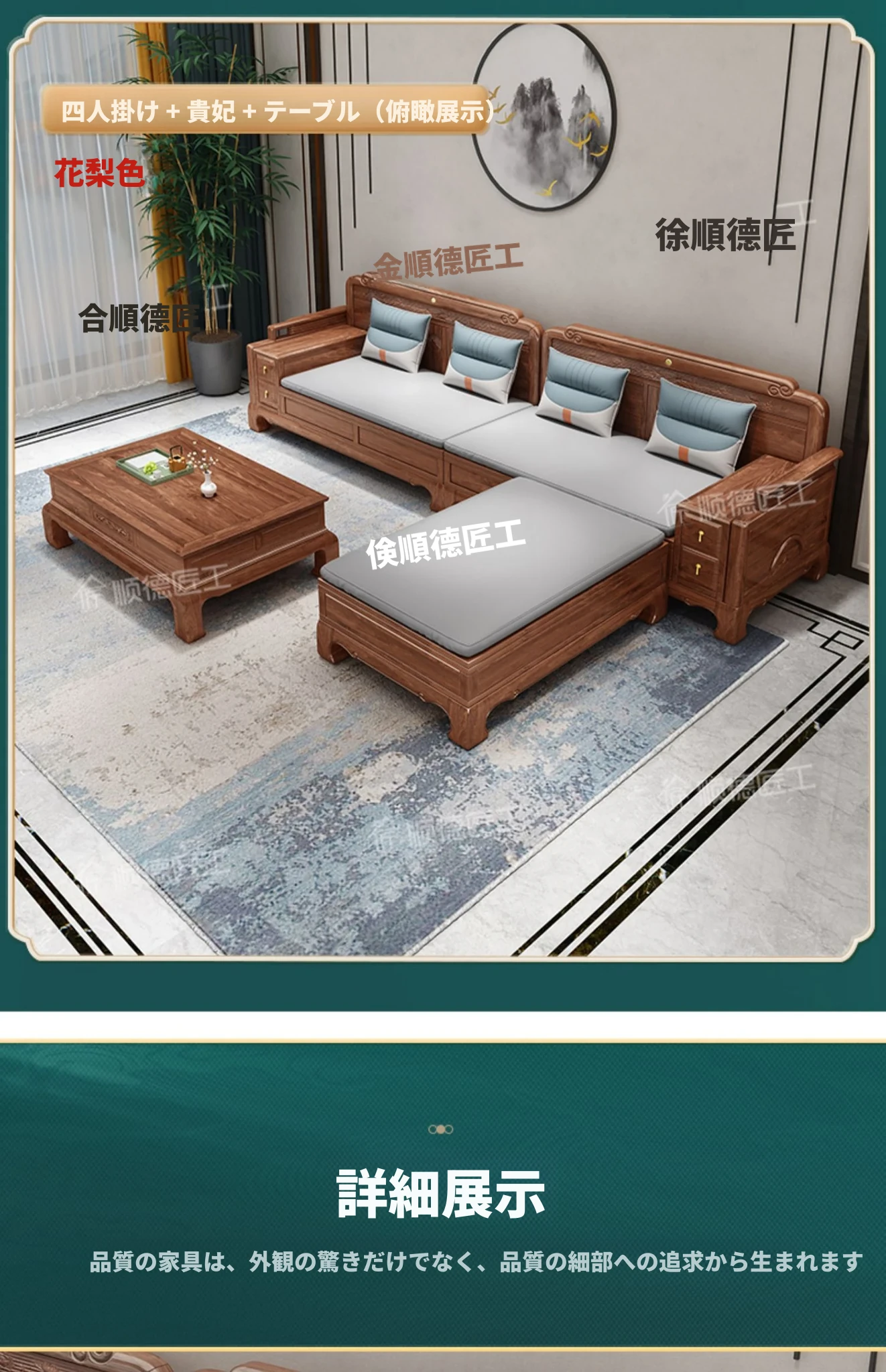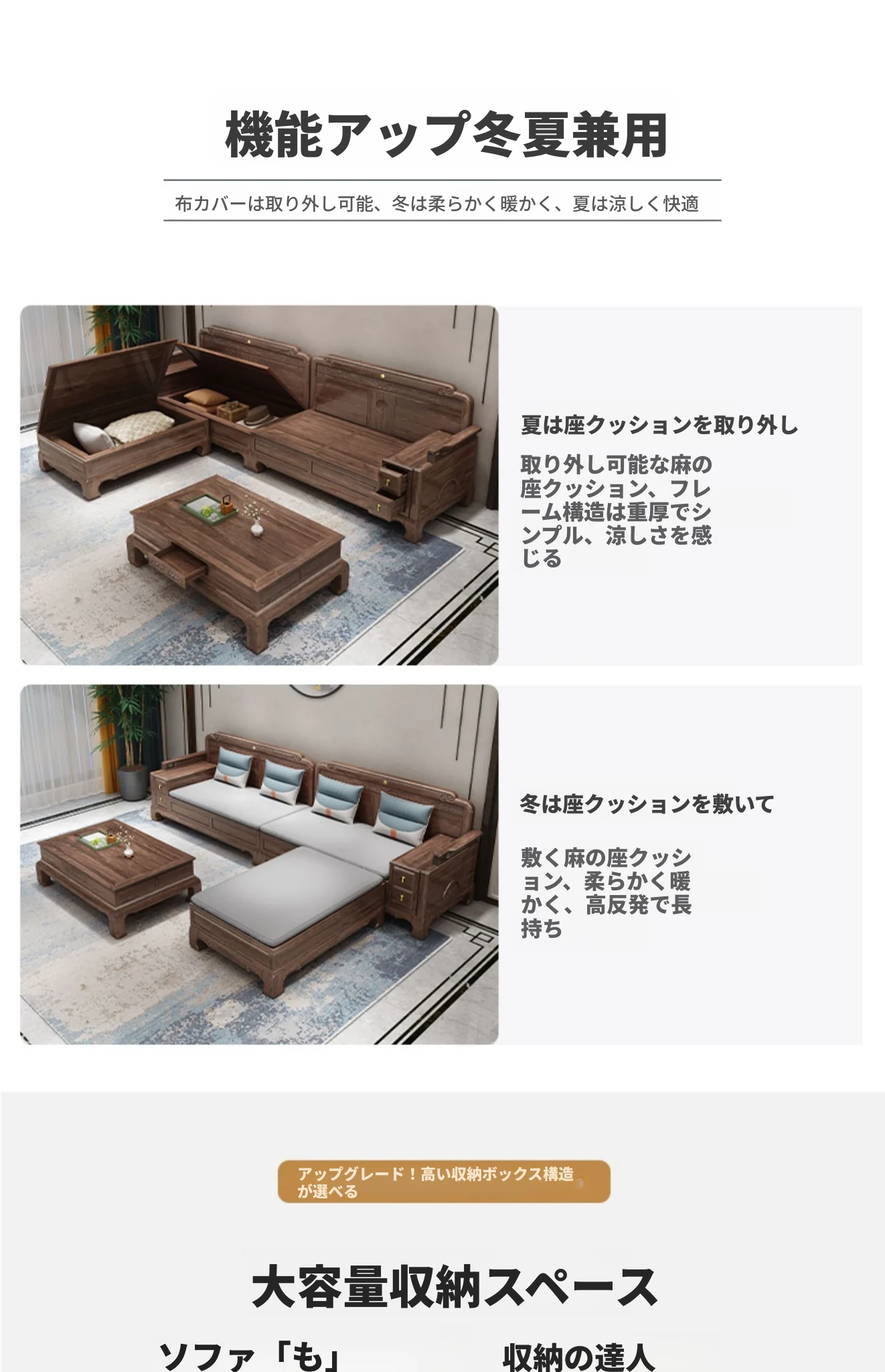 新中式全実木製ソファー ジンファー梨の木彫刻 冬夏兼用コーナー貴妃ソファー 収納付き紅木リビング家具で、優雅な空間を演出!おしゃれで機能的なデザインが魅力。
