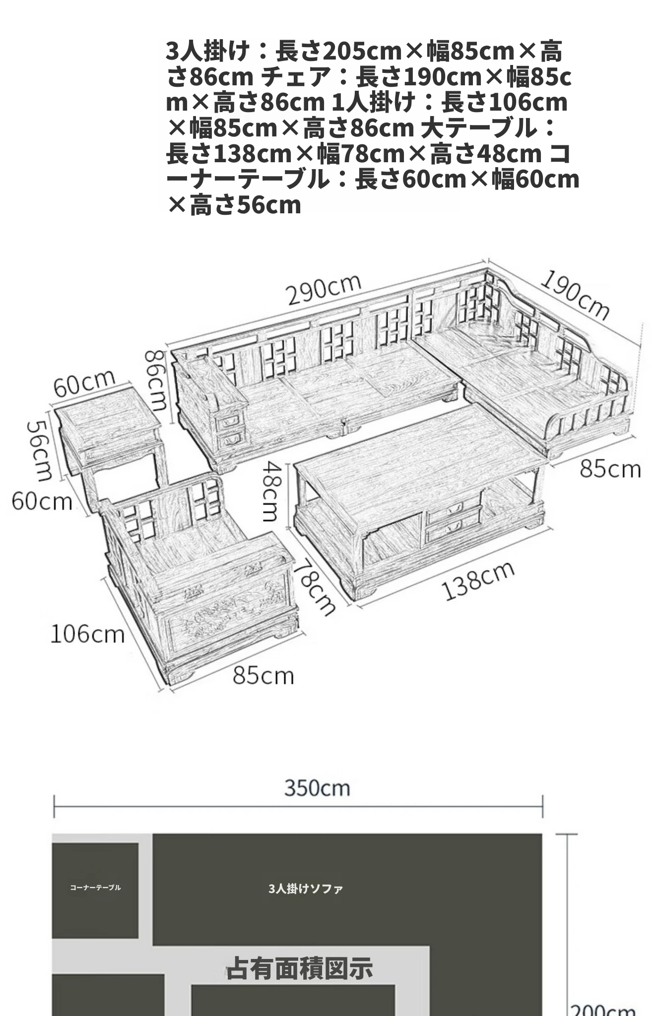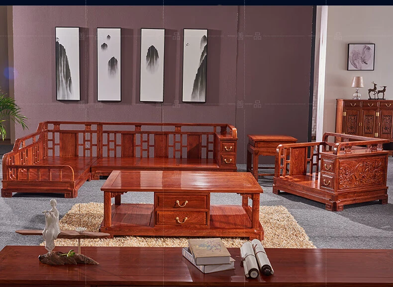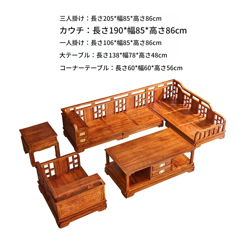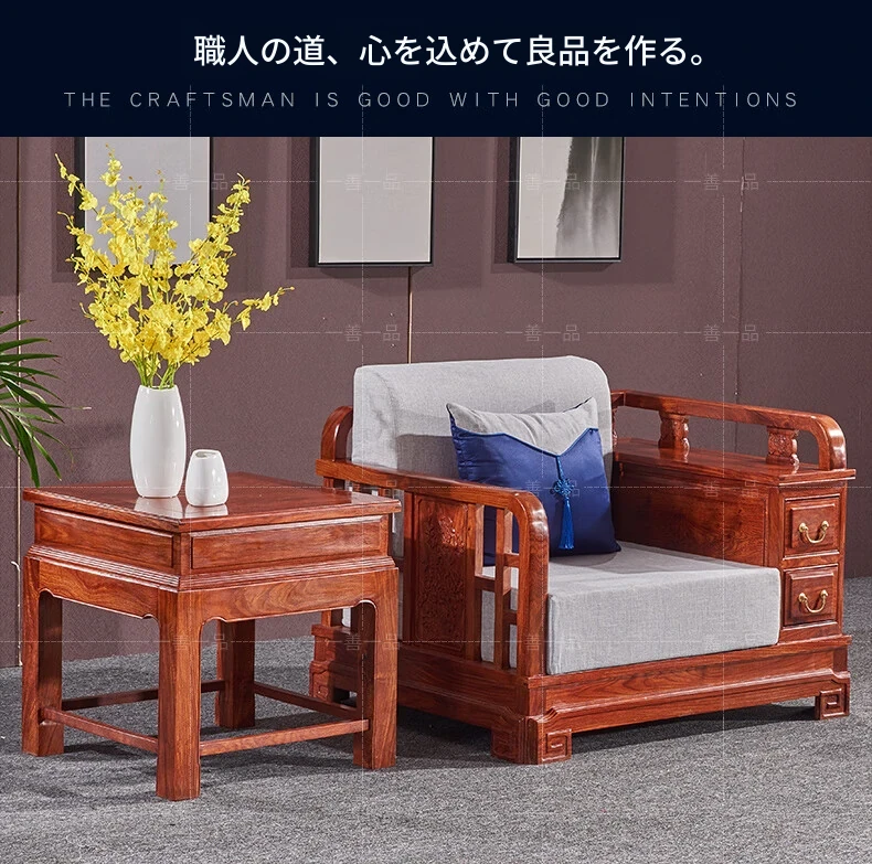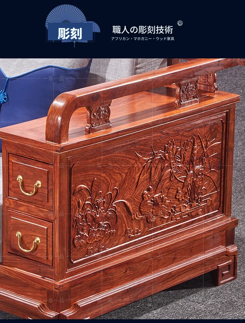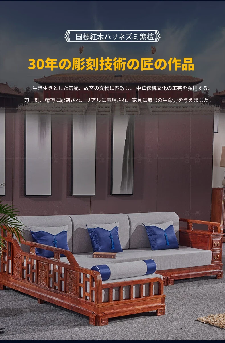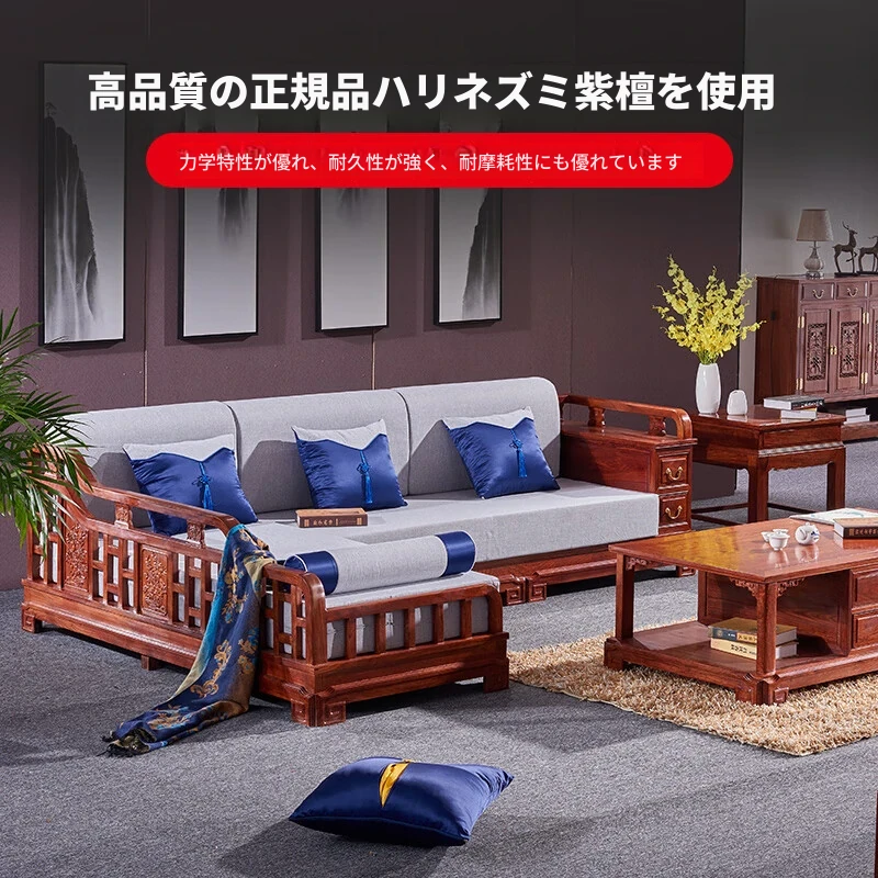 高級紅木家具|実木製ソファセット|ヴィラ向け新中式デザイン|アンティーク調|アフリカンマホガニー&紫檀の美しいソファで優雅な空間を演出!
