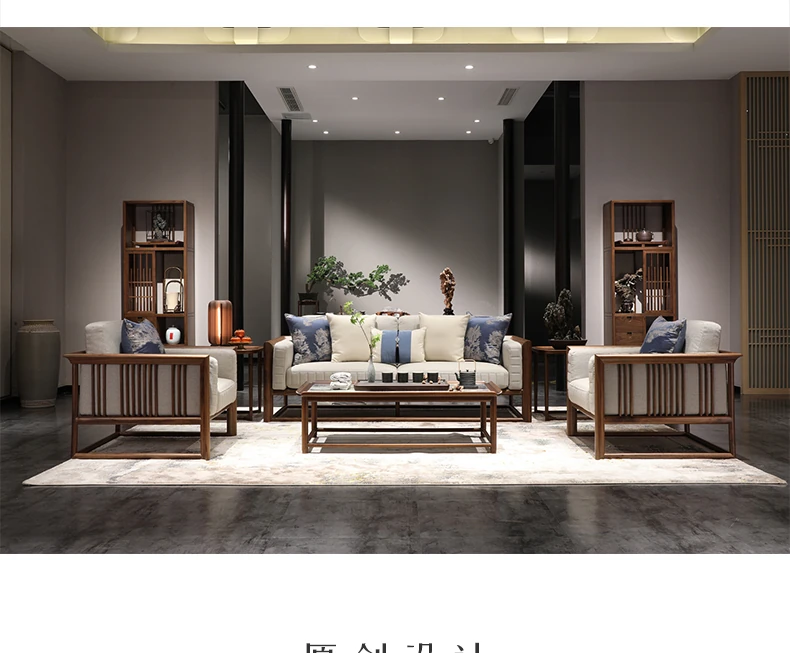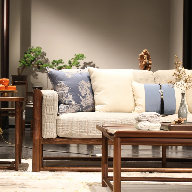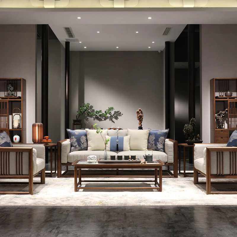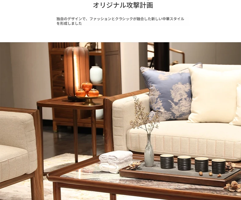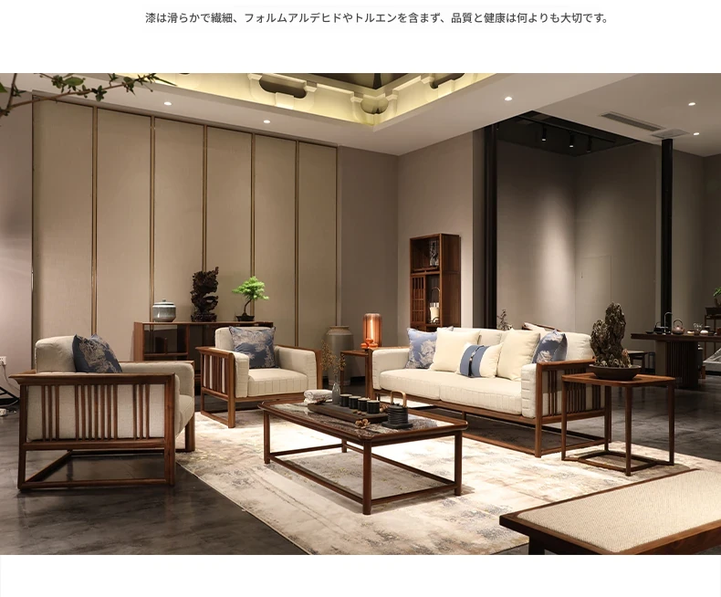 宋式新中式禅風ソファ123組 合体型別荘直置きソファ オフィス・大小住宅向け 天然木製家具で心安らぐ空間を実現!