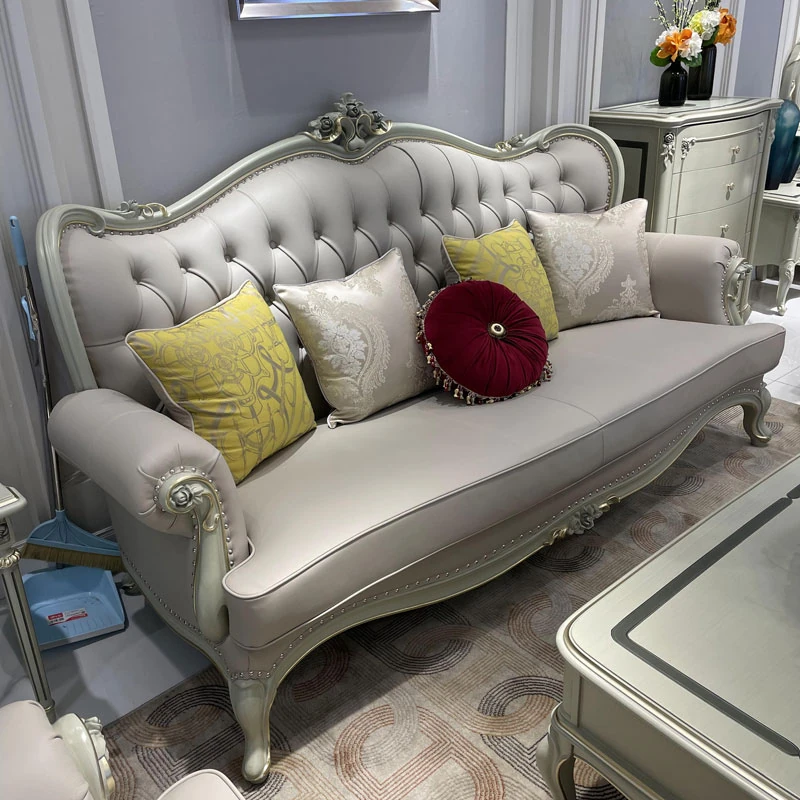 フランス製本革ソファ123組み合わせ、ヴィラや中小型住宅に最適なリビングルーム用。シンプルでありながら豪華なヨーロピアンスタイルの家具で、あなたの空間に洗練された魅力をプラス!
