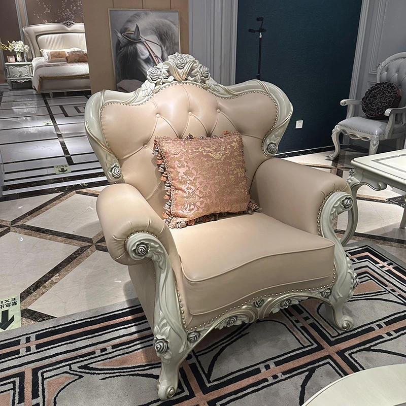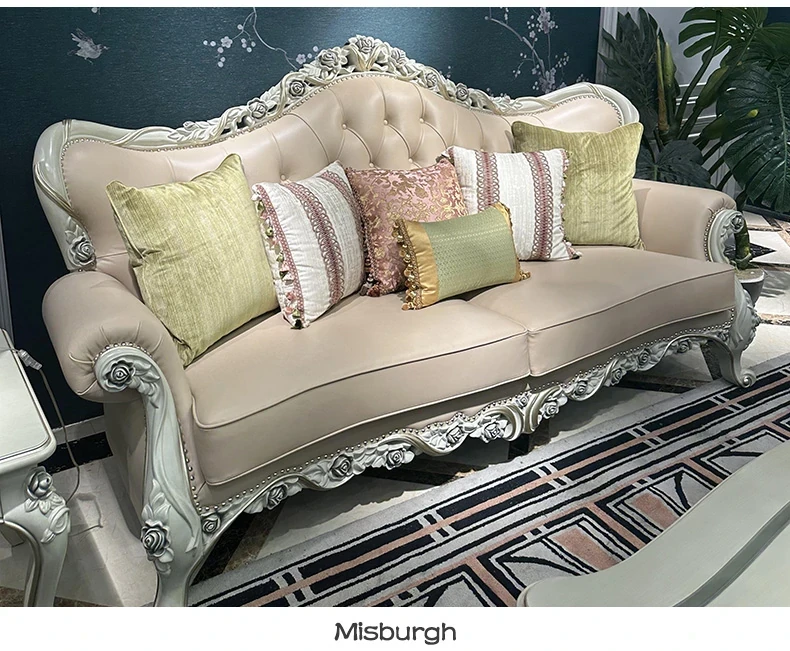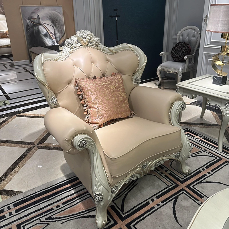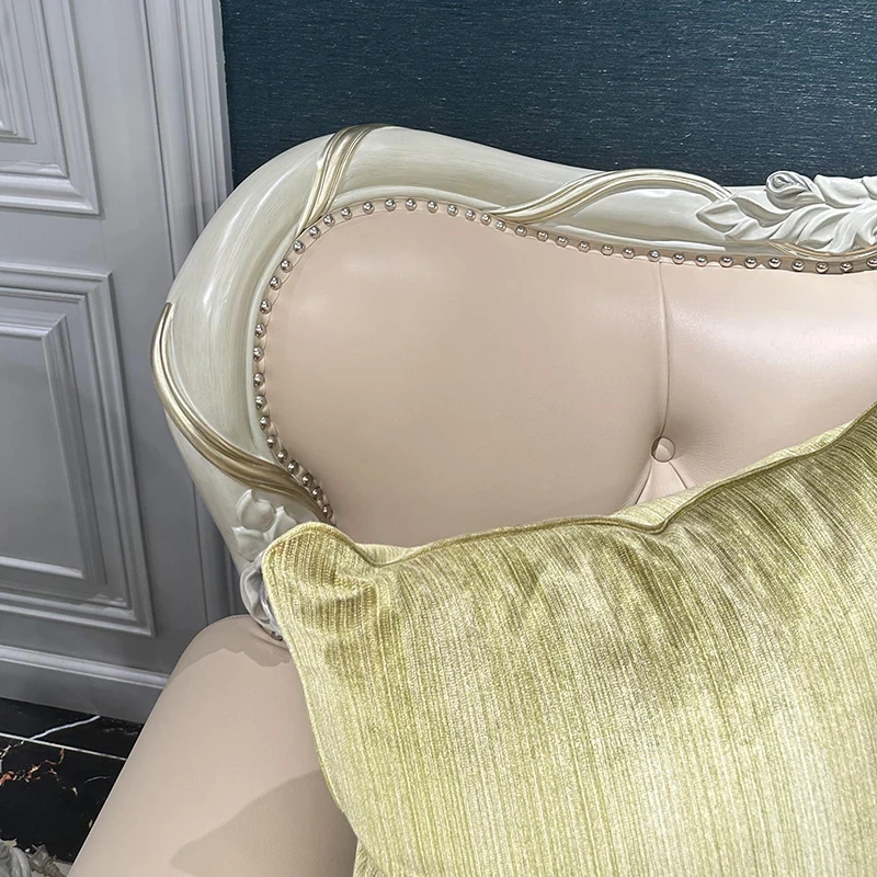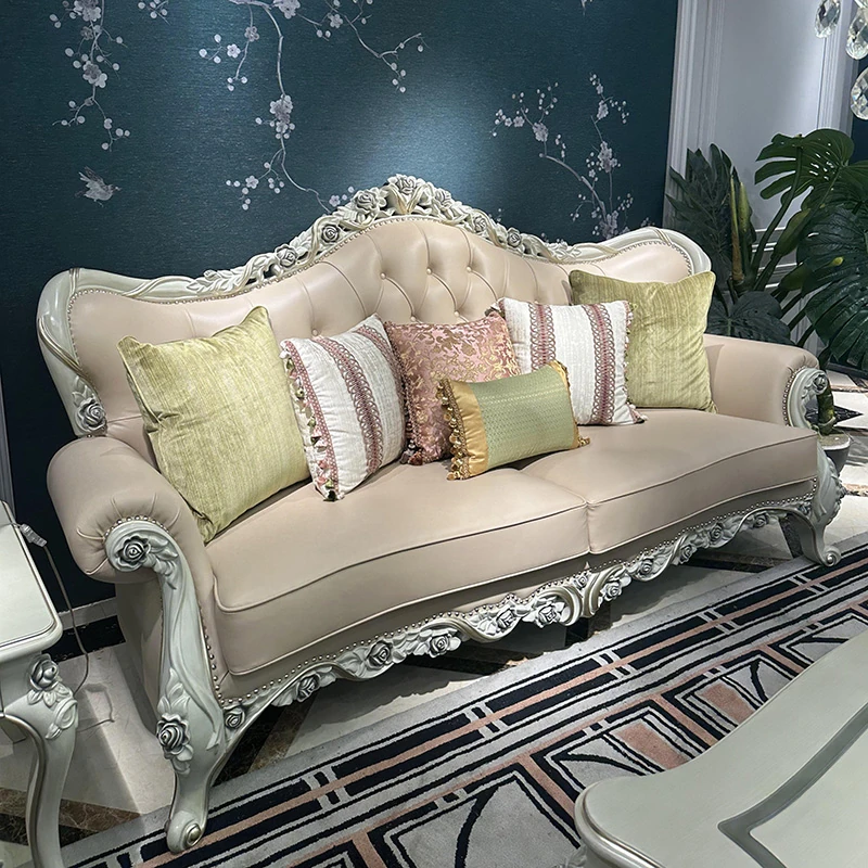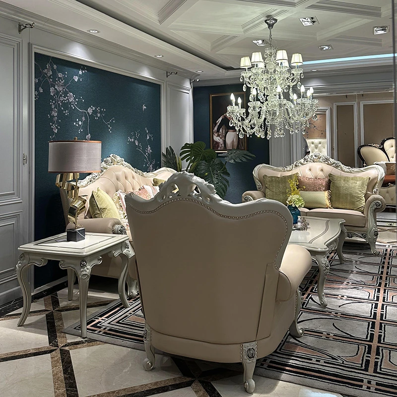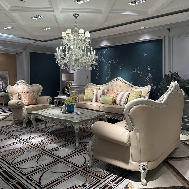 フレンチスタイルのソファ 欧風本革ミニマルラグジュアリー実木123組み合わせセット 大型別荘向け 3人掛け家具で、あなたの空間を上質に演出します!