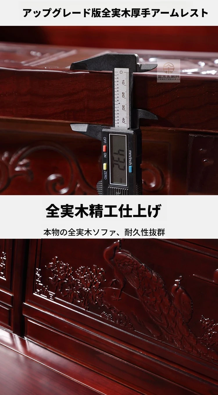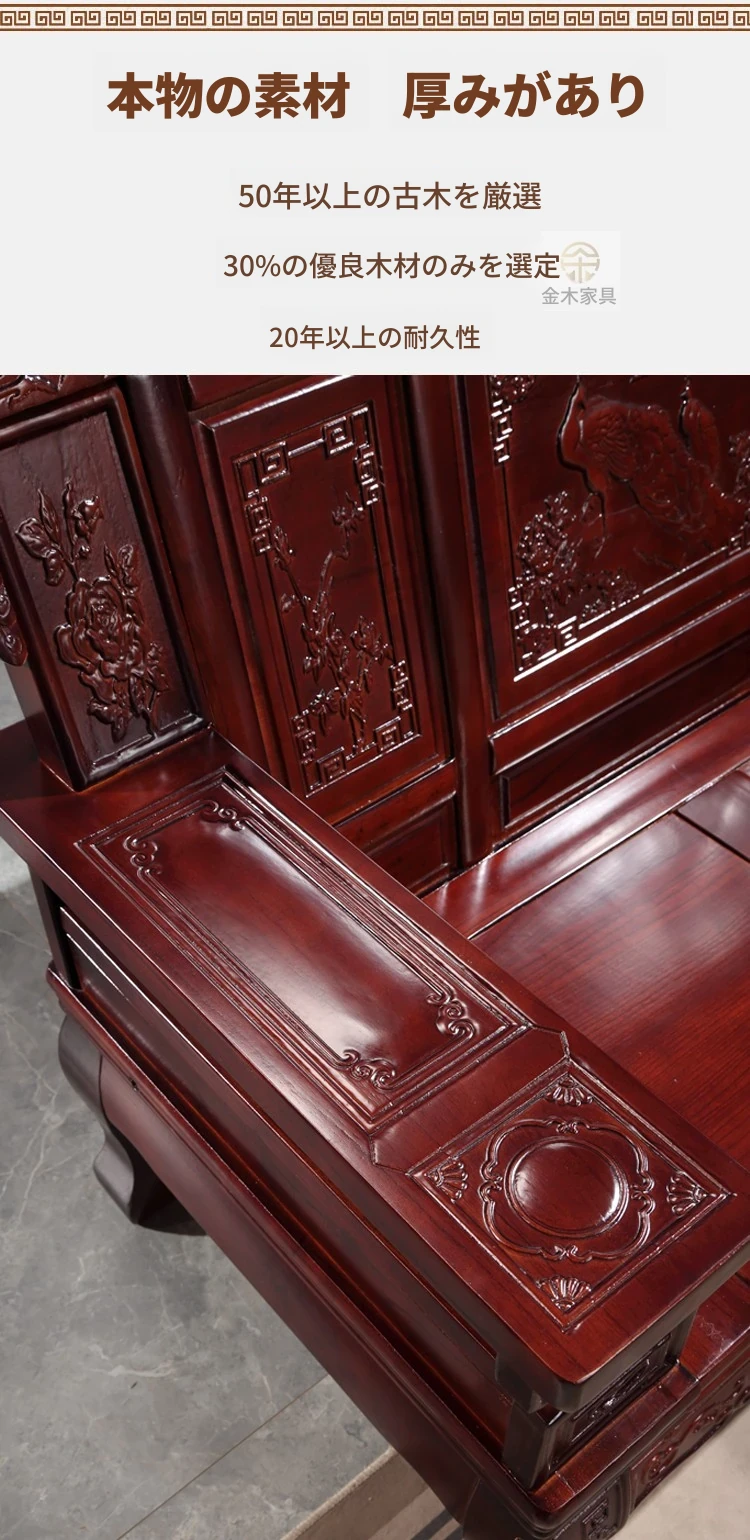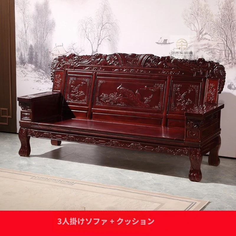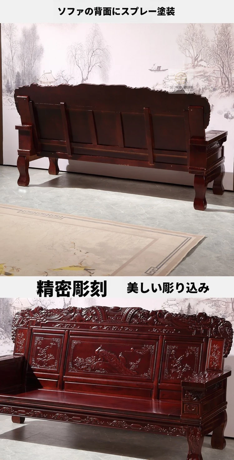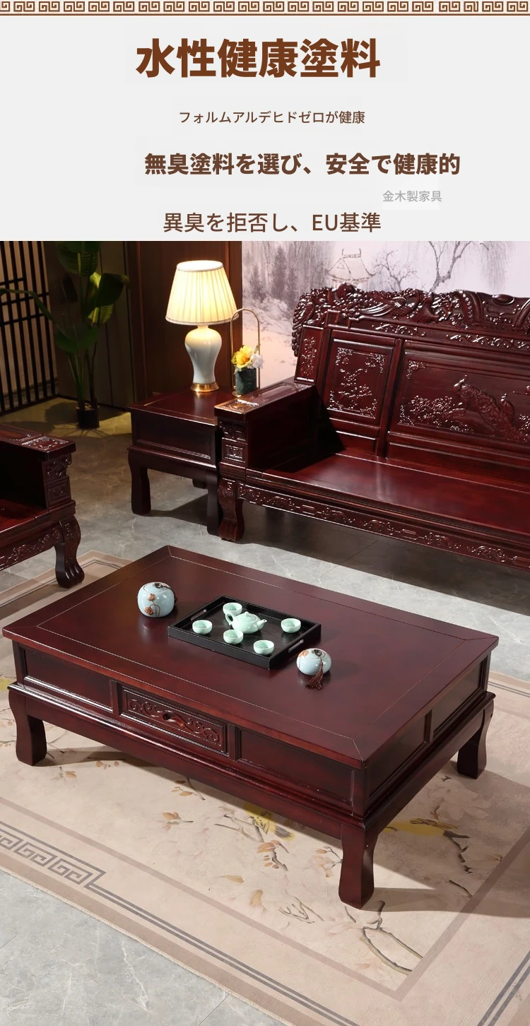 全実木製ソファ・テーブル・テレビキャビネットのフルセット!豪華な花梨風古典的デザインで、田舎の別荘にぴったりの彫刻入りソファ。あなたのリビングを優雅に演出します!