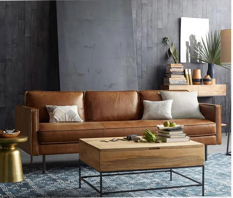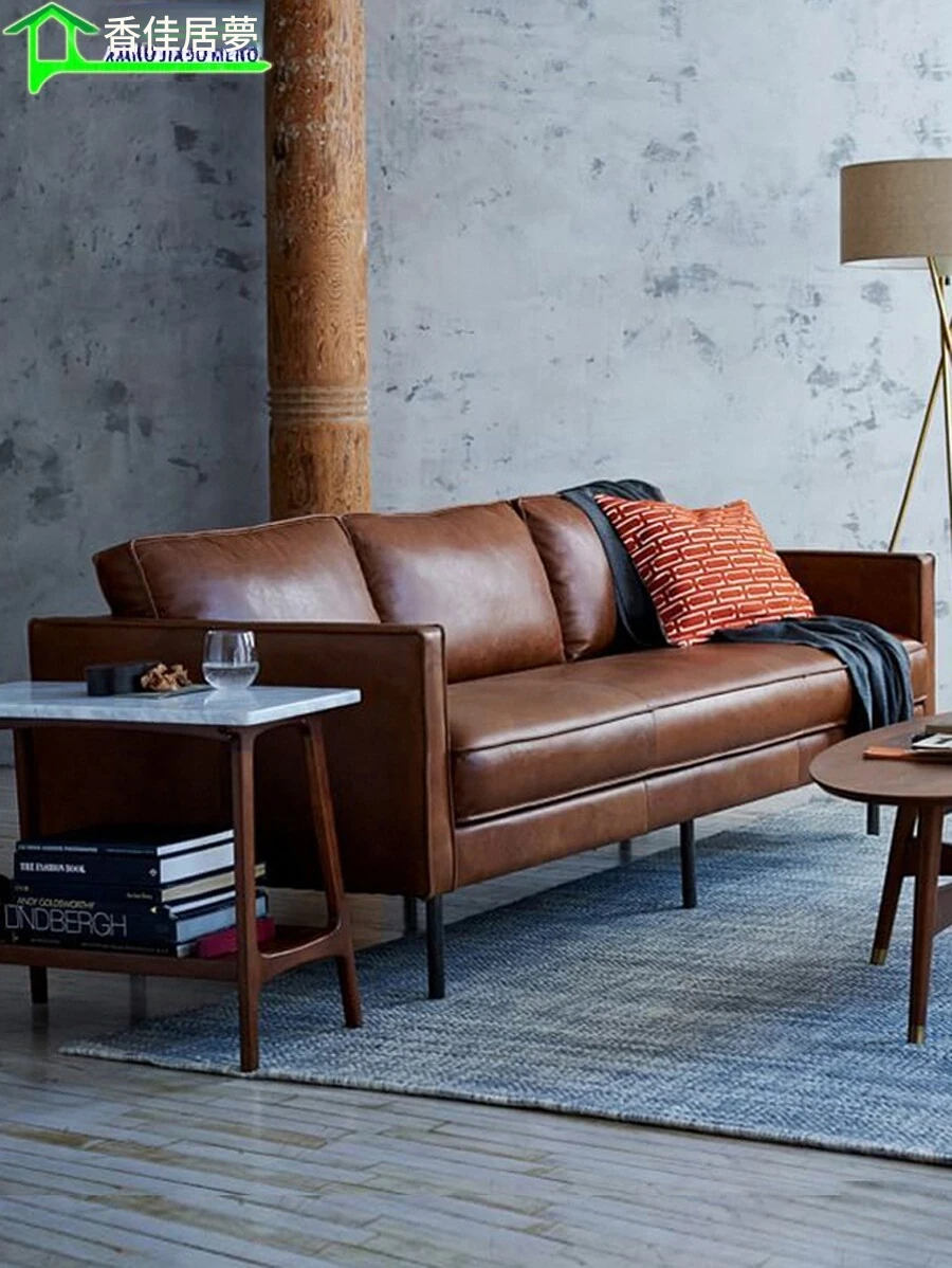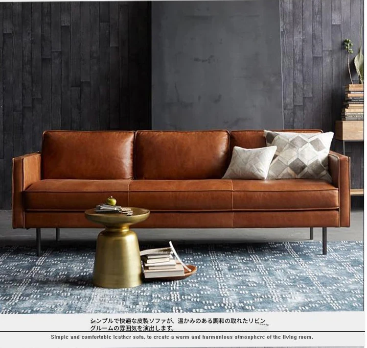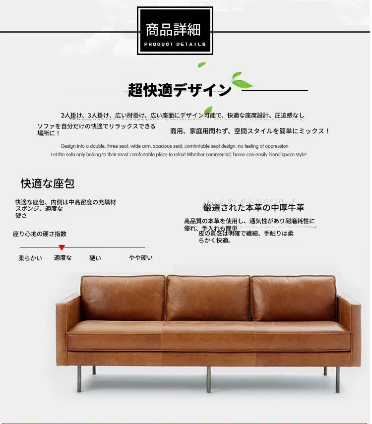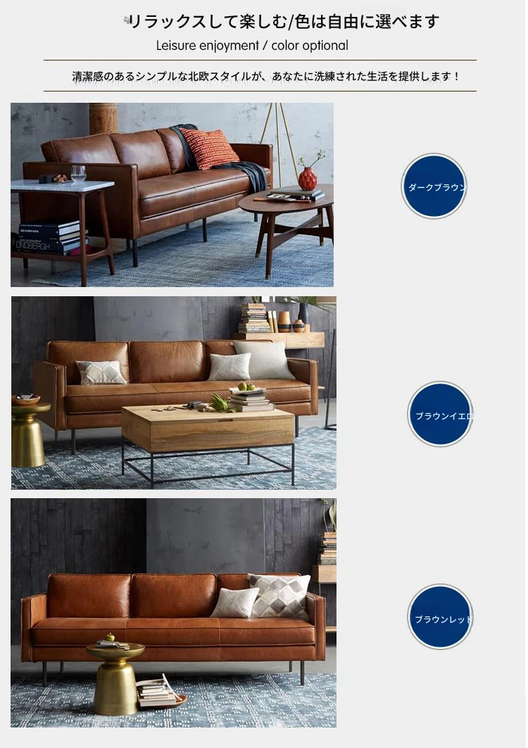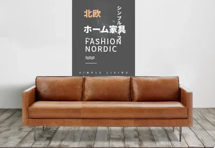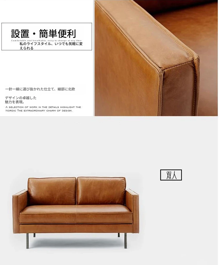 本革製・東莞スタイルソファー【北欧モダン】【シンプル&レトロ】小型リビングにぴったり!2人掛け・3人掛けオフィス用直排ソファで、快適な空間を演出します。