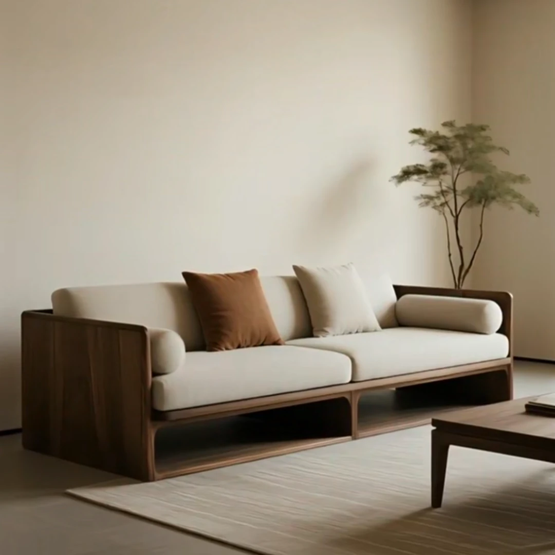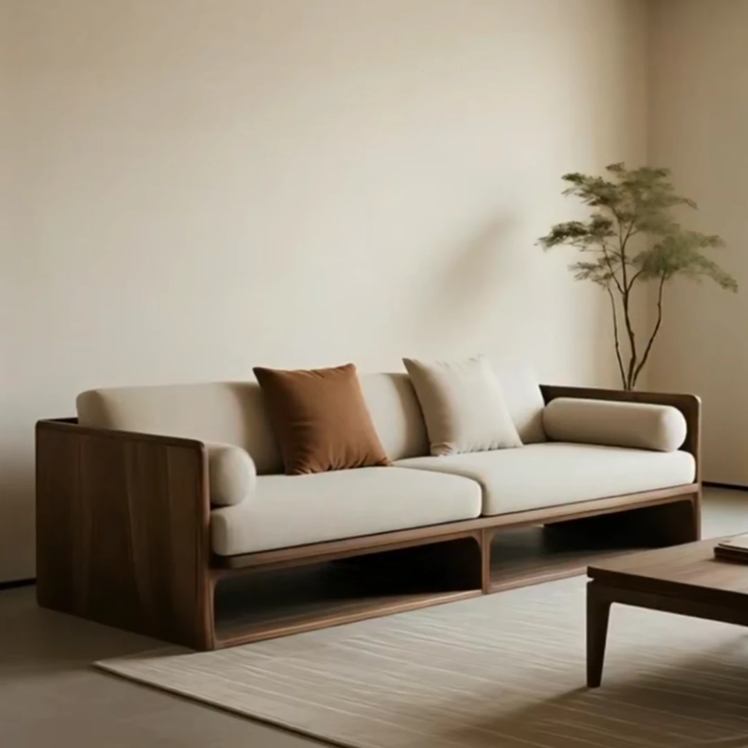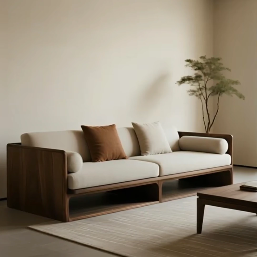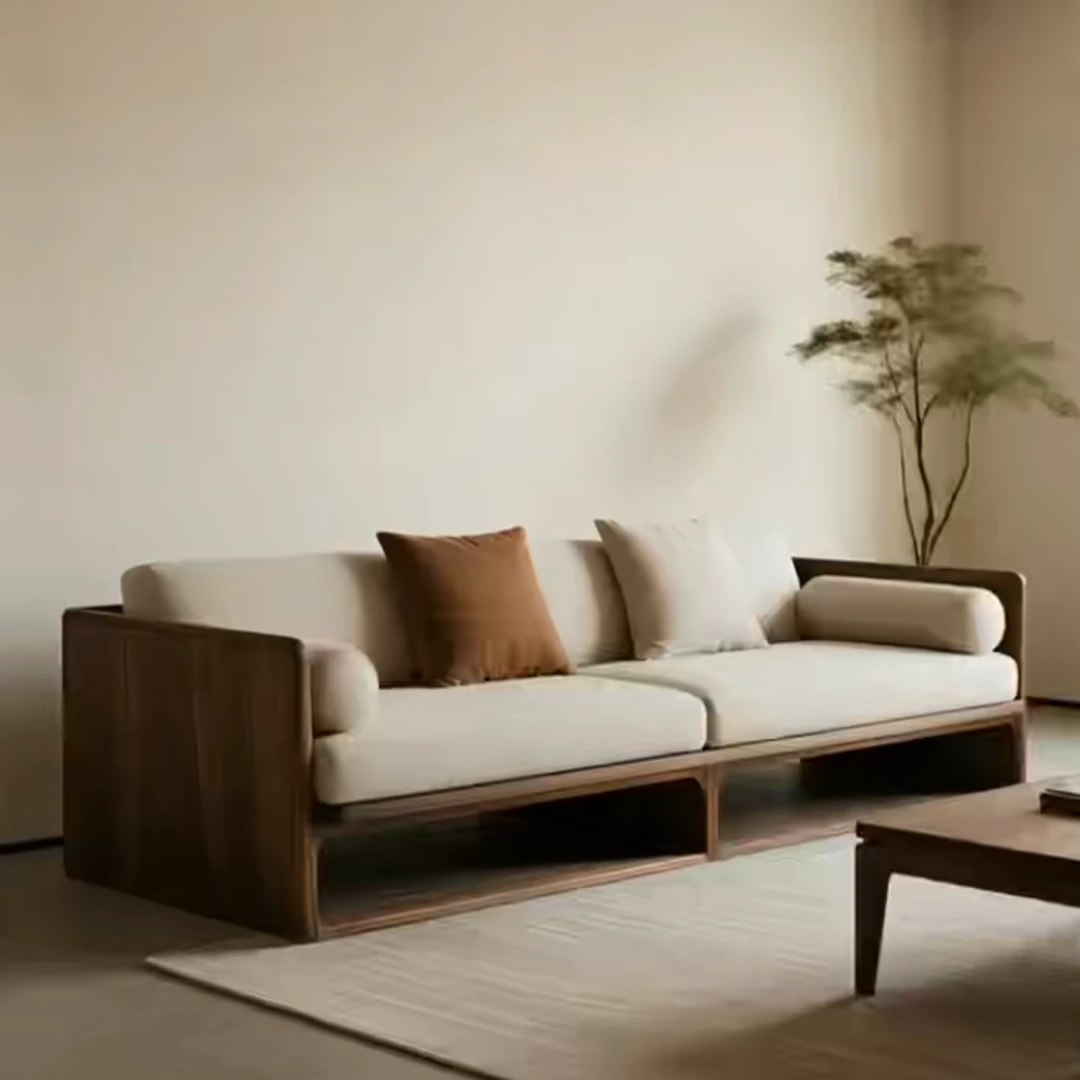 北米産ブラックウォールナット無垢材ソファ - モダンなリビングにぴったりな高級禅スタイル家具。ホテルや別荘、大小様々な物件に最適な洗練されたデザイン!