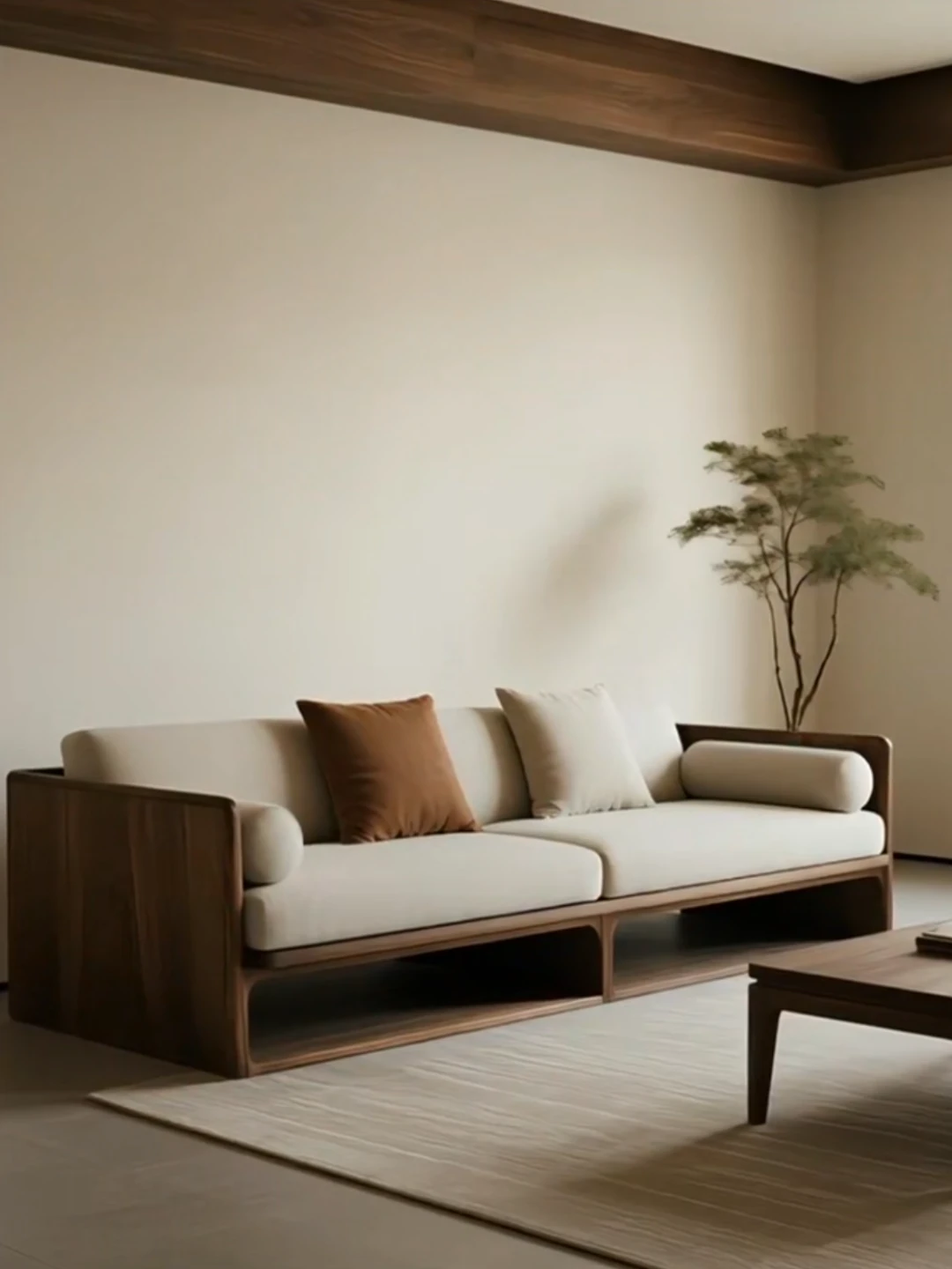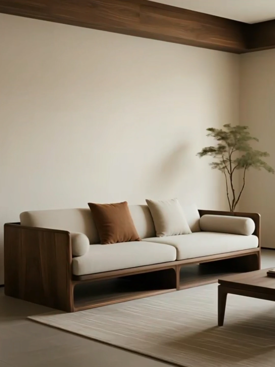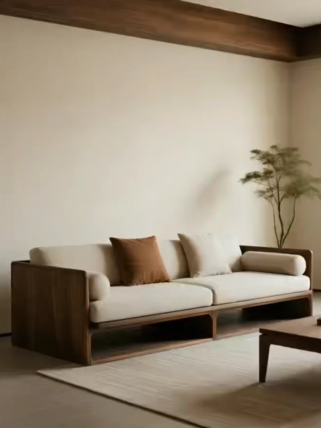 北米産ブラックウォールナット無垢材ソファ - モダンなリビングにぴったりな高級禅スタイル家具。ホテルや別荘、大小様々な物件に最適な洗練されたデザイン!