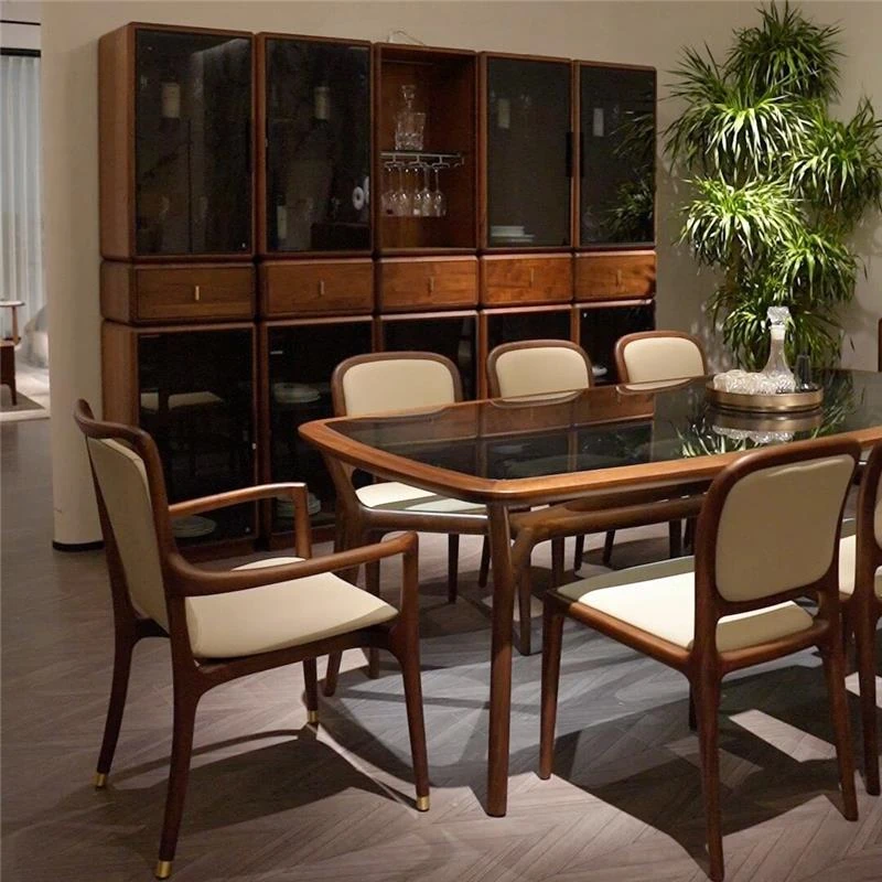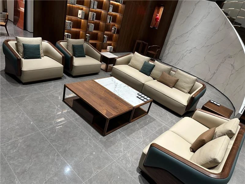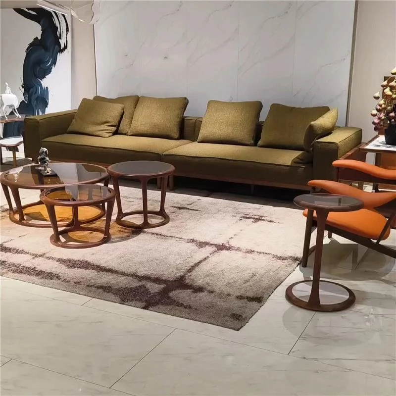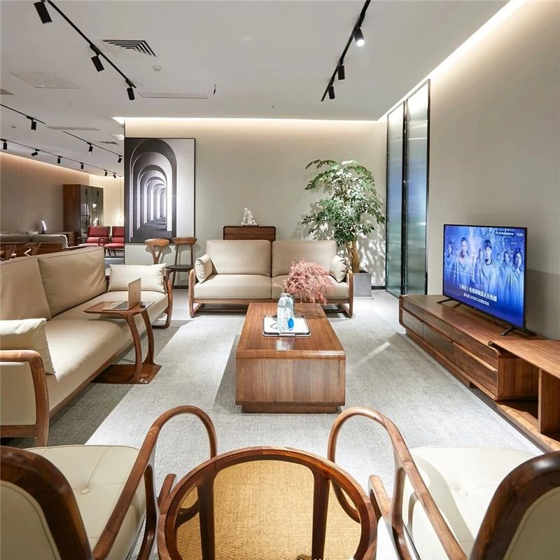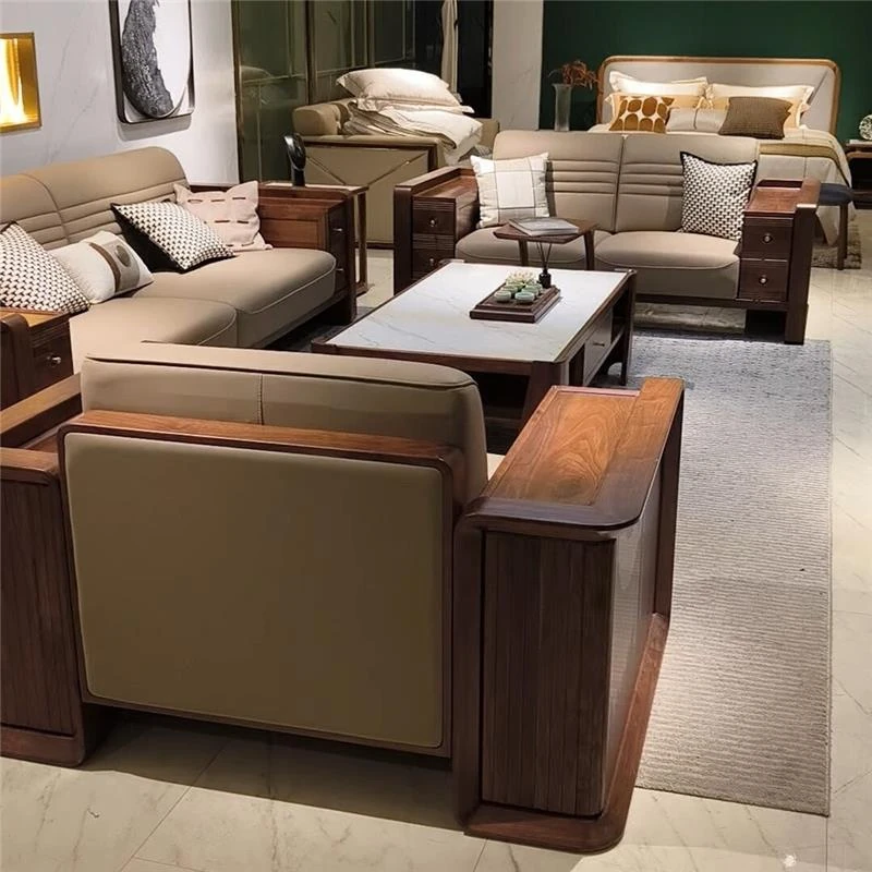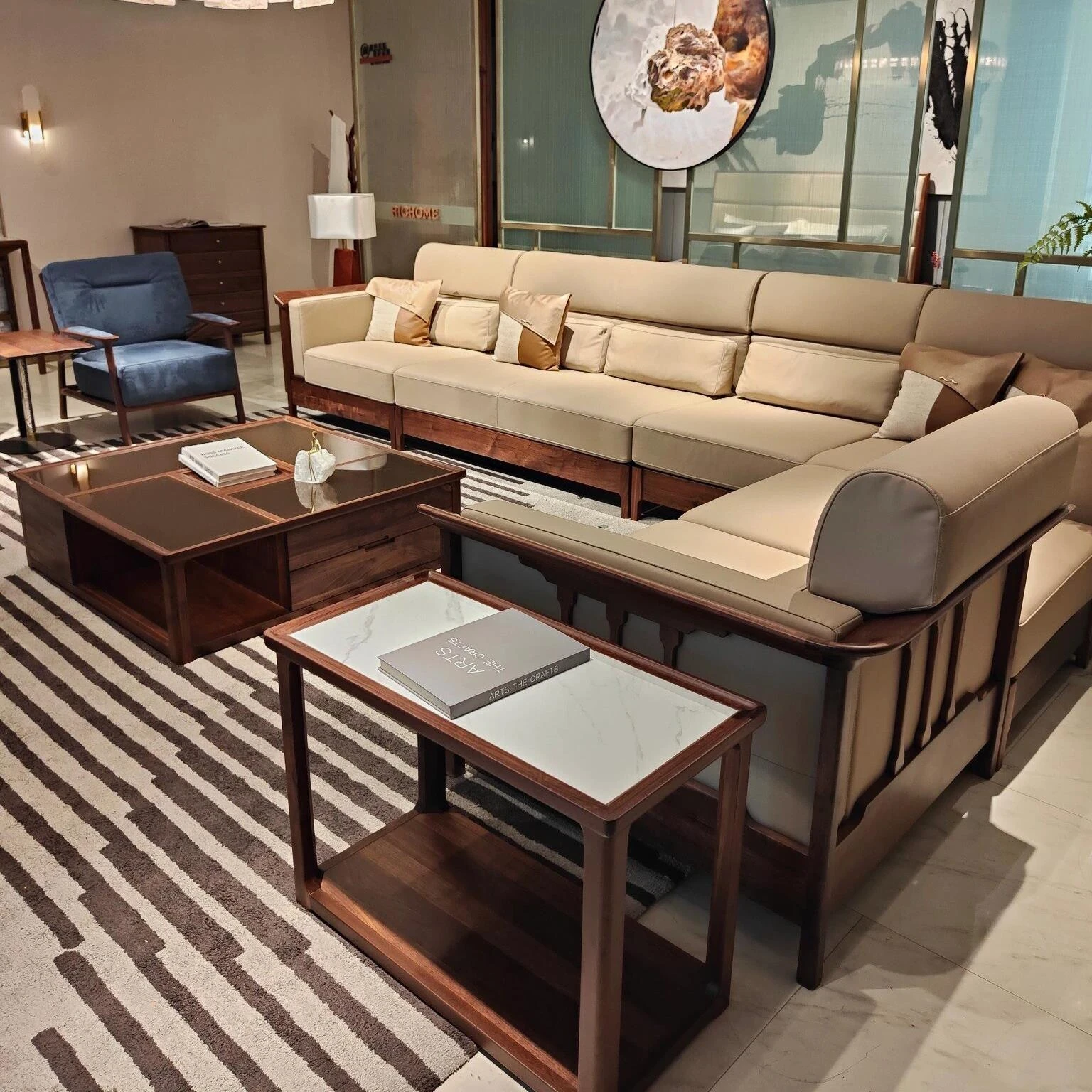 北米産ブラックウォルナット無垢材使用!新中式スタイルの高級リビングソファセット、広々としたヴィラや大きな部屋に最適な現代的で洗練されたデザイン。快適さと美しさを兼ね備えた一品をお届けします!