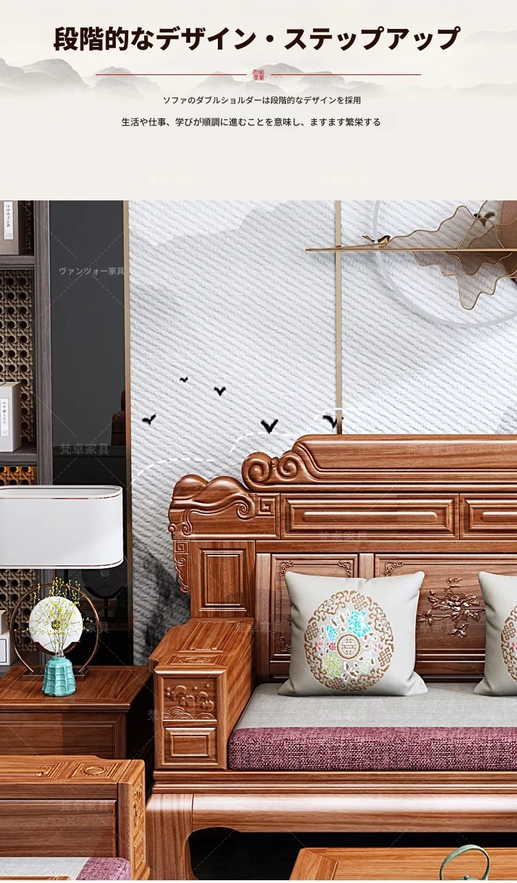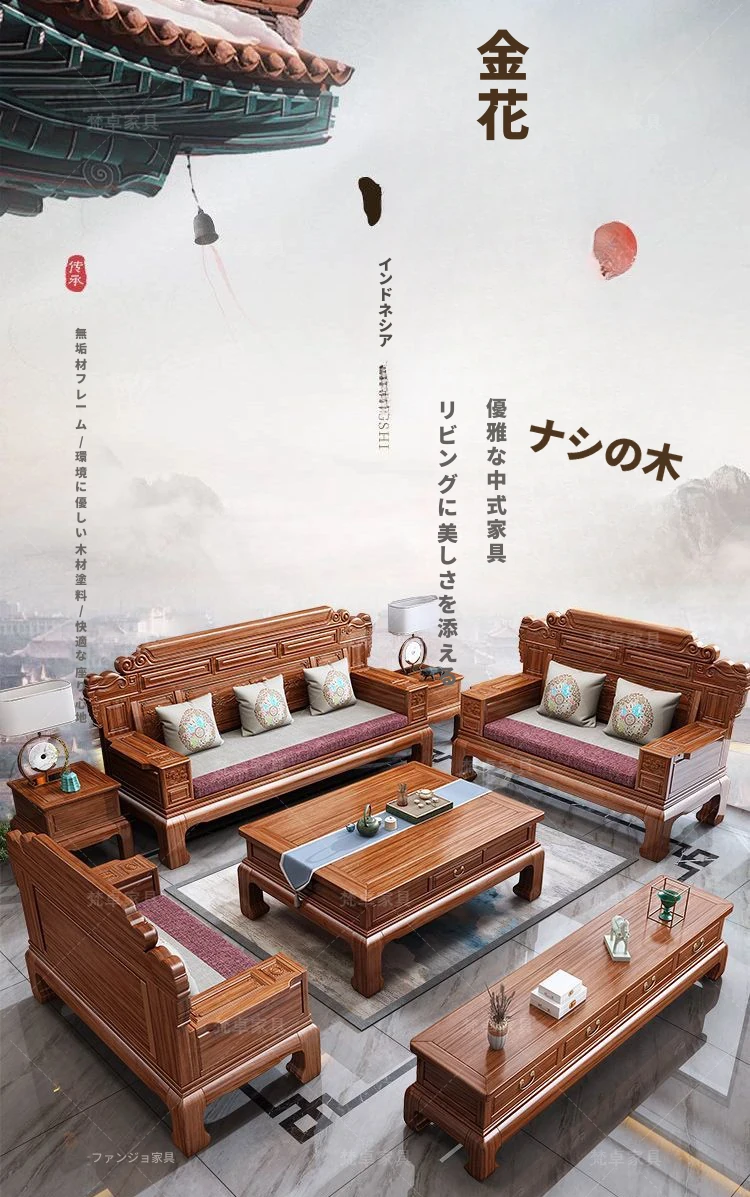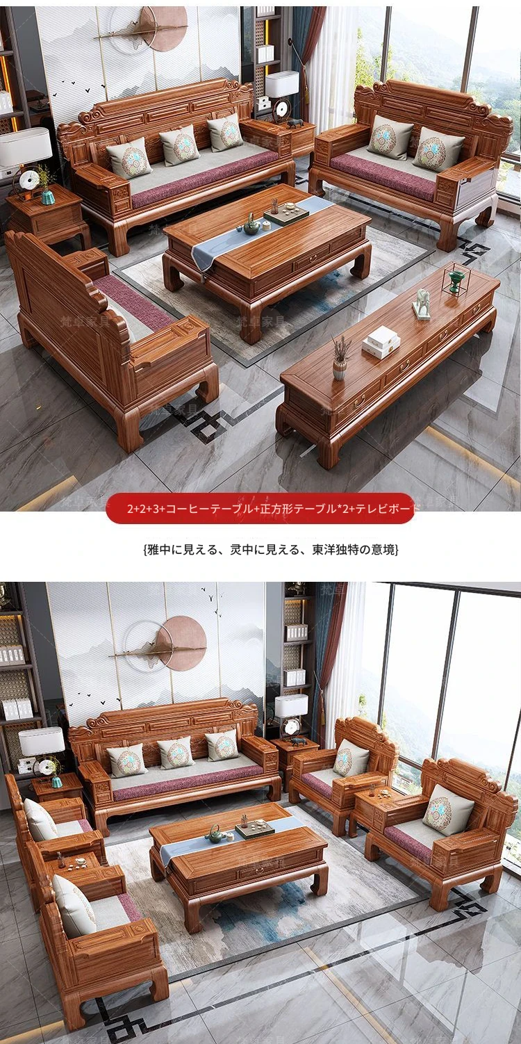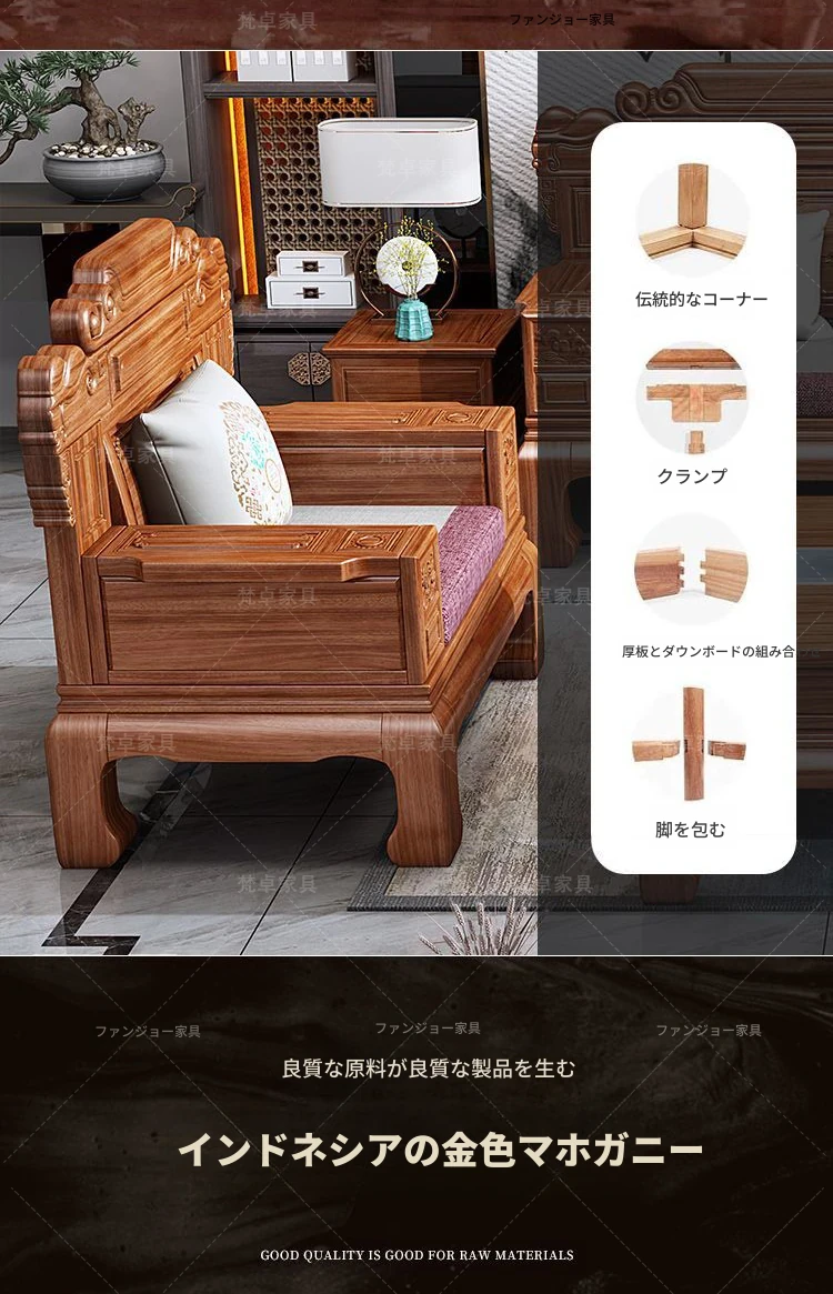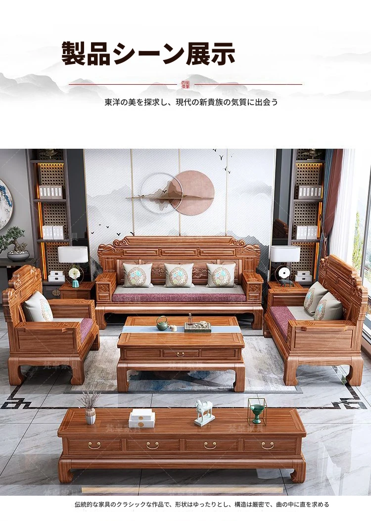 明清風格の榫卯技術を駆使した高級パイン材製中式ソファセット - 本格的な花梨木と紅木を使用した贅沢なリビング家具で、エレガントな空間を演出します!