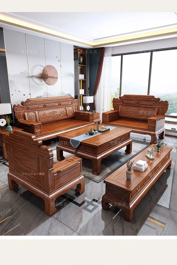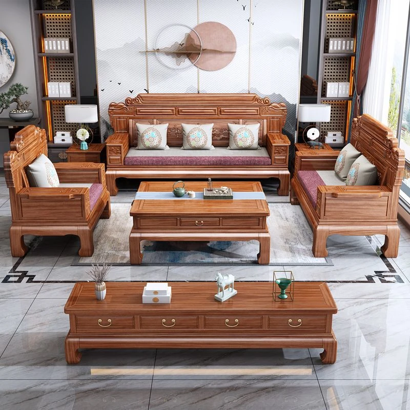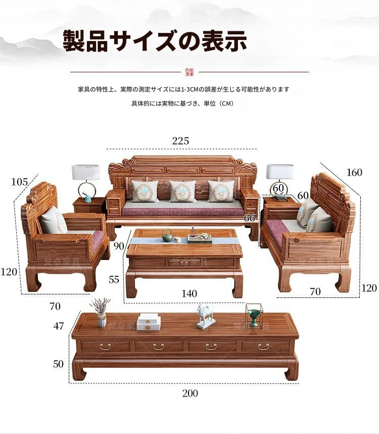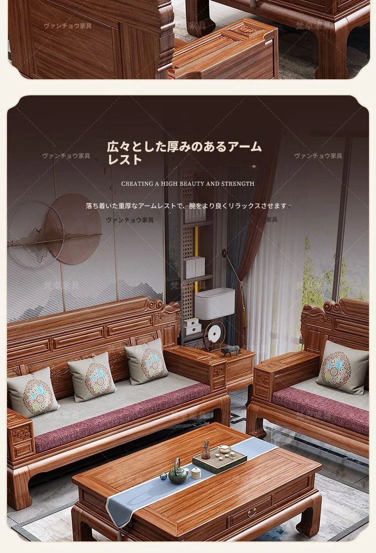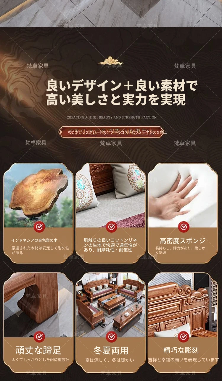 明清風格の榫卯技術を駆使した高級パイン材製中式ソファセット - 本格的な花梨木と紅木を使用した贅沢なリビング家具で、エレガントな空間を演出します!