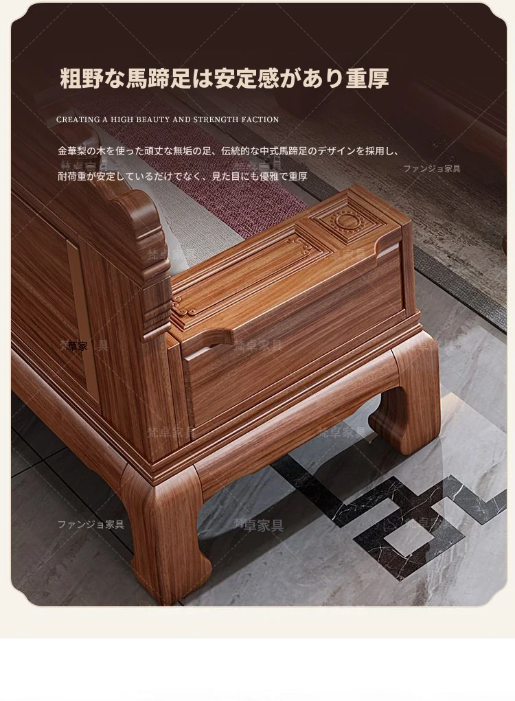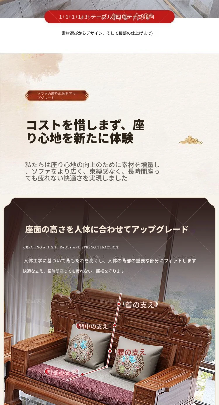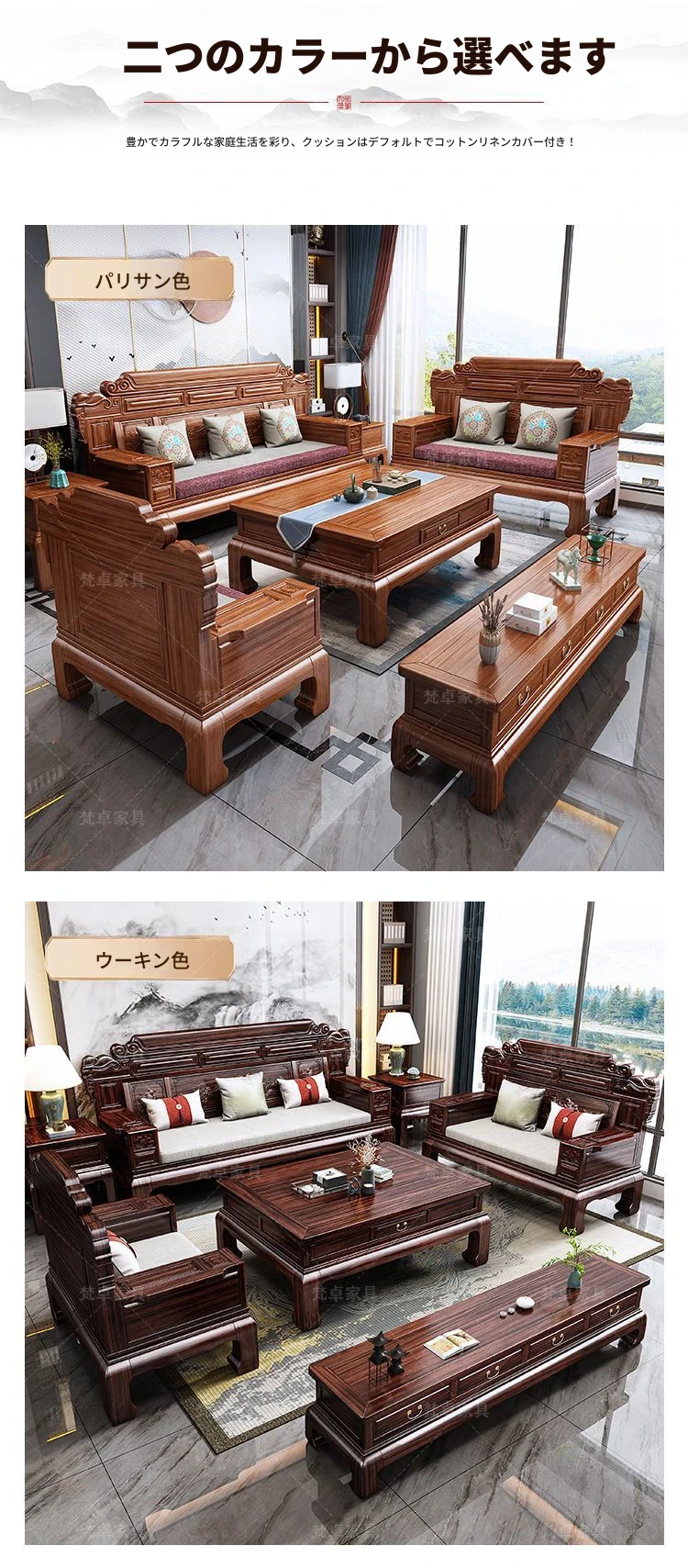 【金花梨木】3人掛けソファ+ロングテーブル❤️クッションと座布団 玻璃