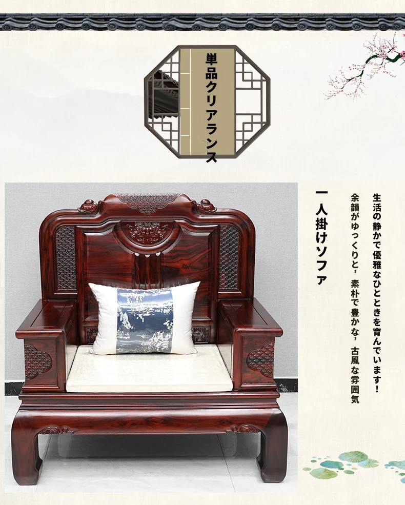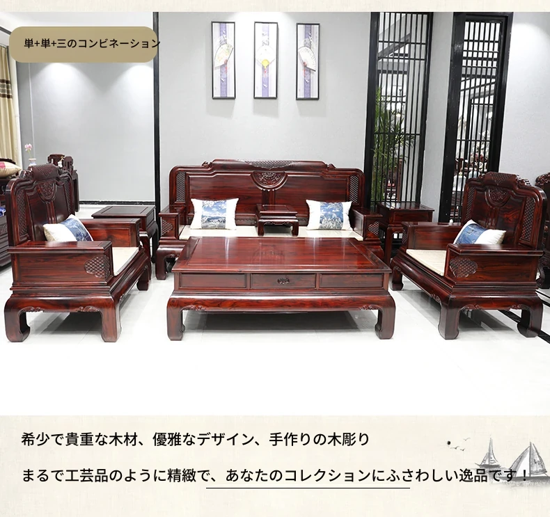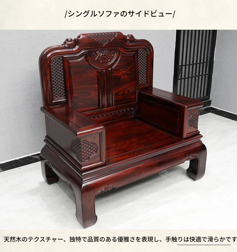 インドネシア産ブラックウッドの高級紅木家具、金玉満堂ソファセット。国産基準の広葉樹の黄檀を使用した贅沢なリビングソファコンビネーションで、優雅な空間を演出します。お部屋を華やかに彩る一品です!