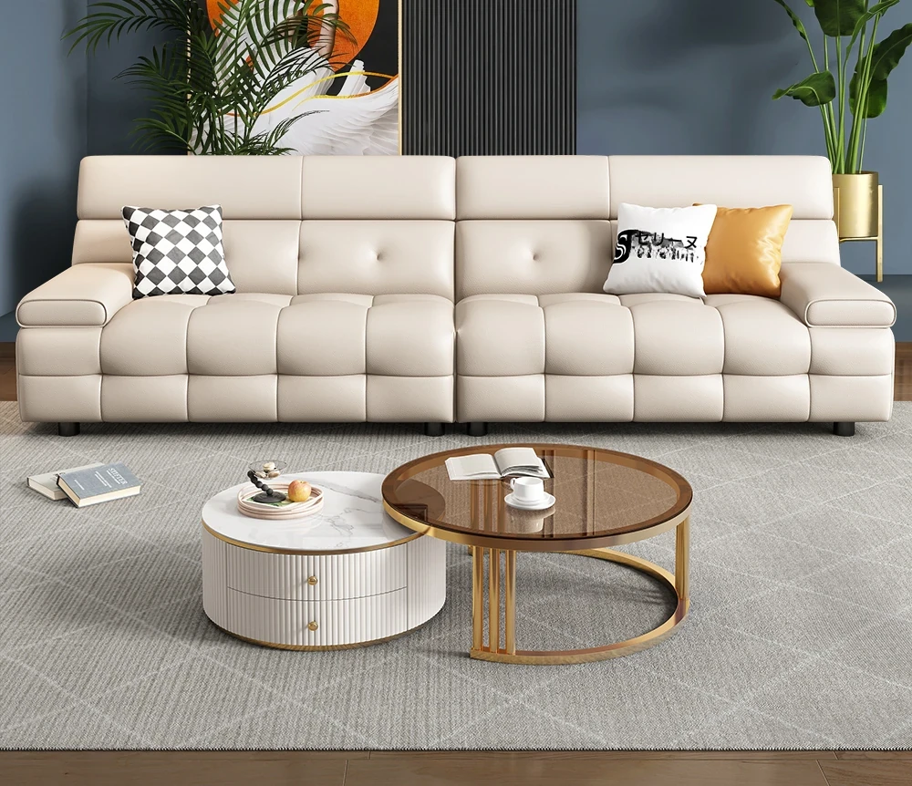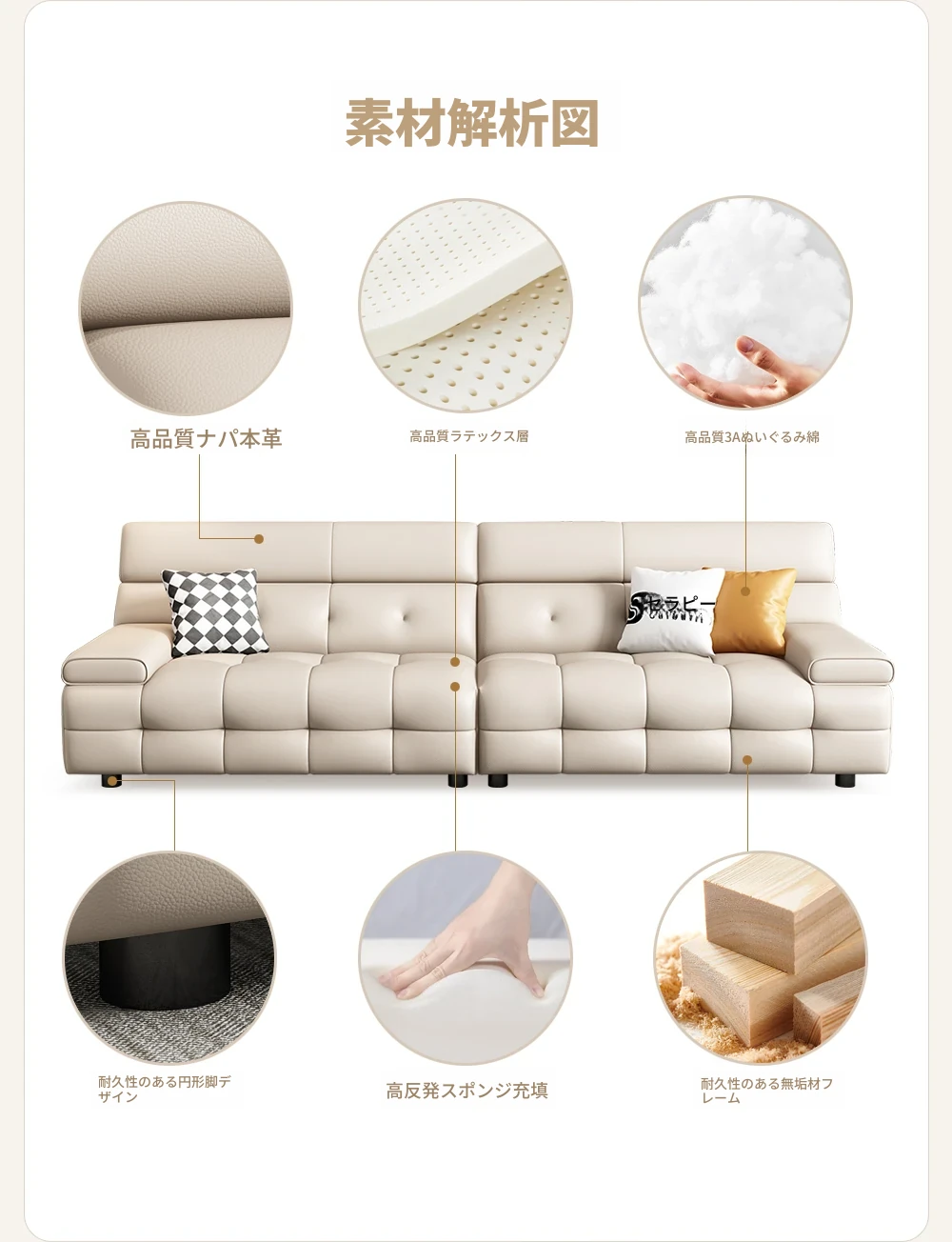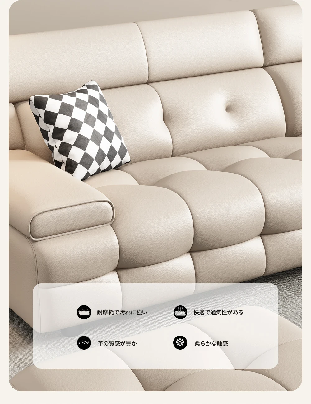 イタリアンミニマリズム本革ローレンスソファ - モダンでシンプルなデザイン、小さなリビングルームにもぴったりのコンパクトな組み合わせソファ。快適さとスタイルを兼ね備えた、あなたの家に最適な選択!