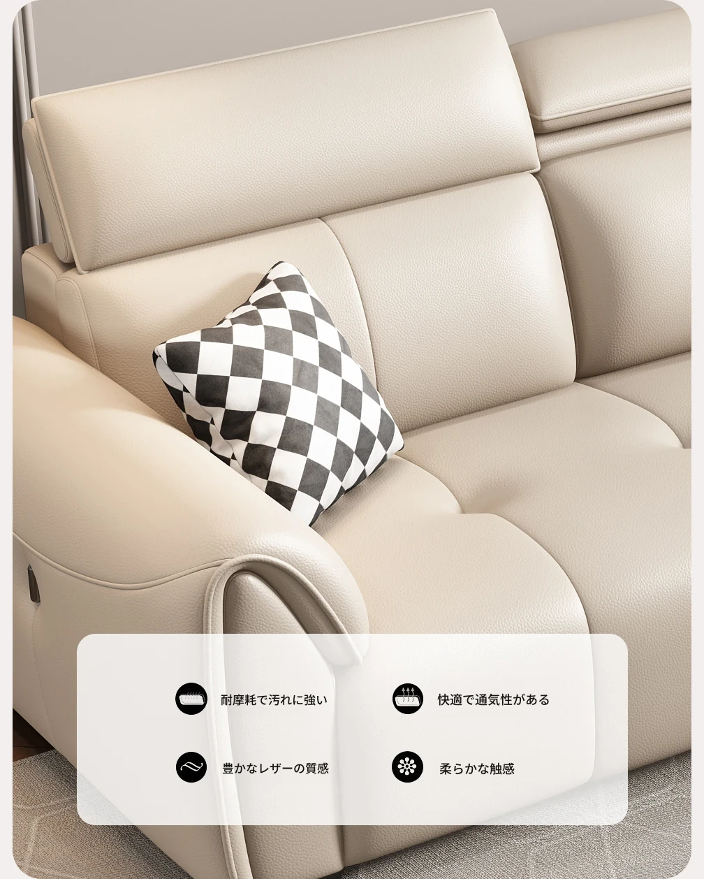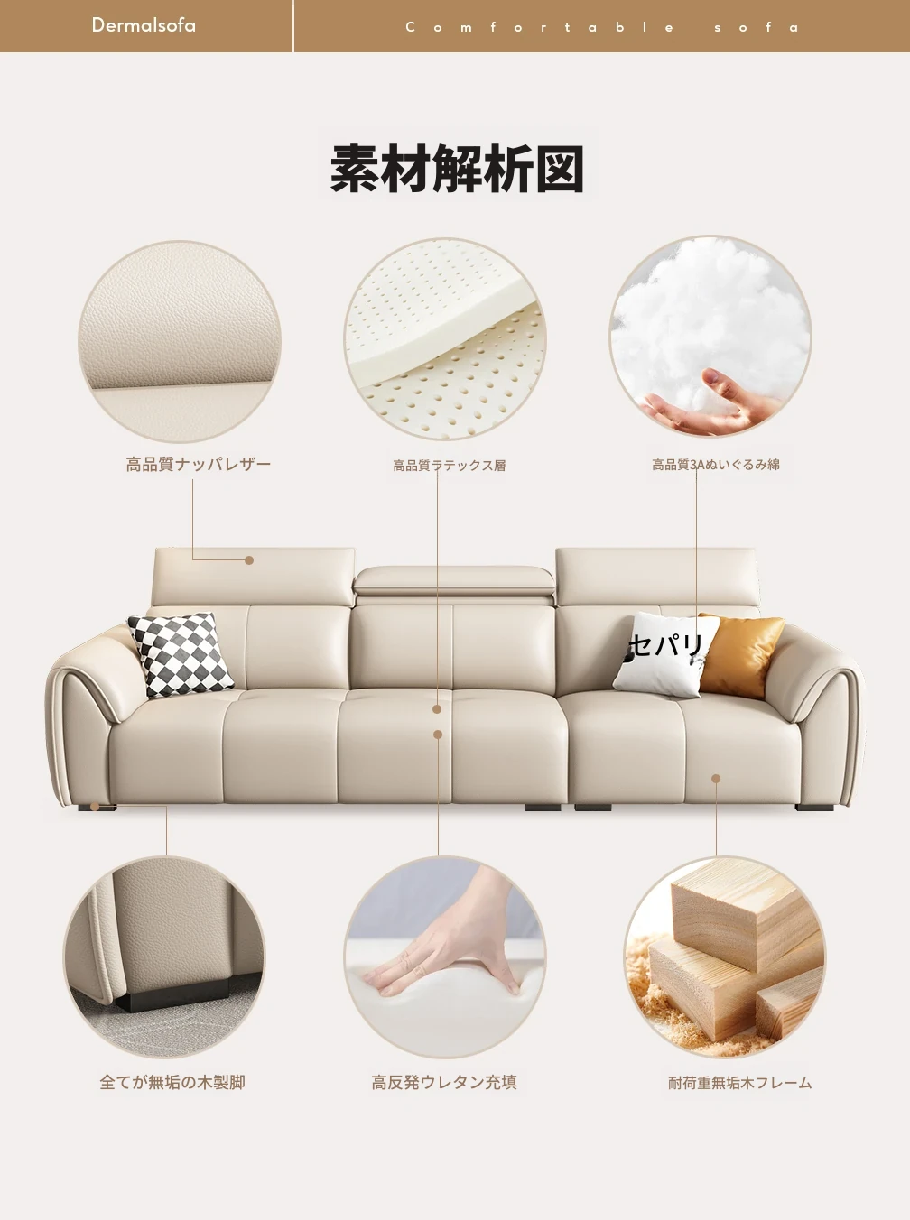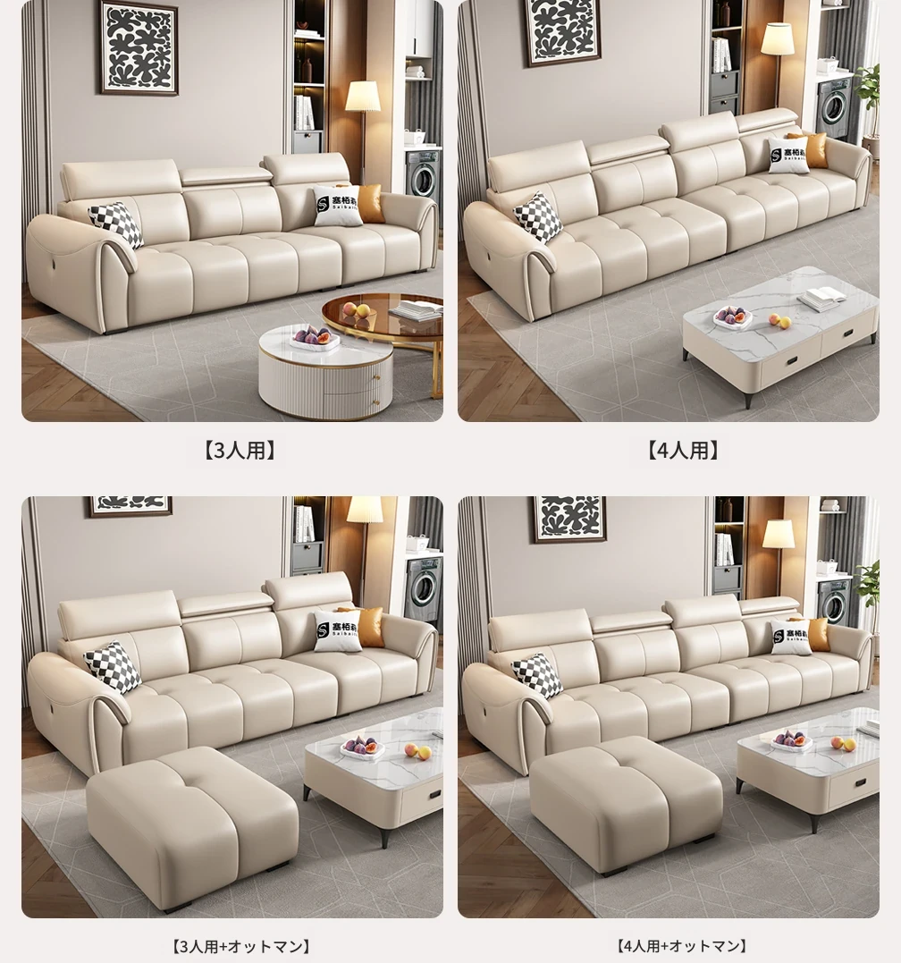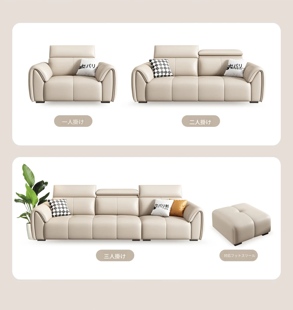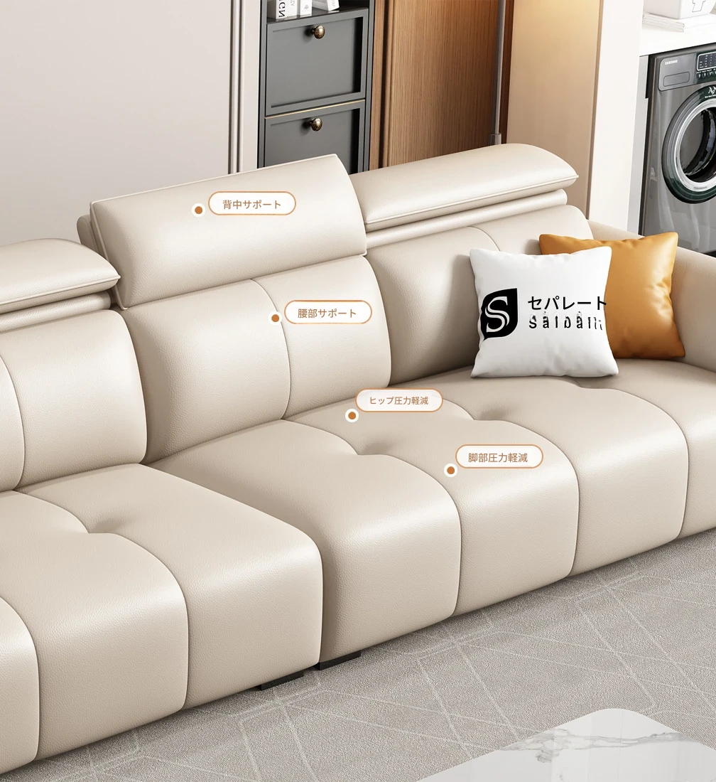 イタリアンミニマルデザインの本革ソファ|小型住居に最適な現代的シンプルスタイル|最高級牛革使用の3人掛けリビングコンビネーションソファで、洗練された空間を演出!