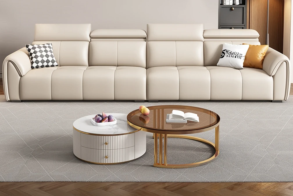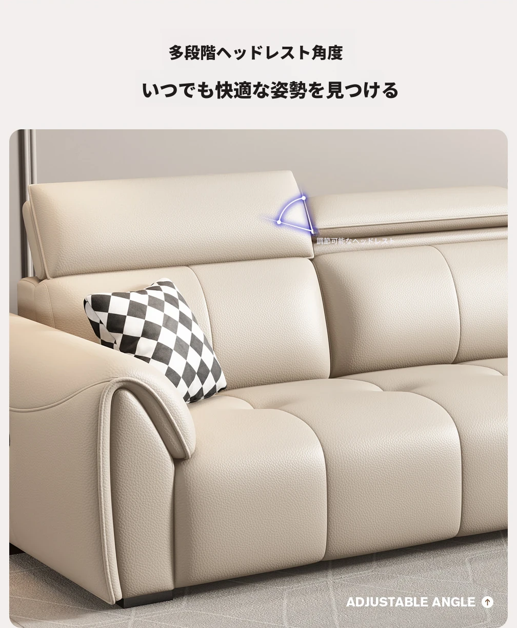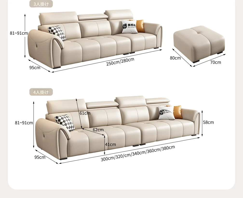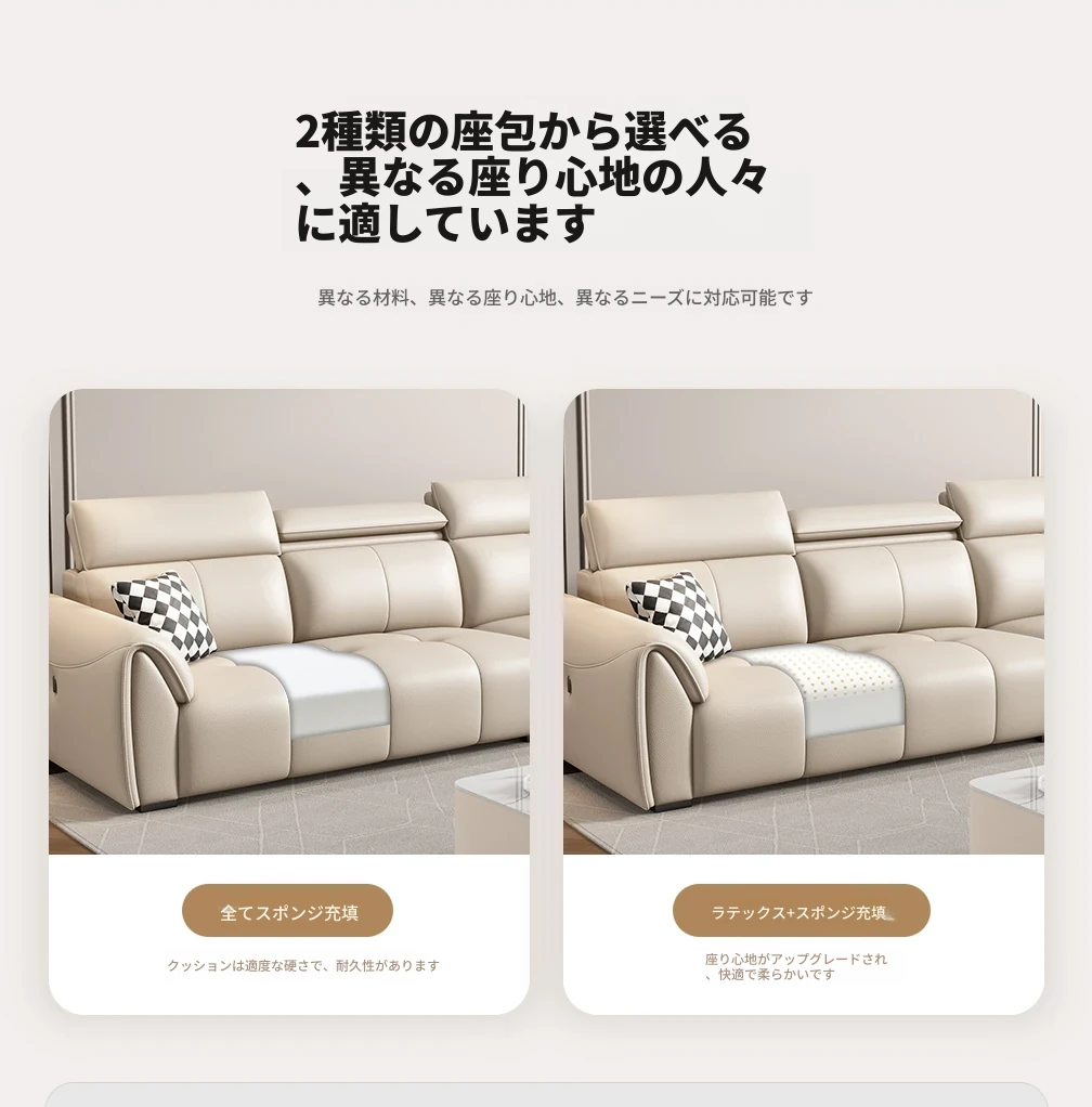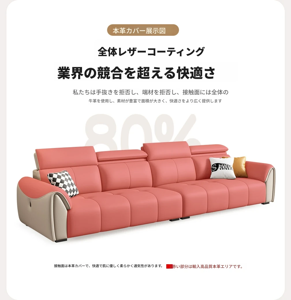イタリアンミニマルデザインの本革ソファ|小型住居に最適な現代的シンプルスタイル|最高級牛革使用の3人掛けリビングコンビネーションソファで、洗練された空間を演出!