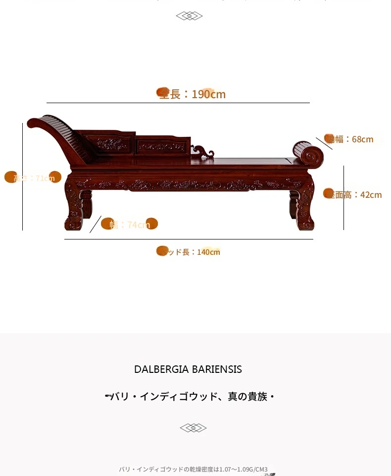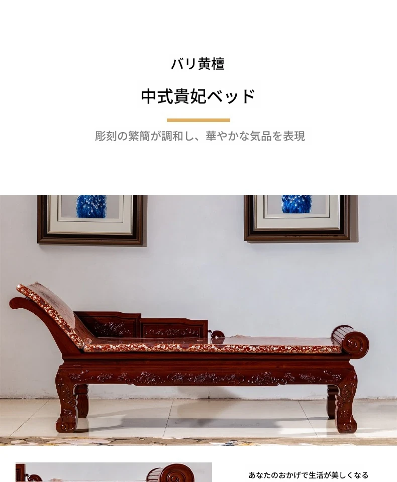 老挝紅酸枝の貴妃椅子 - 高級感溢れる中華風の実木製リラックスソファ。美しいデザインで、優雅な昼寝タイムを楽しめます。巴里黄檀の素材が魅力的な、心地よい安らぎを提供する一品です。