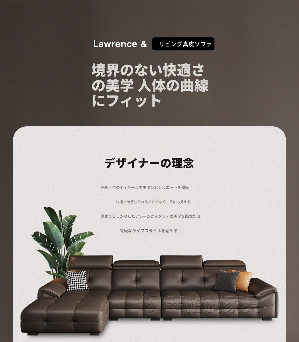 ローレンス本革ソファ イタリアンミニマリズム 2025年モデル 大型リビングに最適なラグジュアリー現代的な簡素さ 贅沢なカウチソファ