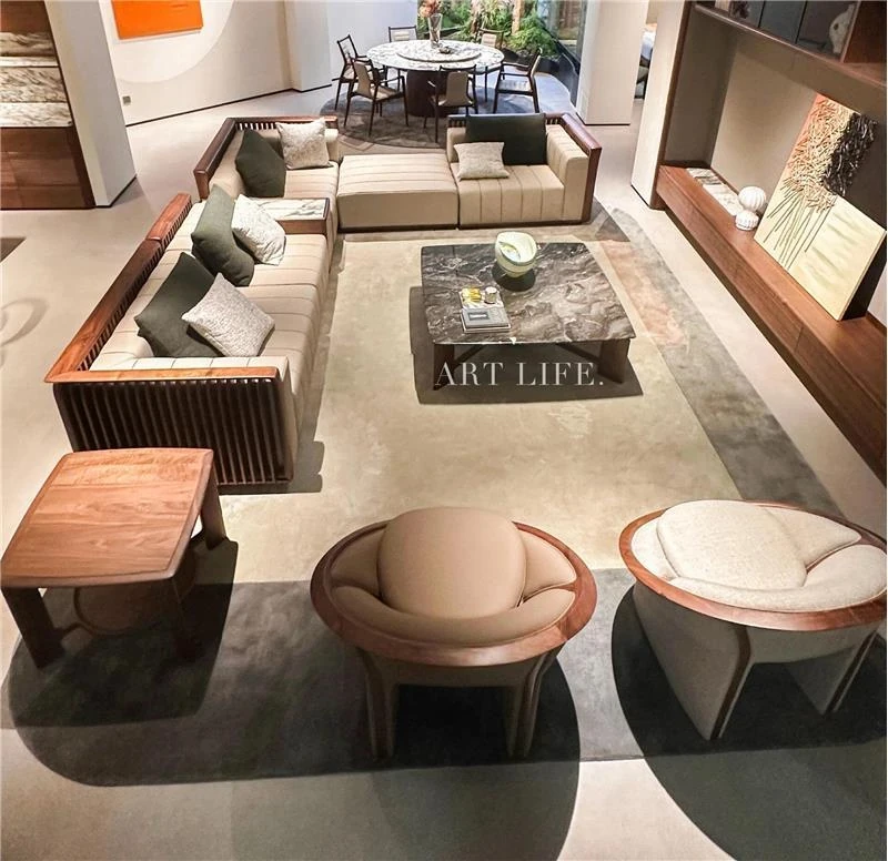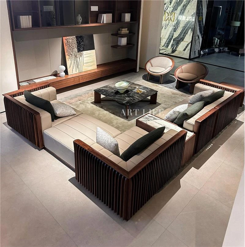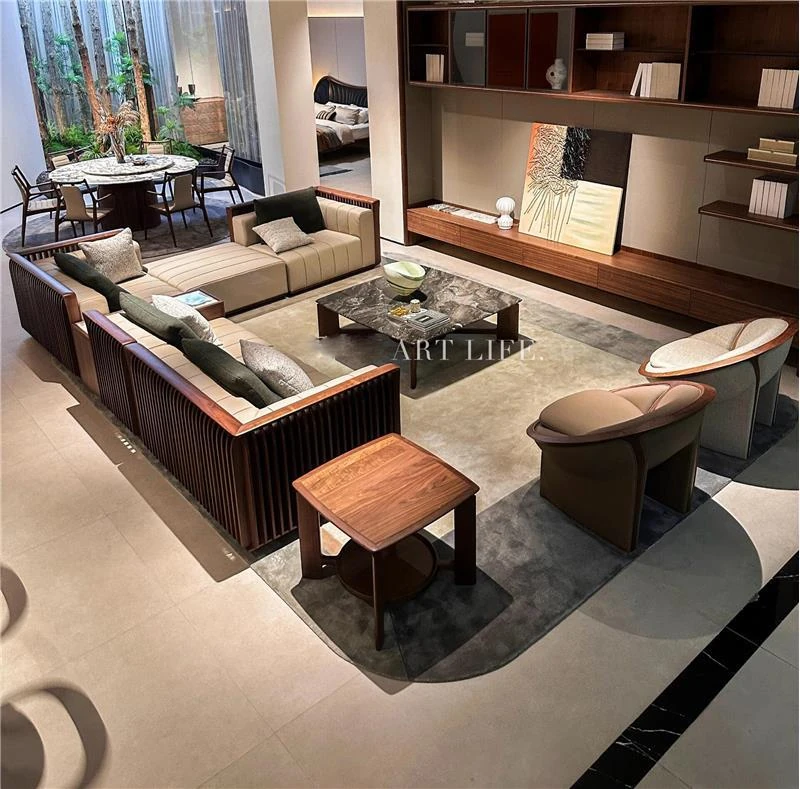 ラグジュアリーなブラックウォールナット製のヴィラクラブハウス、高級感あふれる広々としたリビングルームやベッドルームにぴったりのモダンなソファ。贅沢な空間を演出する一品です。