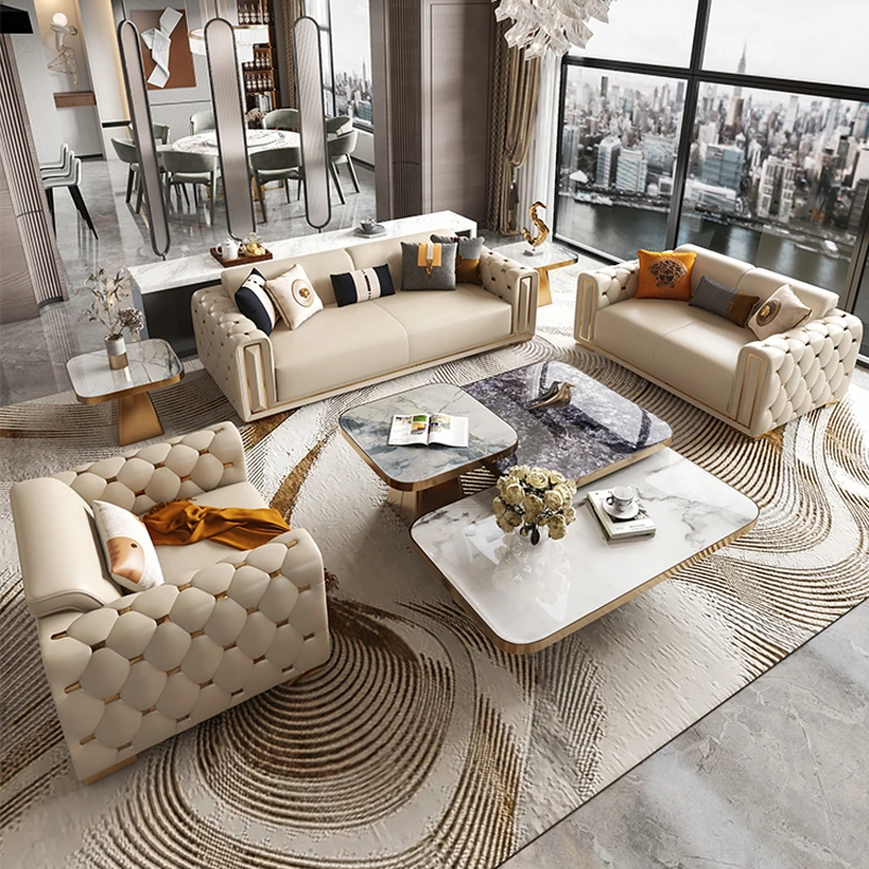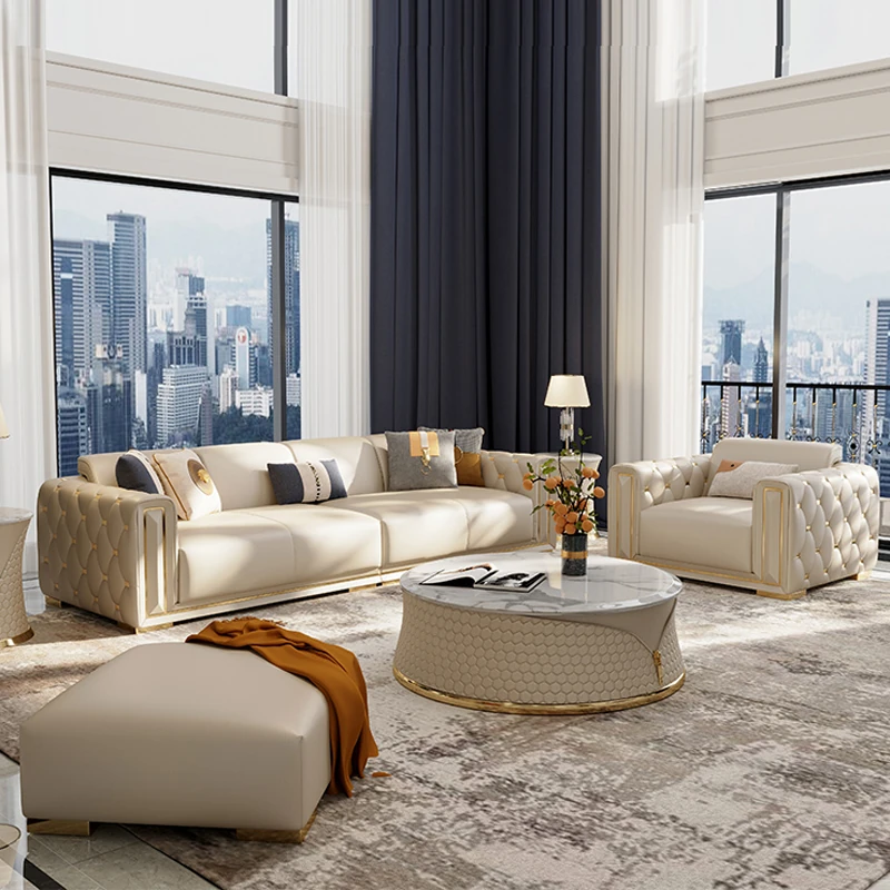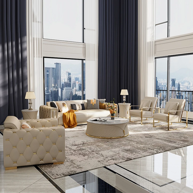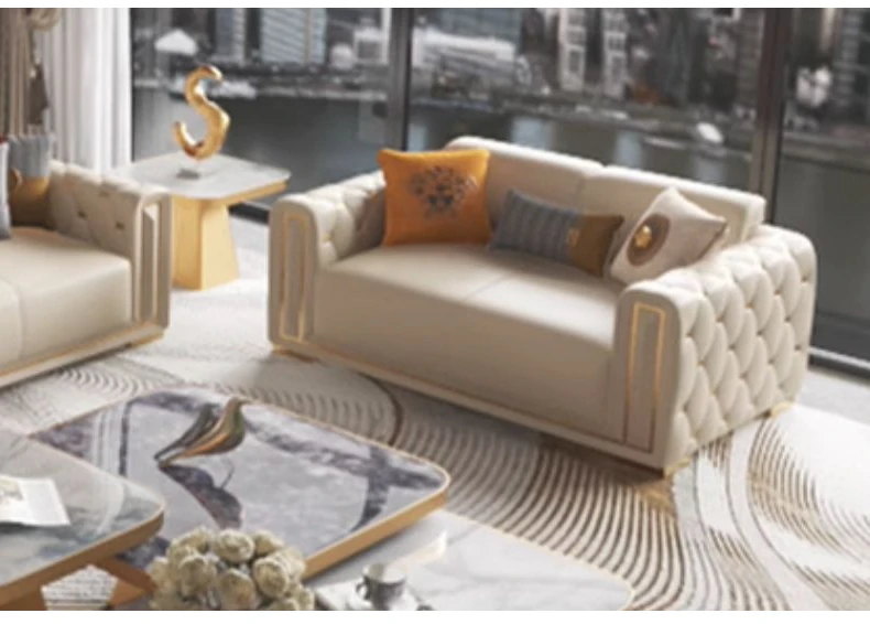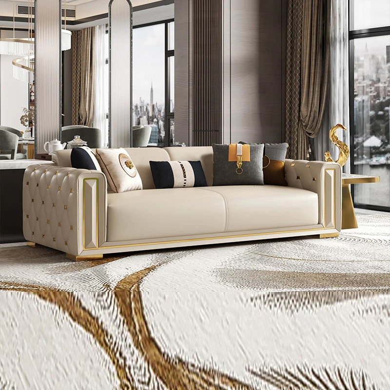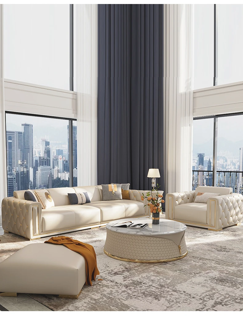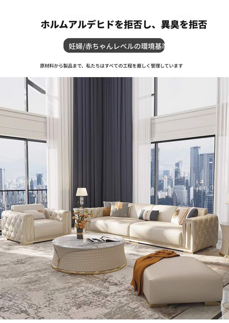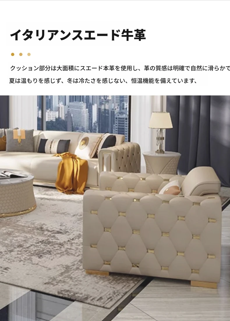 軽奢スタイルのスエード本革ソファ 123コンビネーション 家庭用リビングルーム角型 ヴィラ展示室に最適 イタリアンミニマリズムの大きなソファで、洗練された空間を演出します!