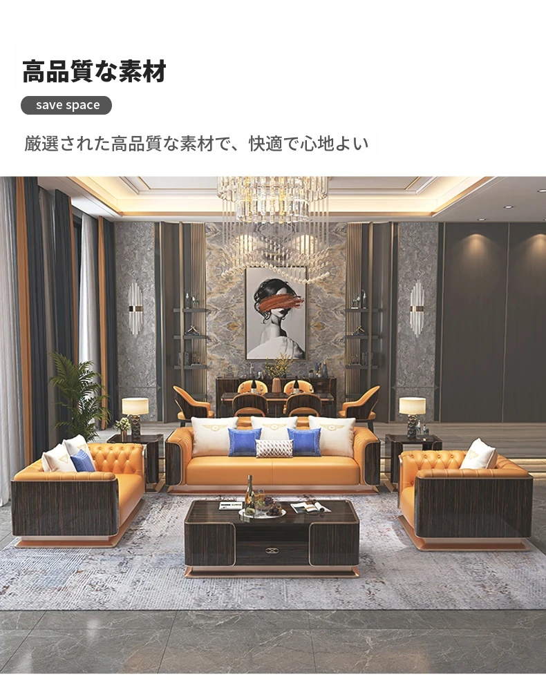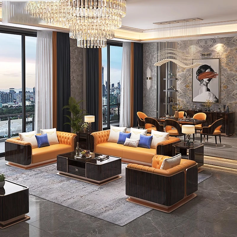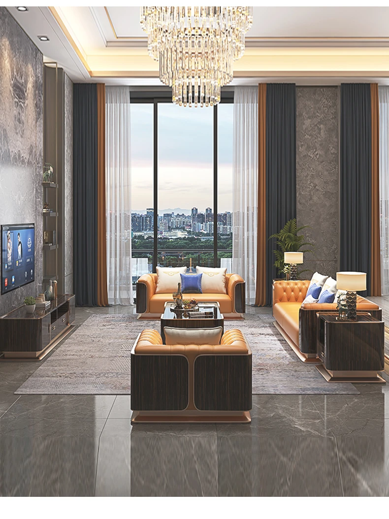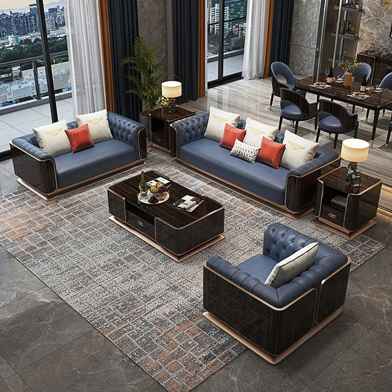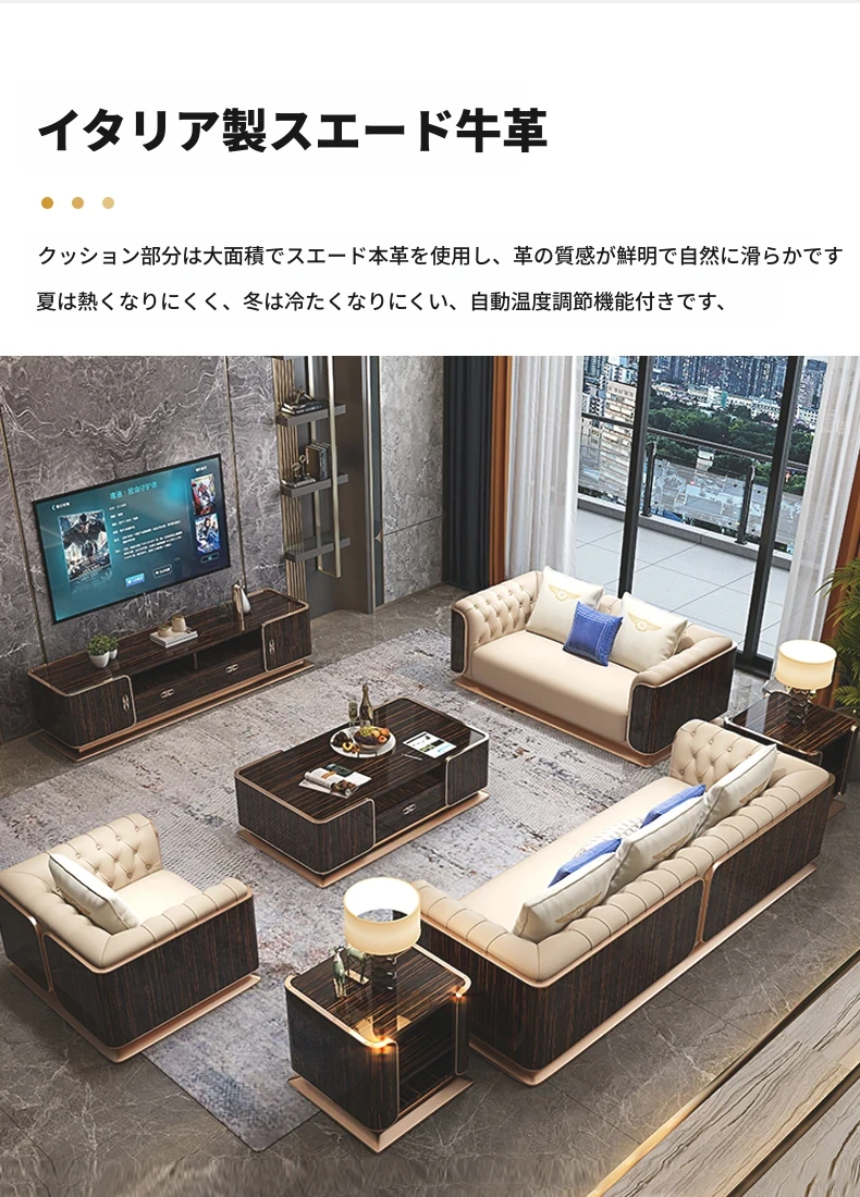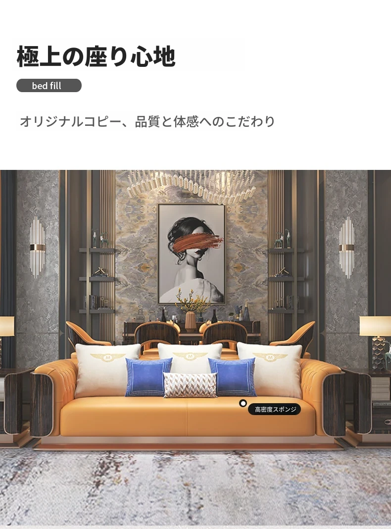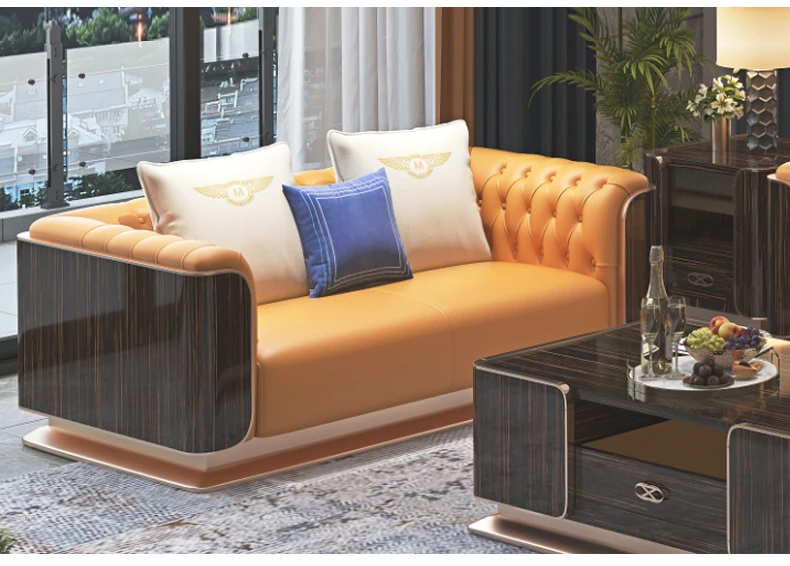 ラグジュアリーなベントレーソファ|イタリア製本革|アルマーニスタイルの現代的なヴィラリビングにぴったり!シンプルで洗練されたデザインのハイエンドソファ、家族団らんに最適なセミオーダーコンビネーション。