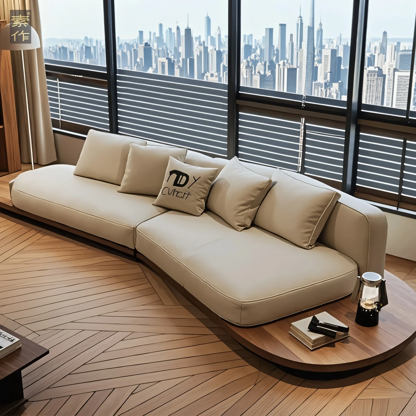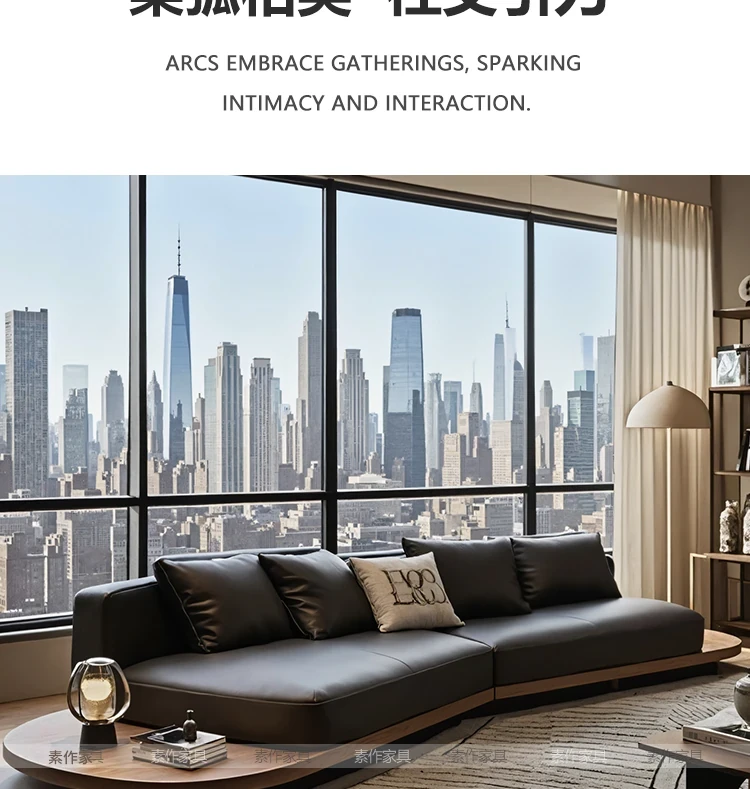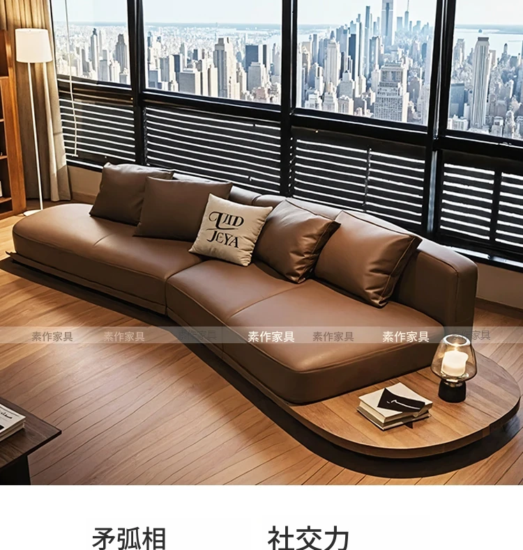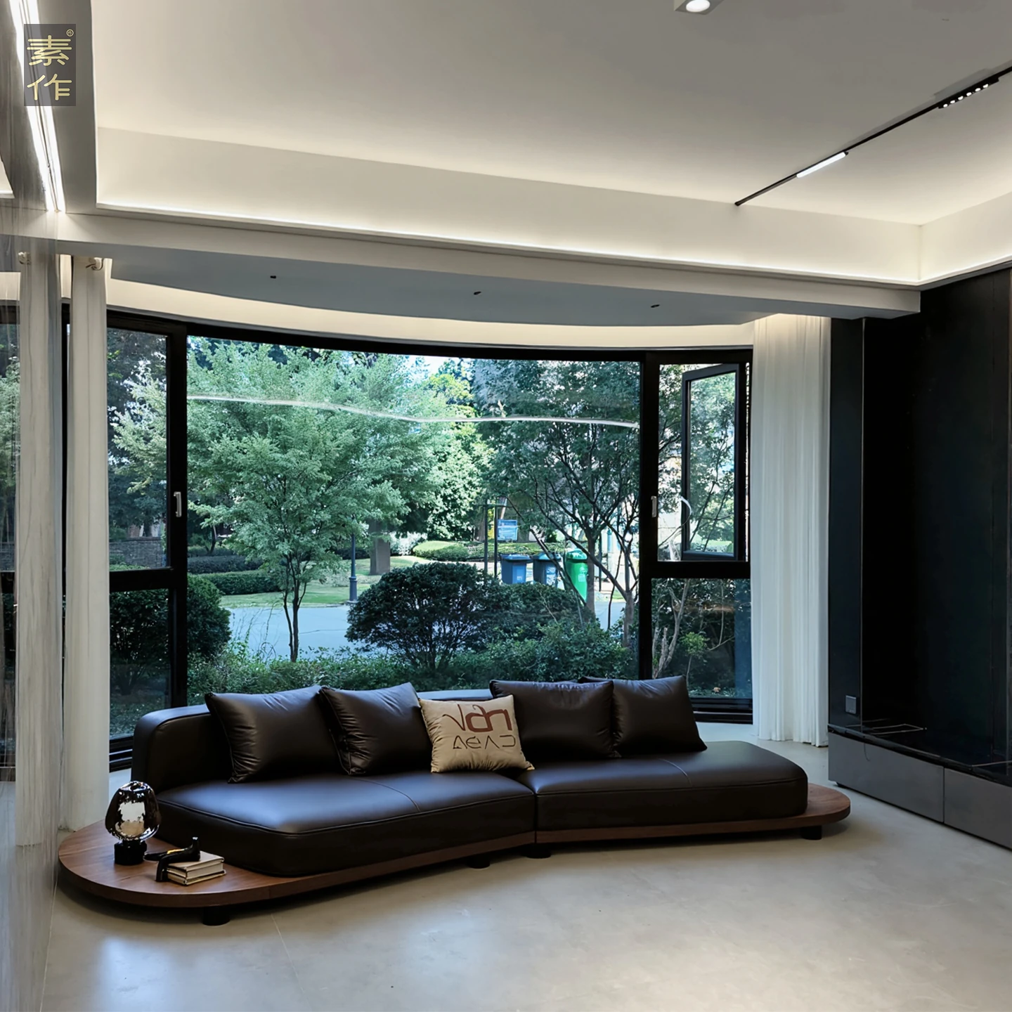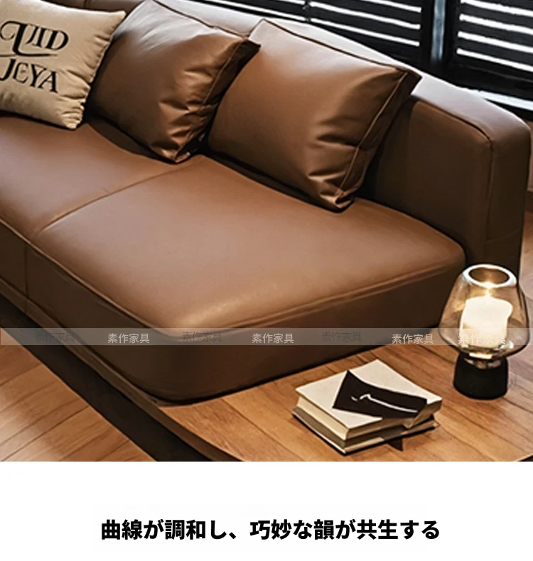 ブラックウォールナットのラグジュアリー別荘ホテルリビング用デザイン角ソファ|イタリアンミニマリズムの本革と無垢材使用|洗練されたスタイルで心地よい空間を演出します!