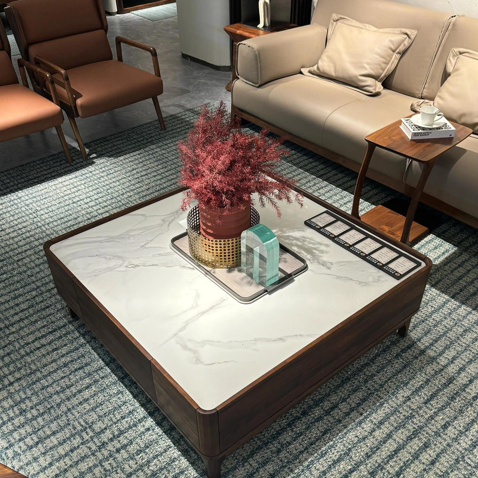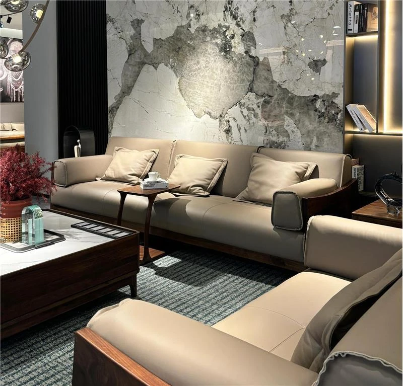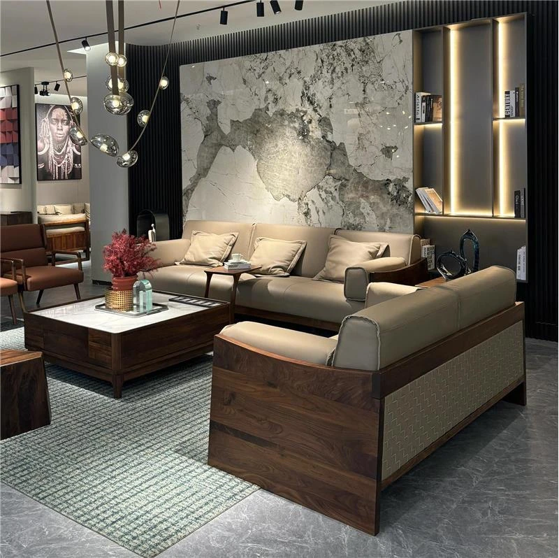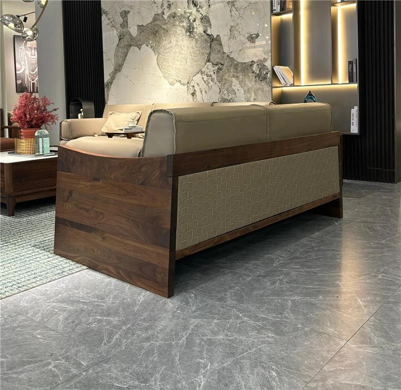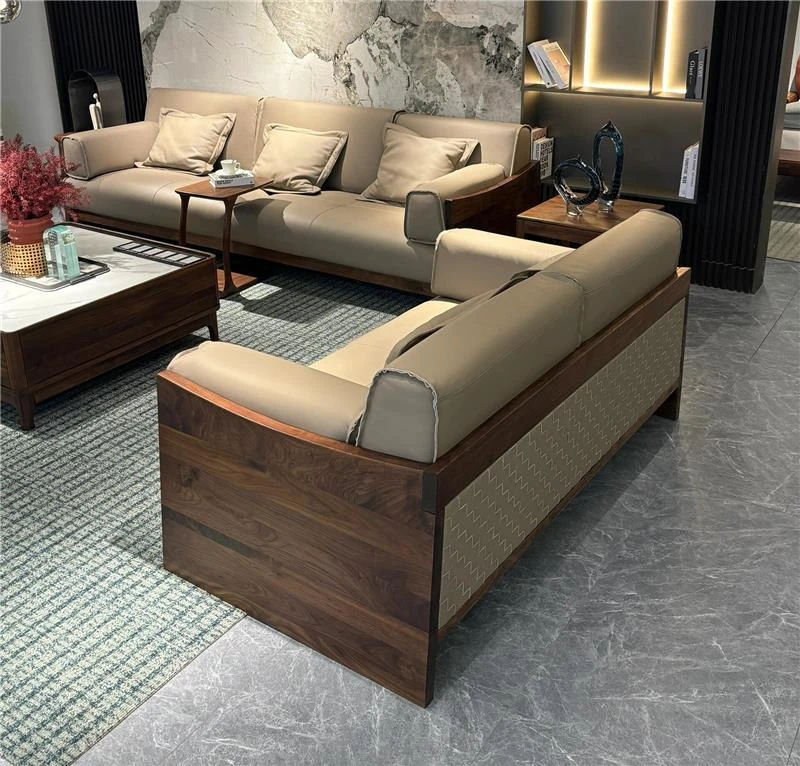 豪華なブラックウォールナット製ソファ - モダンでシンプルなデザイン、リビングや主寝室に最適!広々とした空間にもぴったりな高級感あふれる実木製、別荘やクラブハウスにもおすすめです。