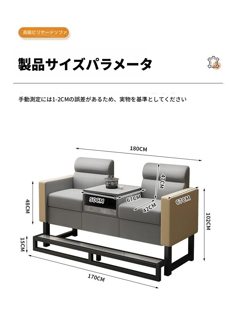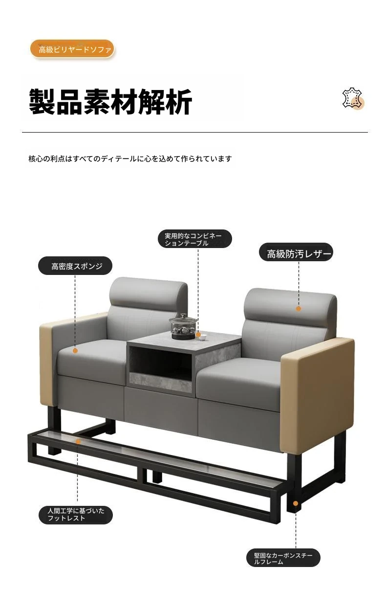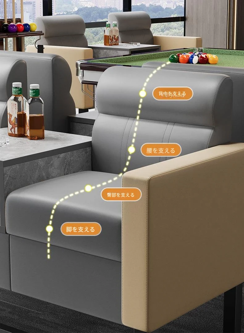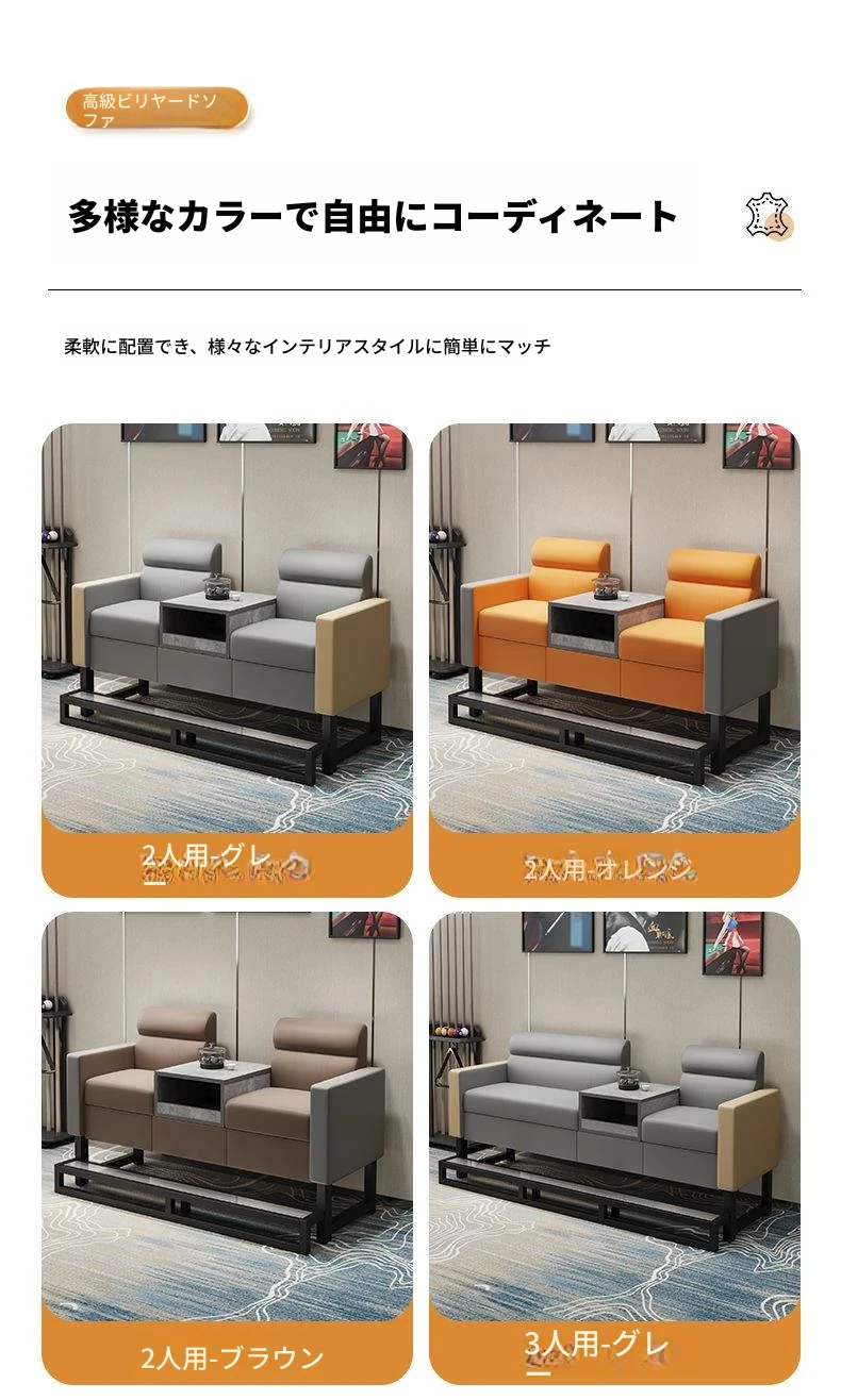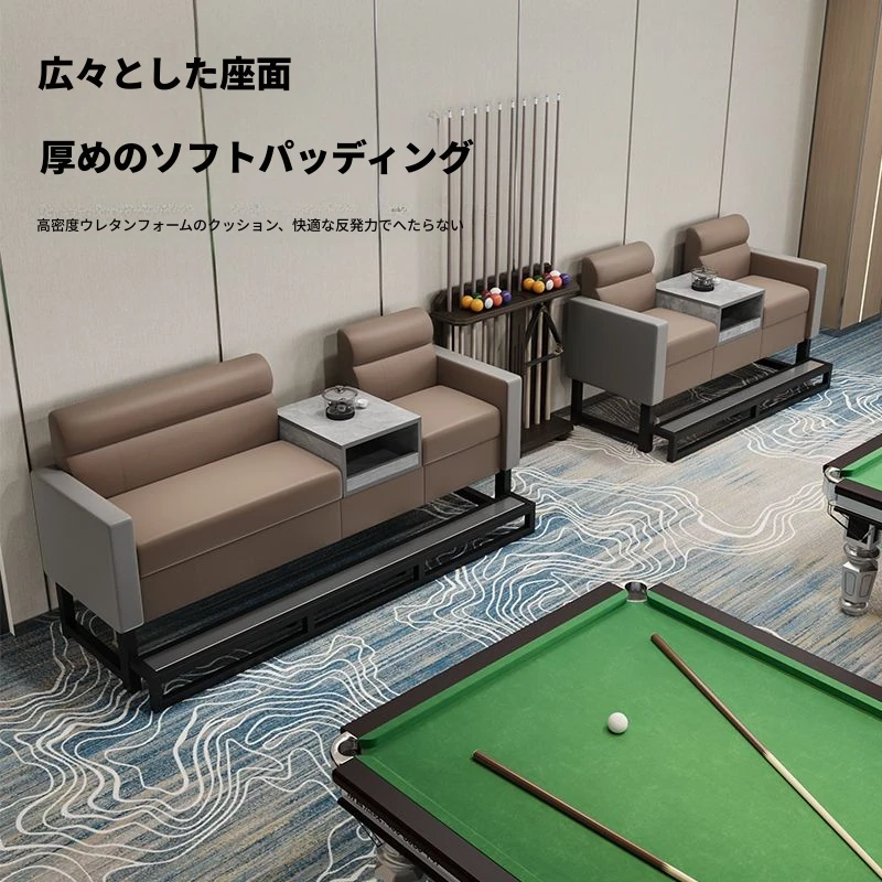 新作!高級ビリヤードソファ&観戦チェアの2人用セット - スタイリッシュなデザインで、3人までのビリヤードホールの休憩に最適!快適な座り心地で、試合を楽しむための最高の選択です。