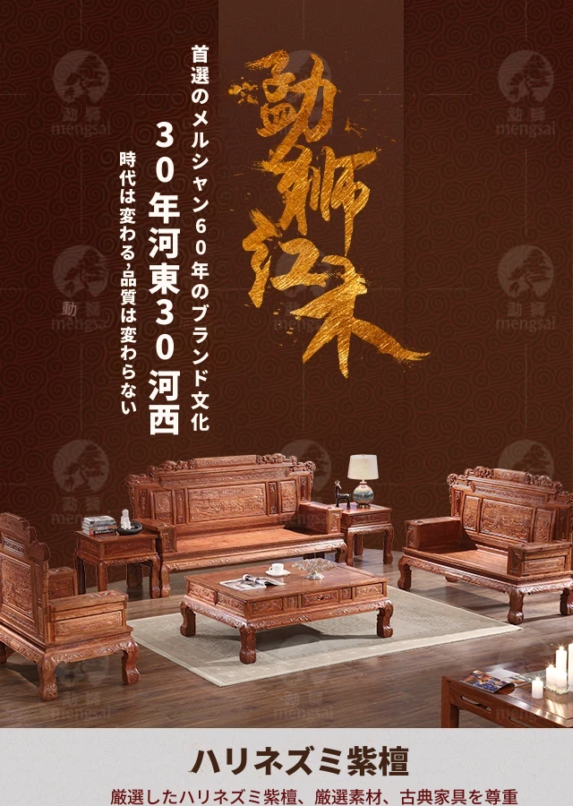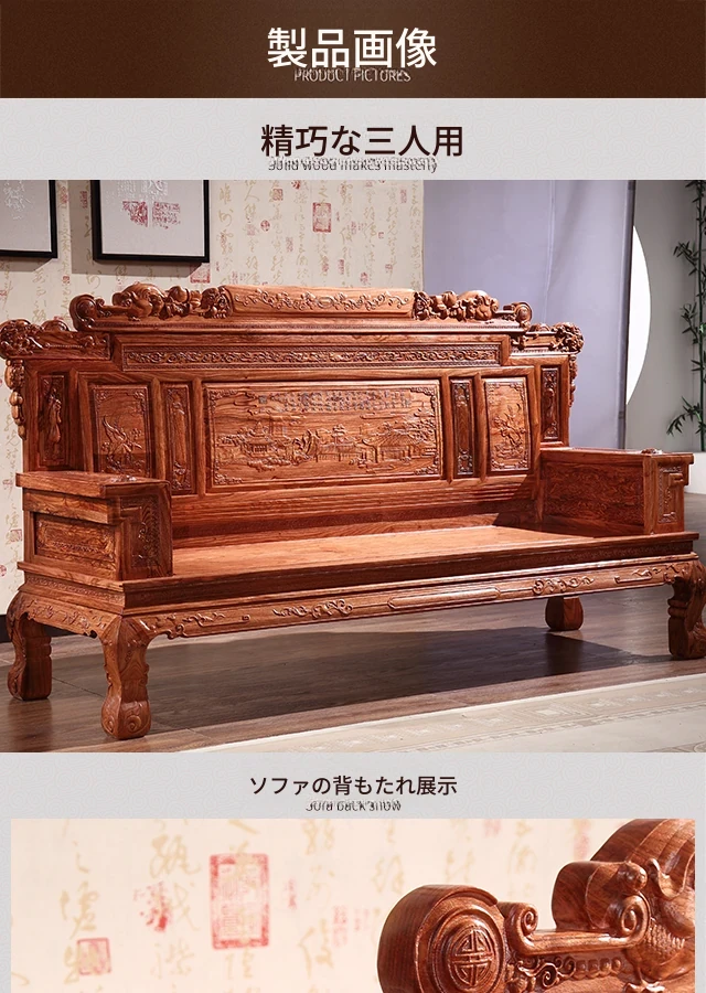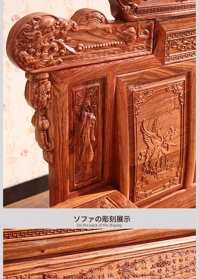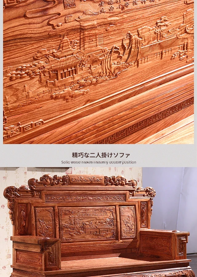 勐狮の刺猬紫檀家具 - 花梨木のランティン序山水デザイン!全実木製の中華古典スタイル、優雅な曲脚ソファで贅沢なリビング空間を演出します。あなたの家に伝統と美を!