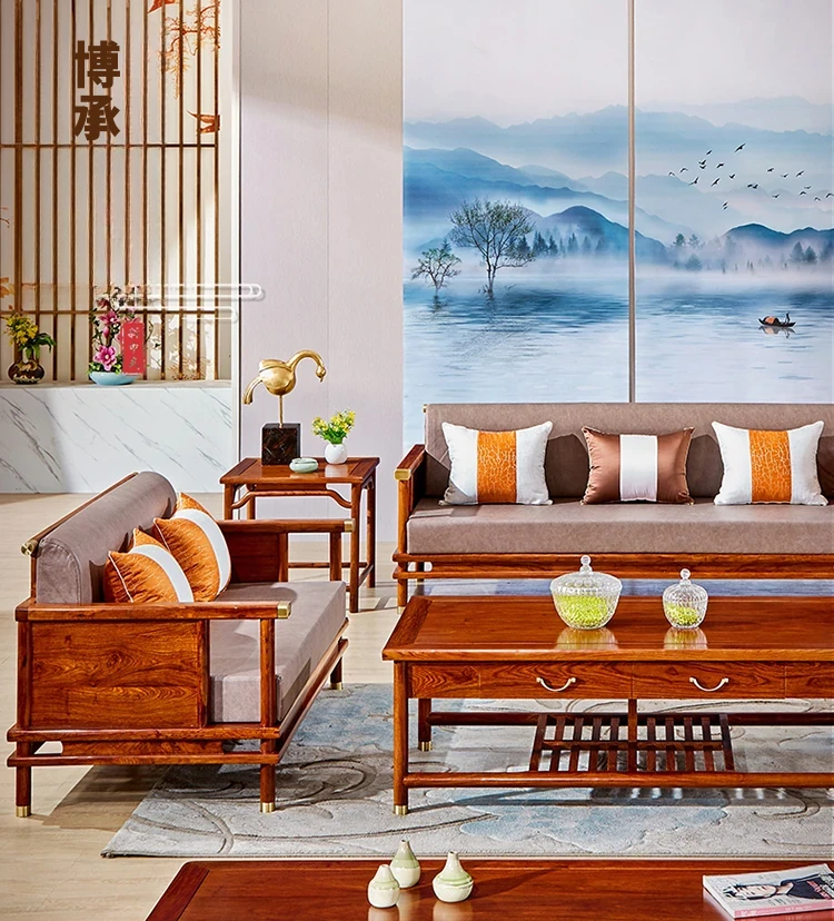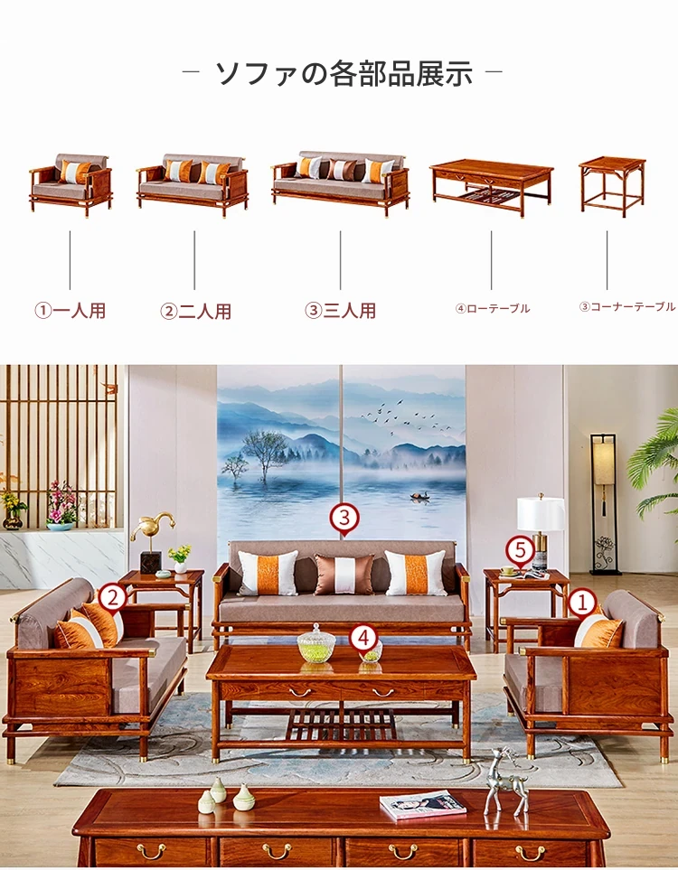 メンシー紅木家具 ヒメセイヨウザクラ材のソファ 中華スタイルの全実木製ソファ 冬夏両用の柔らかいソファで、快適な座り心地を提供します。上質な素材で作られ、贅沢なひと時をお楽しみください。